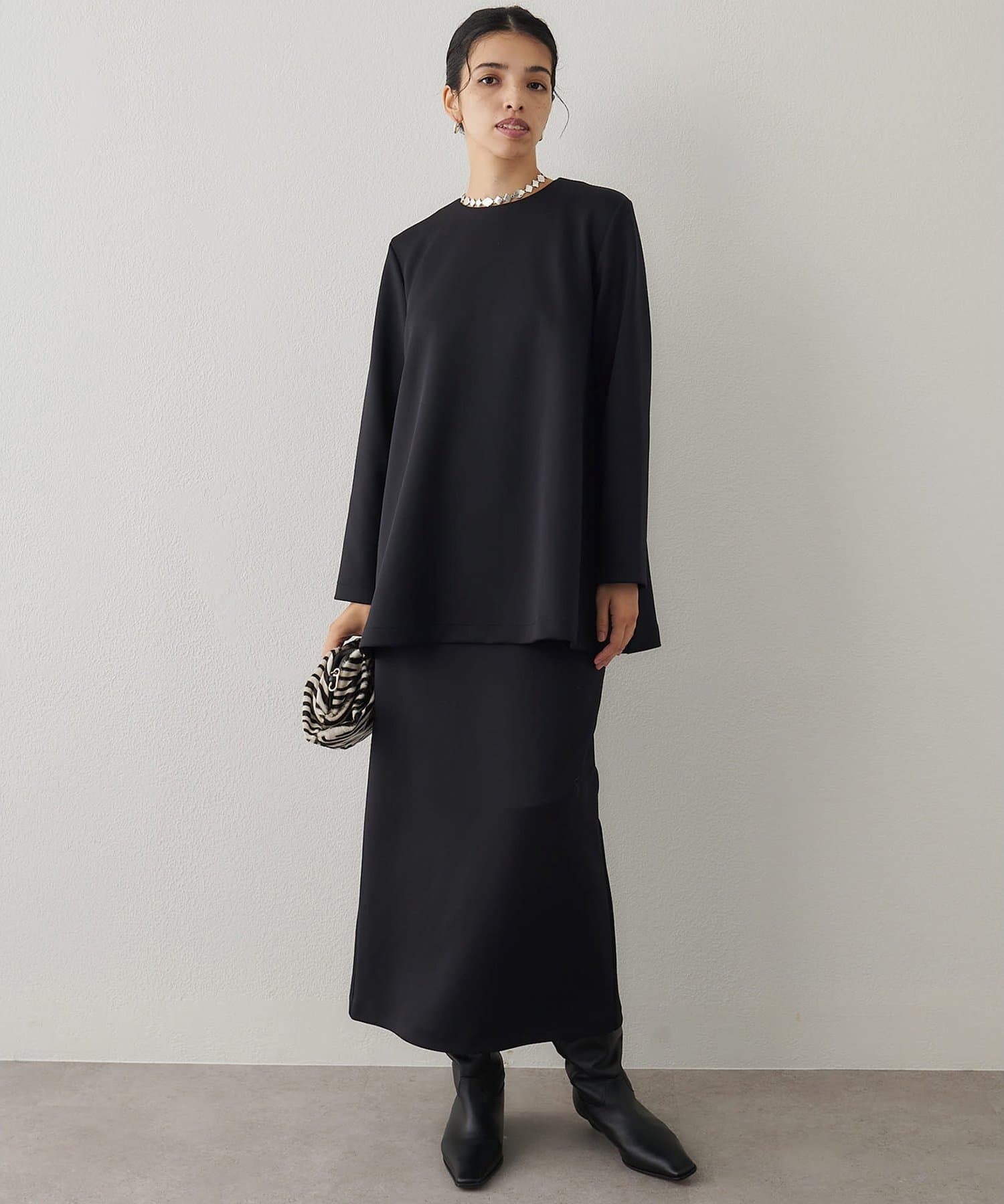 ■シルエットにもこだわり、裾に向かうフレアデザインと長めの着丈で体型カバーにも◎。