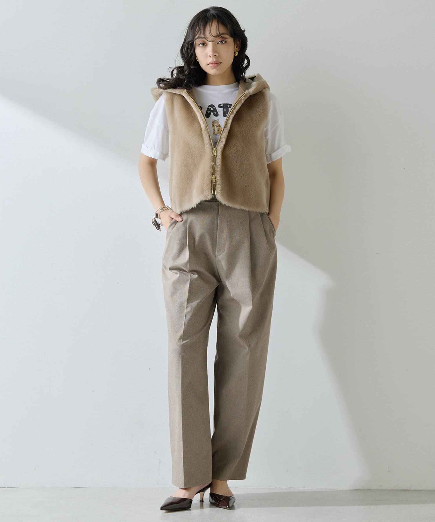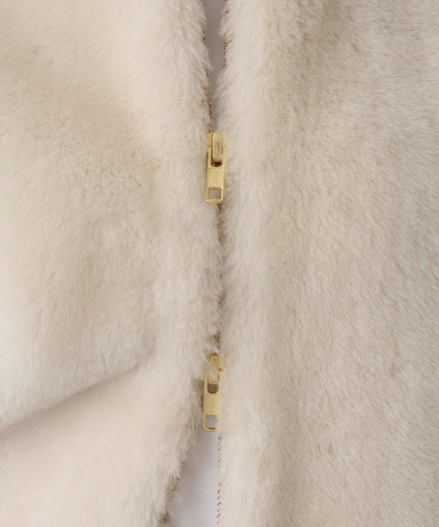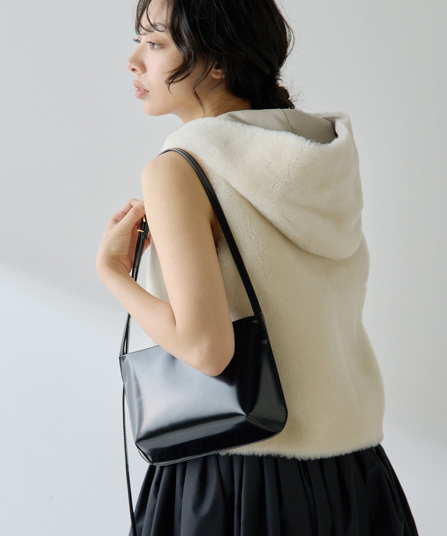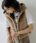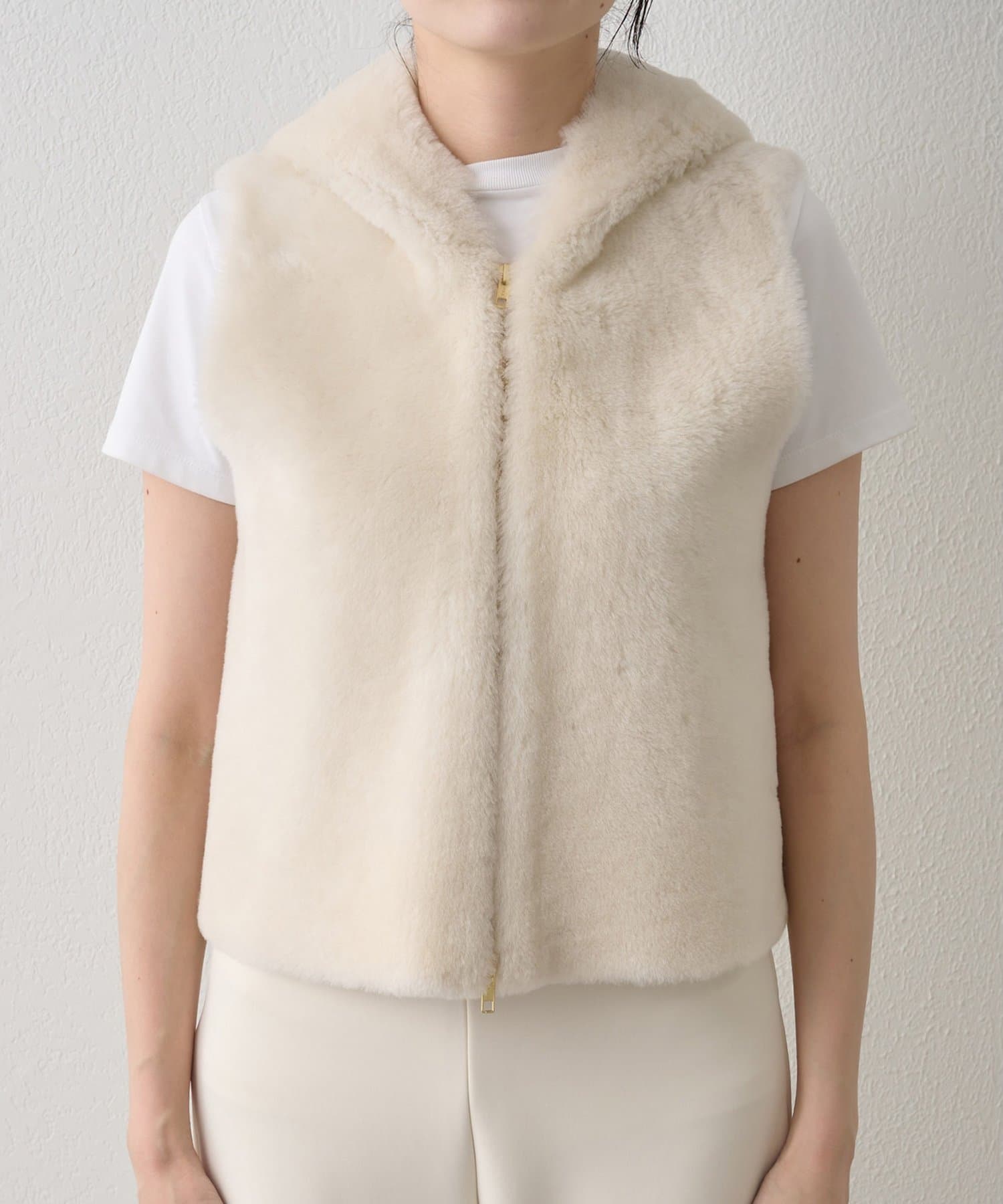 ■ハイクオリティな素材感を活かしたフード付きのムートンベスト。