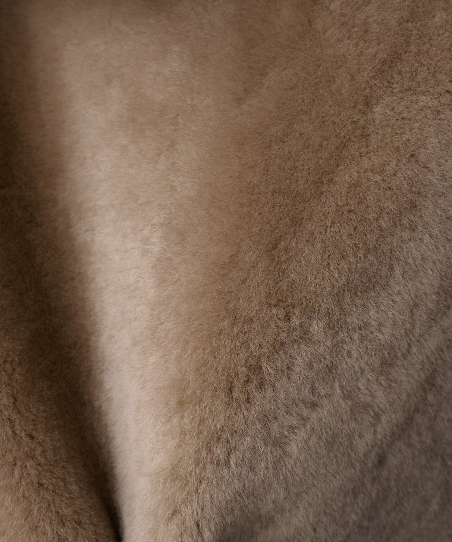 ■上質なメリノウール原皮の中でも、特に密度が高く、保温性・光沢・柔らかさに優れた一着。