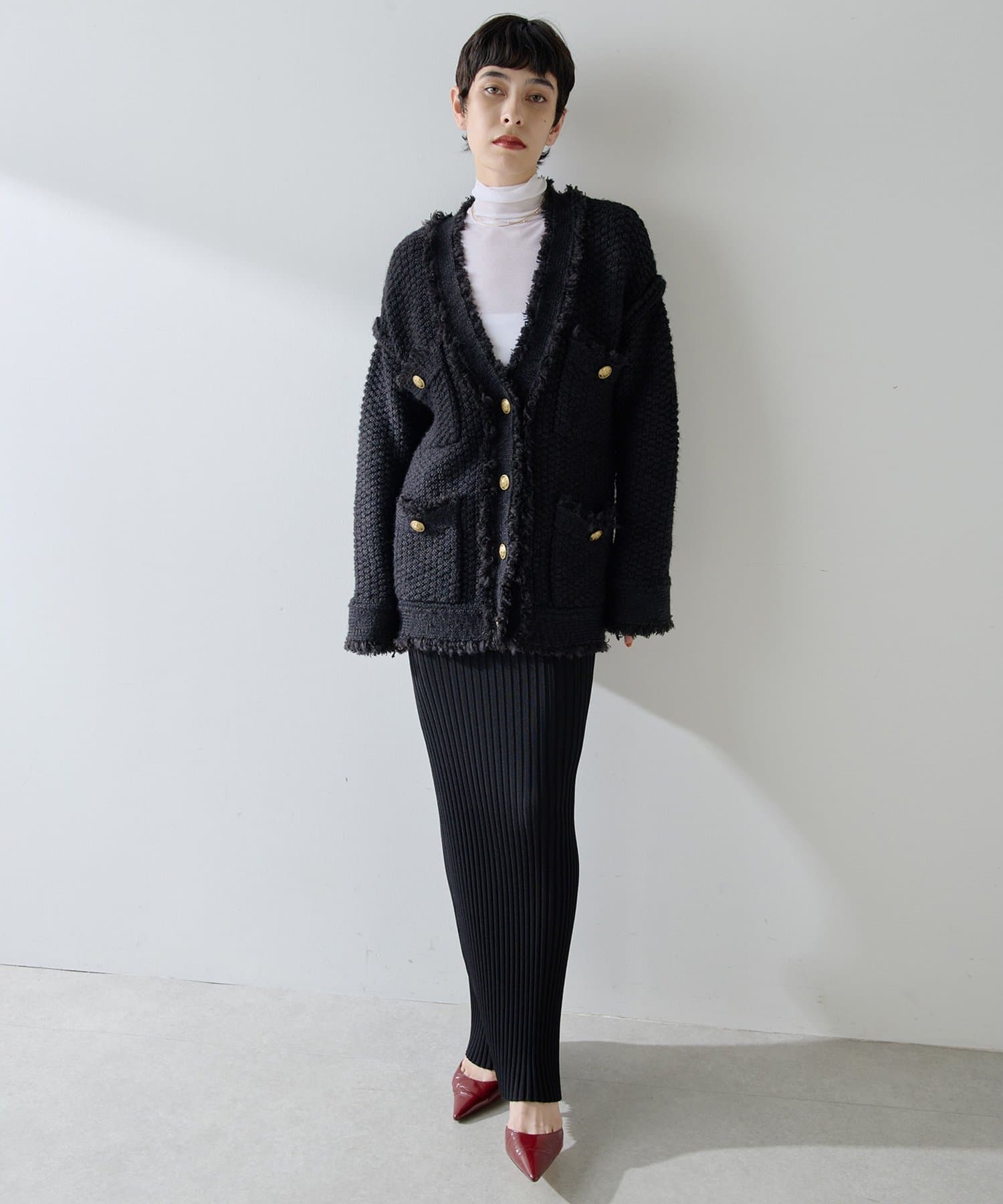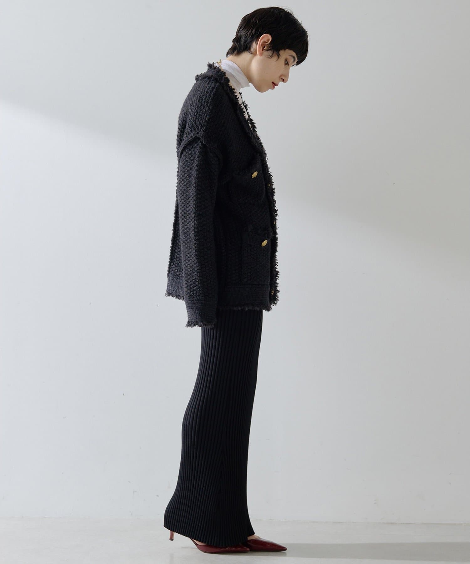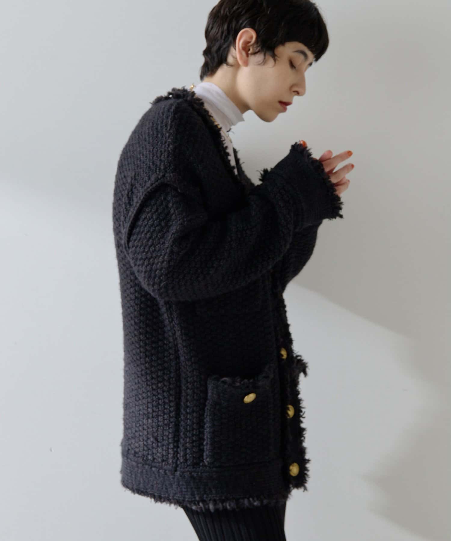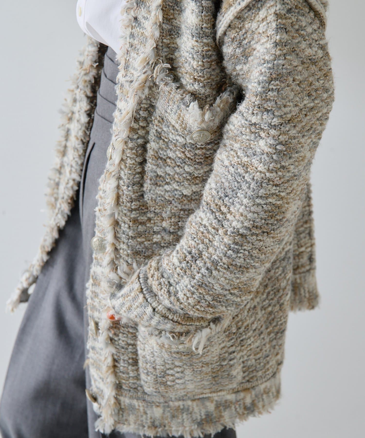 ツイードの気品とニットの優しさを兼ね備えたニットジャケット