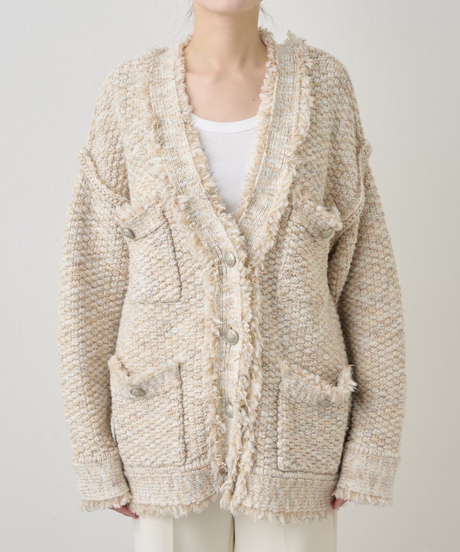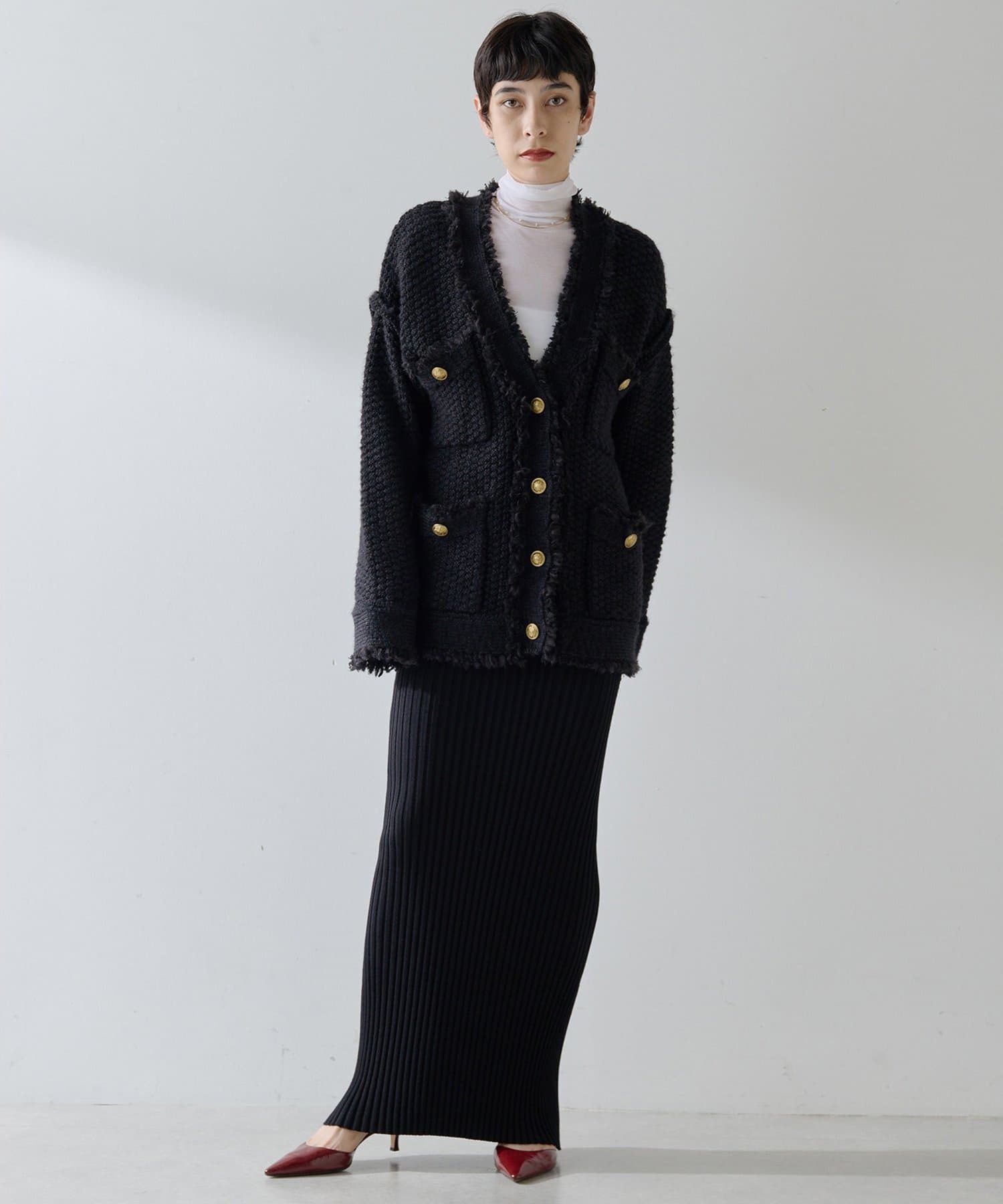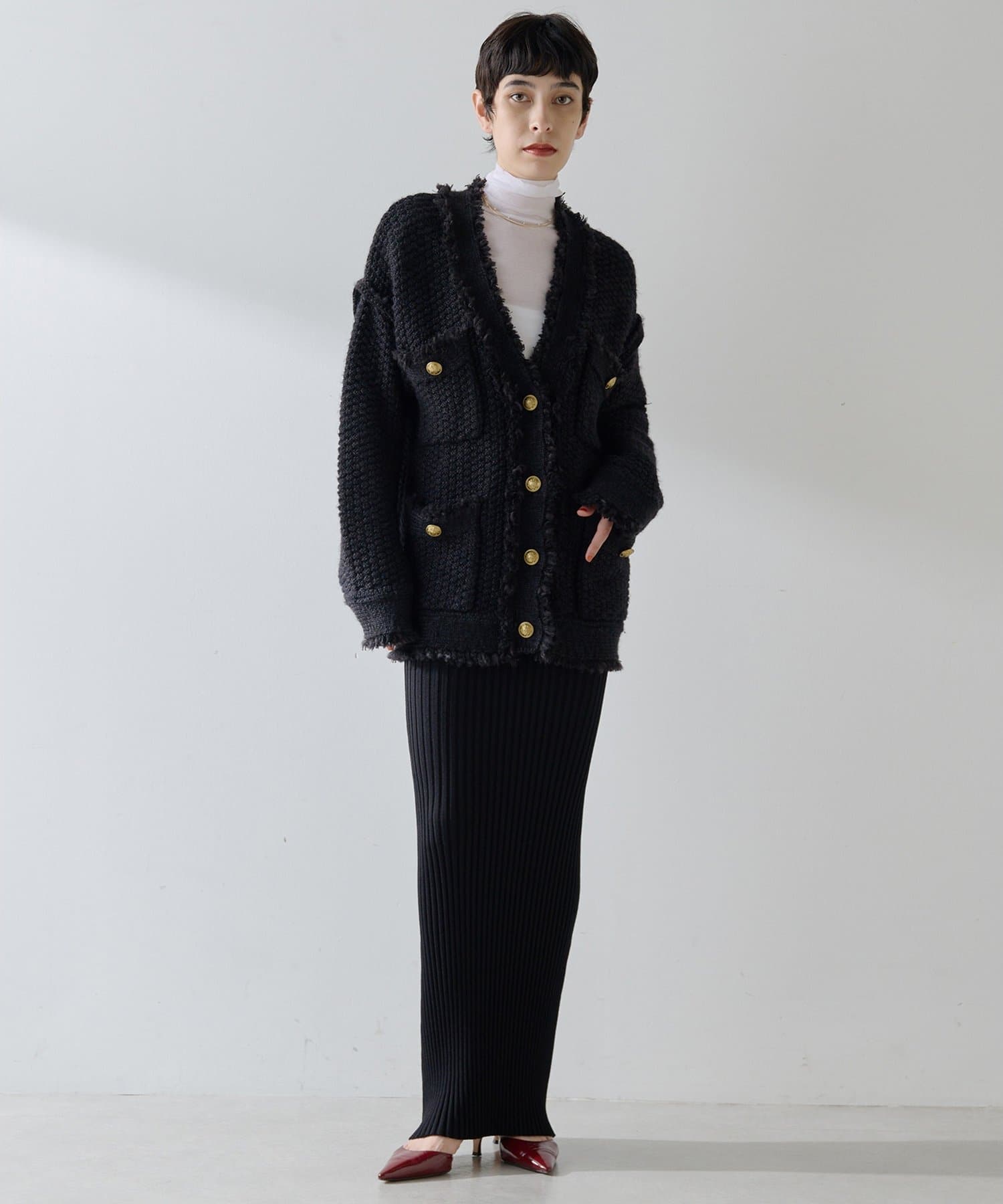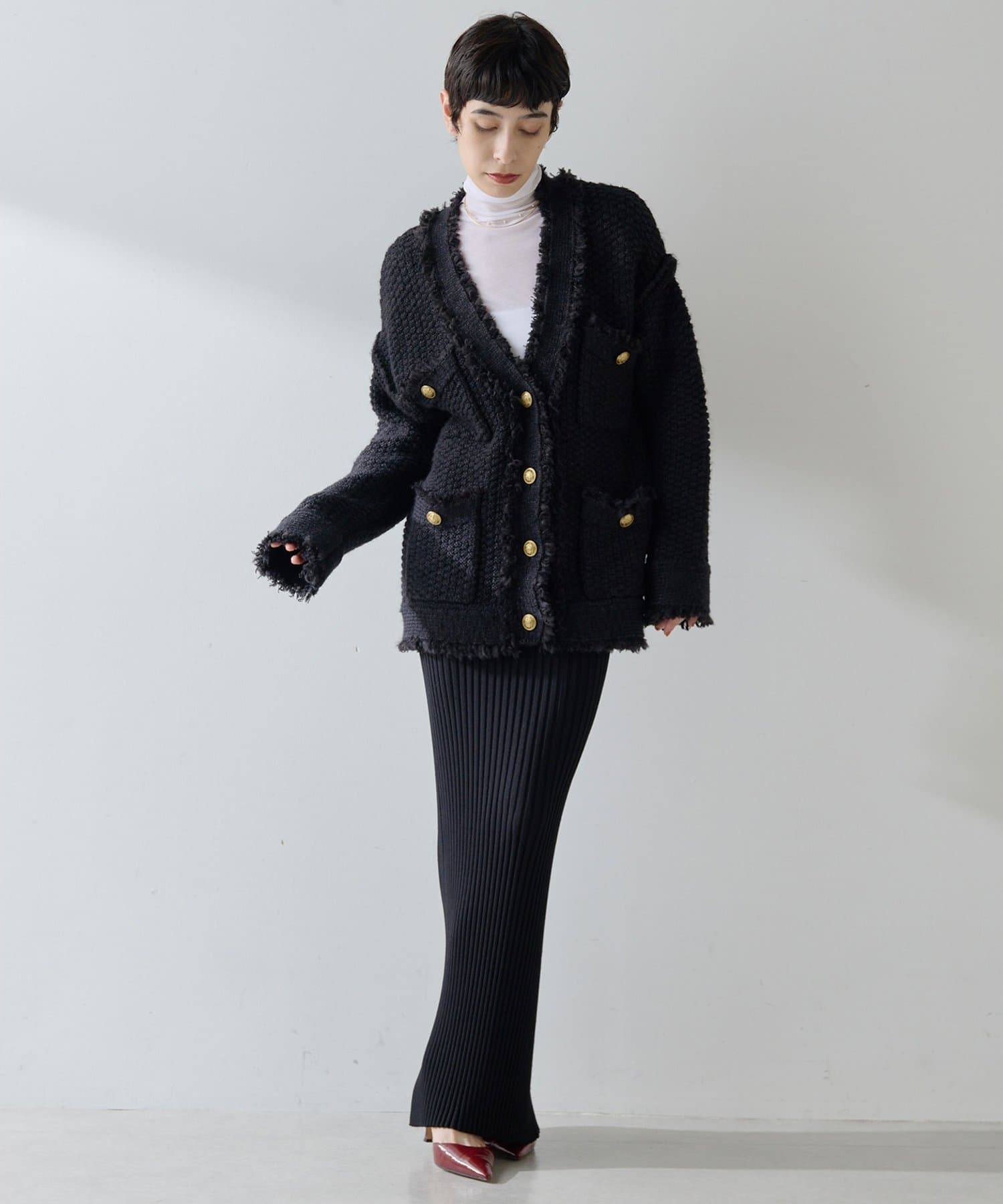 ツイードの気品とニットの優しさを兼ね備えたニットジャケット