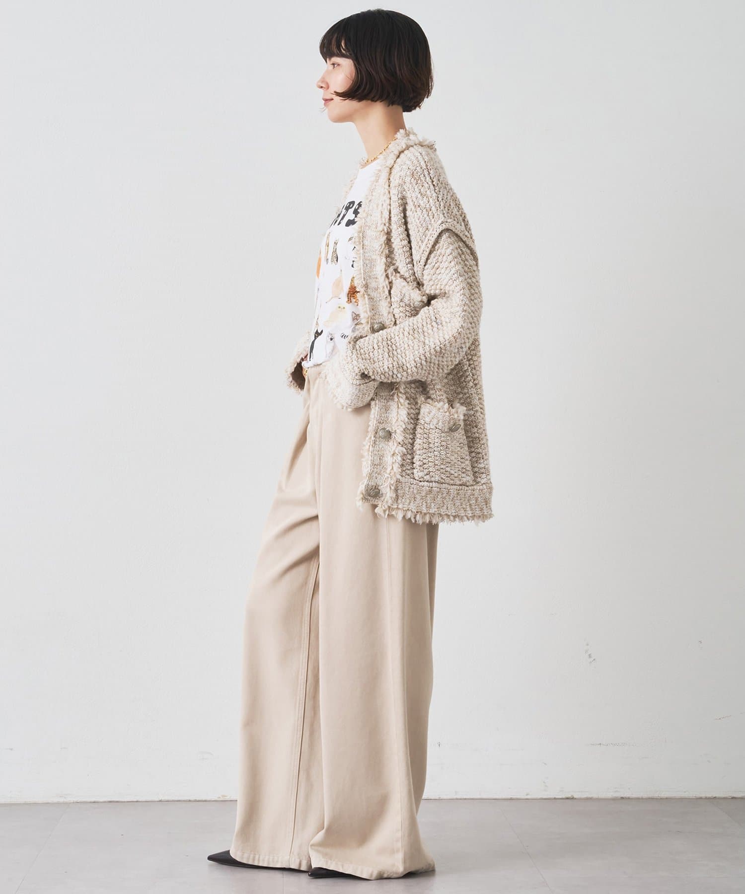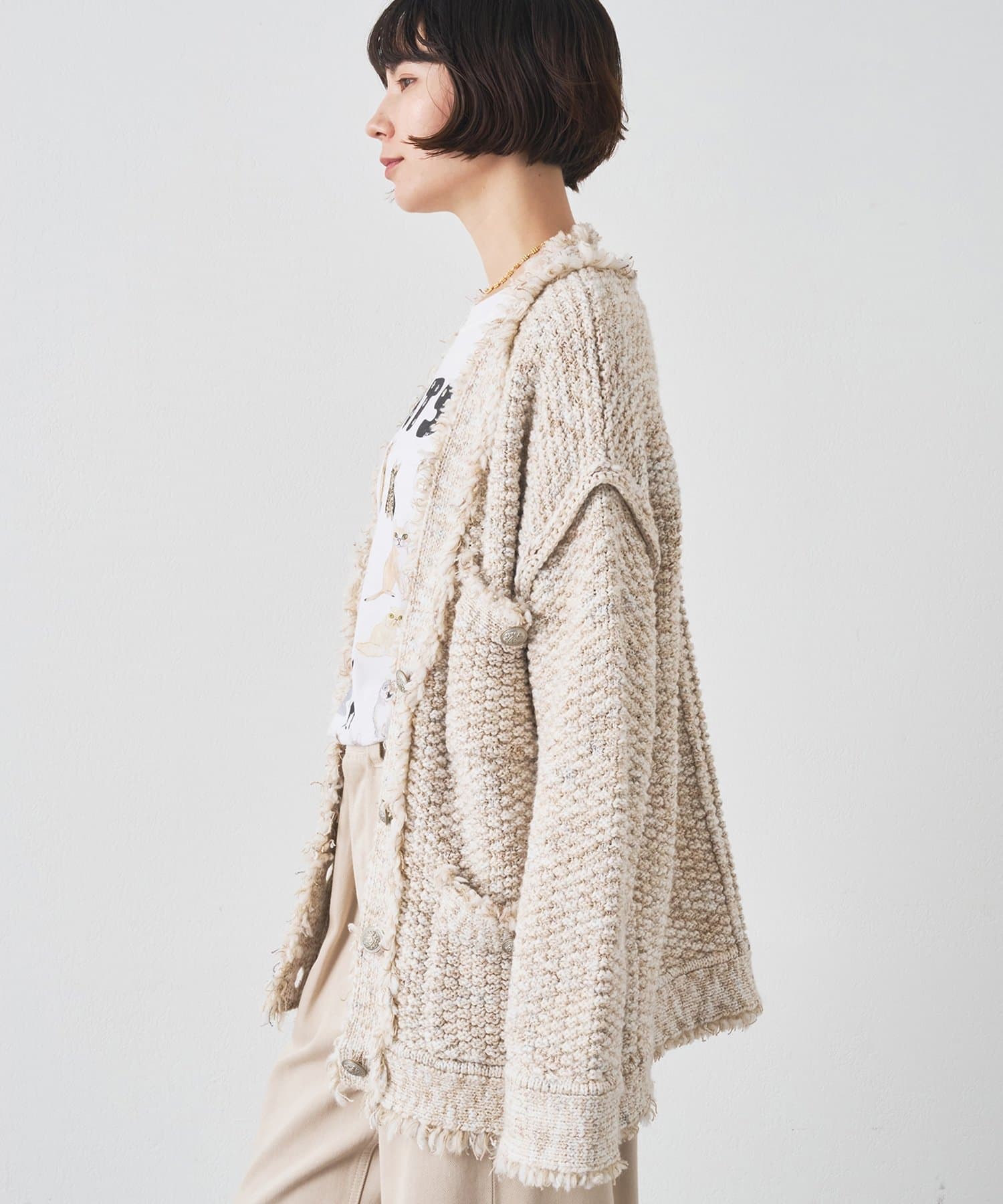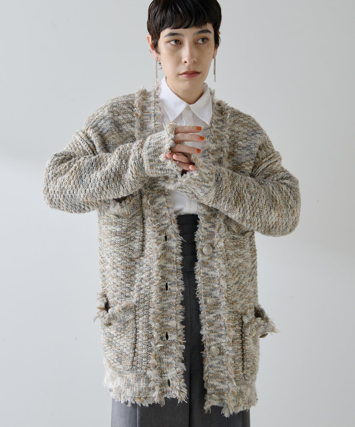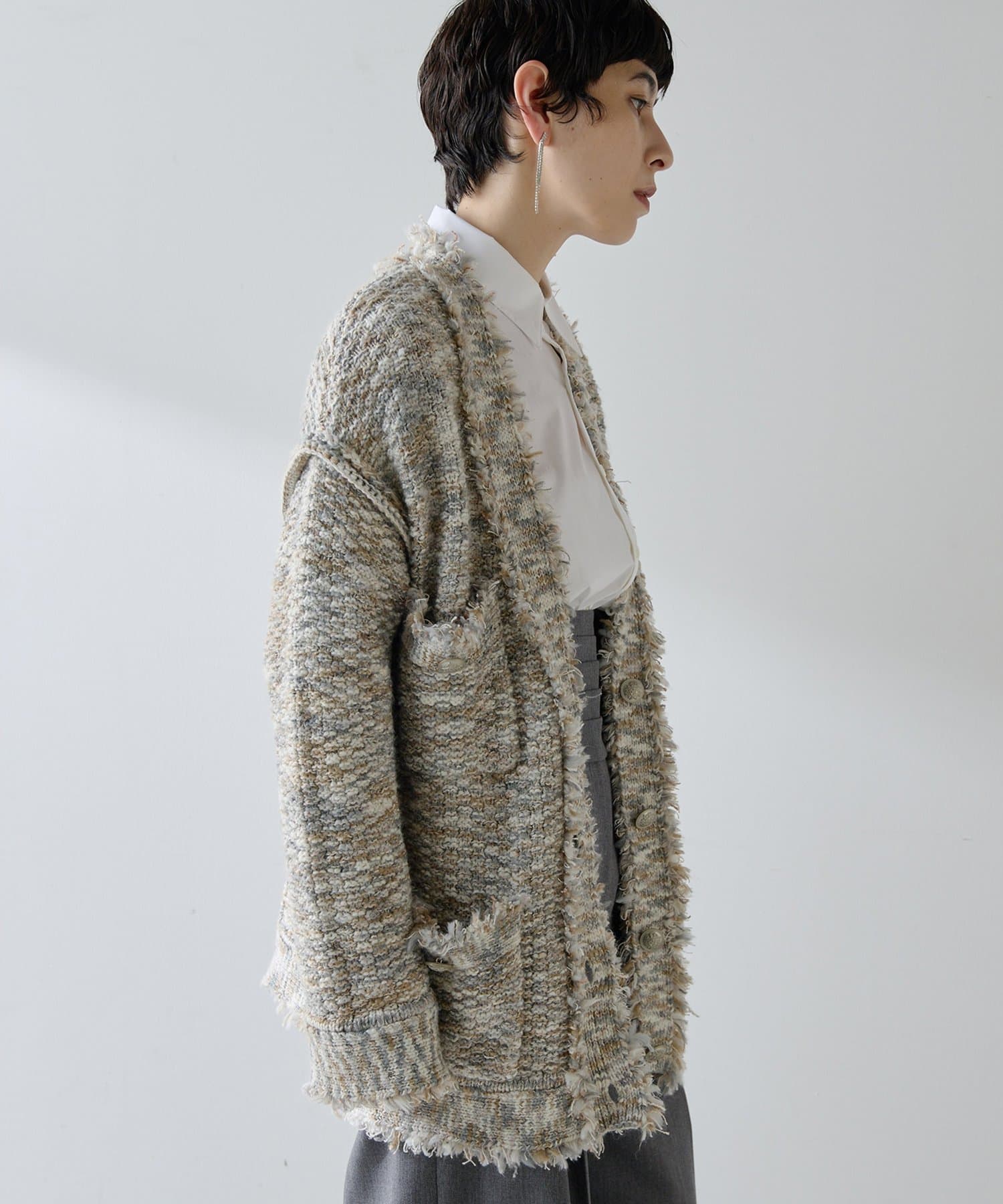 ツイードの気品とニットの優しさを兼ね備えたニットジャケット
