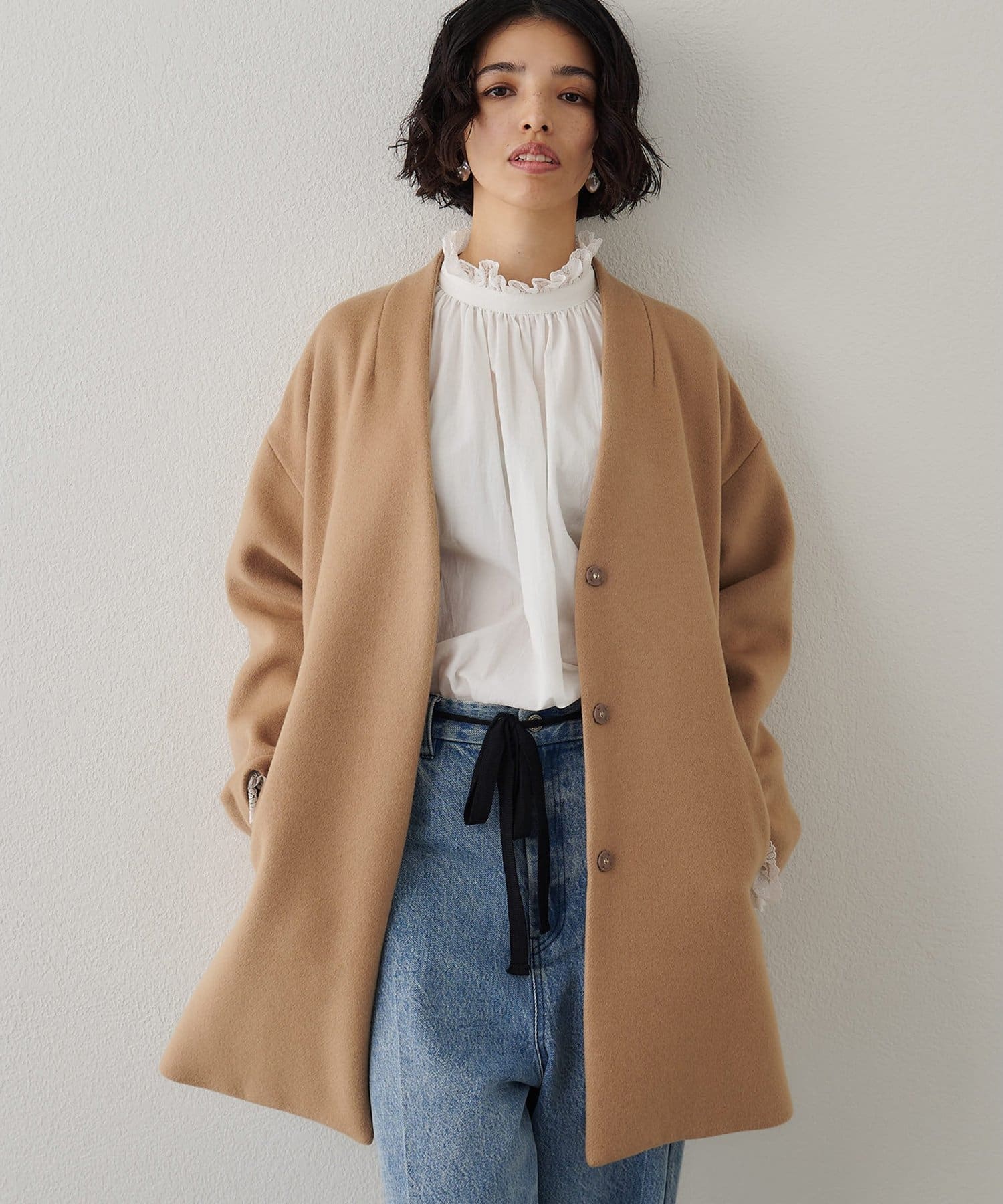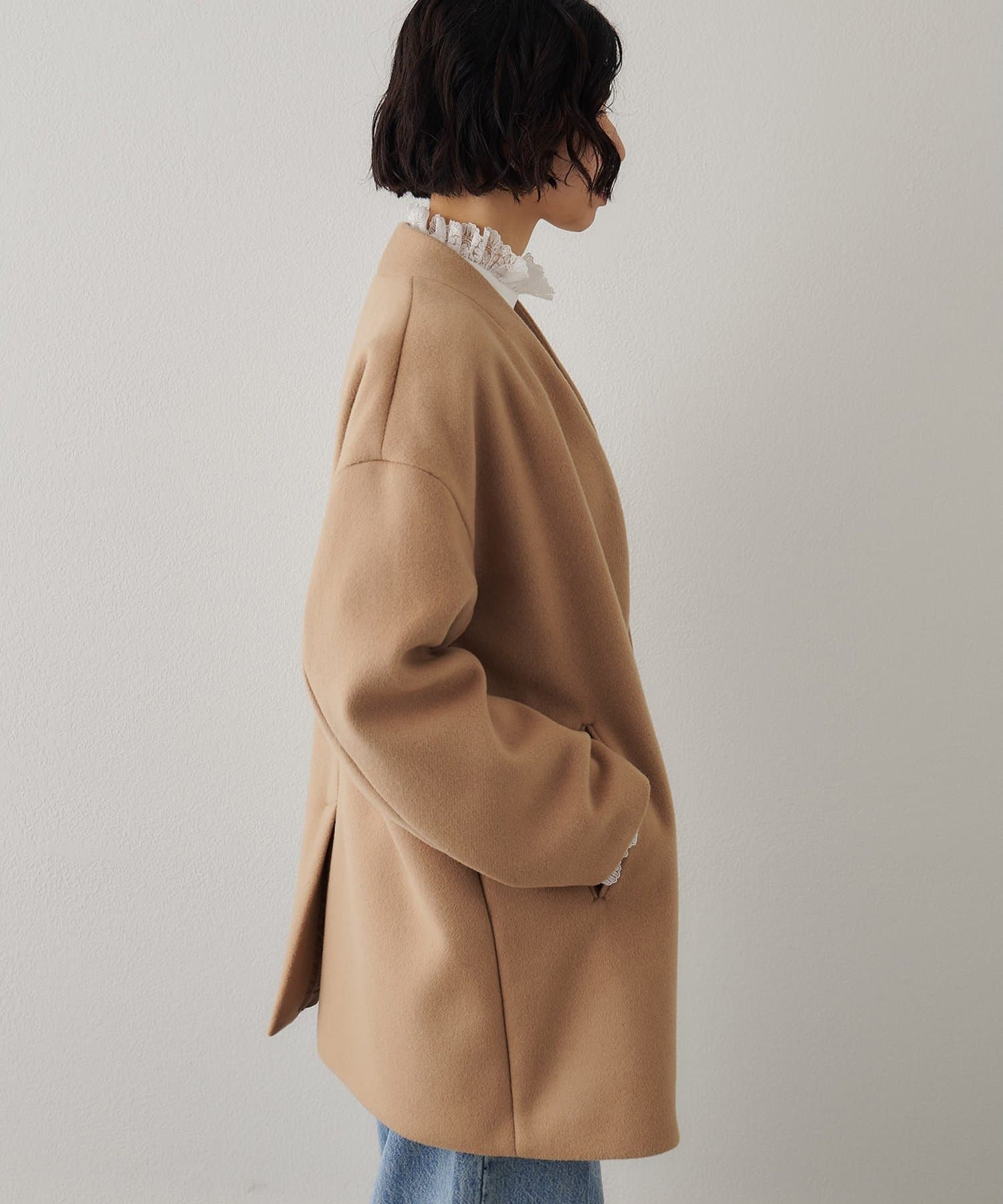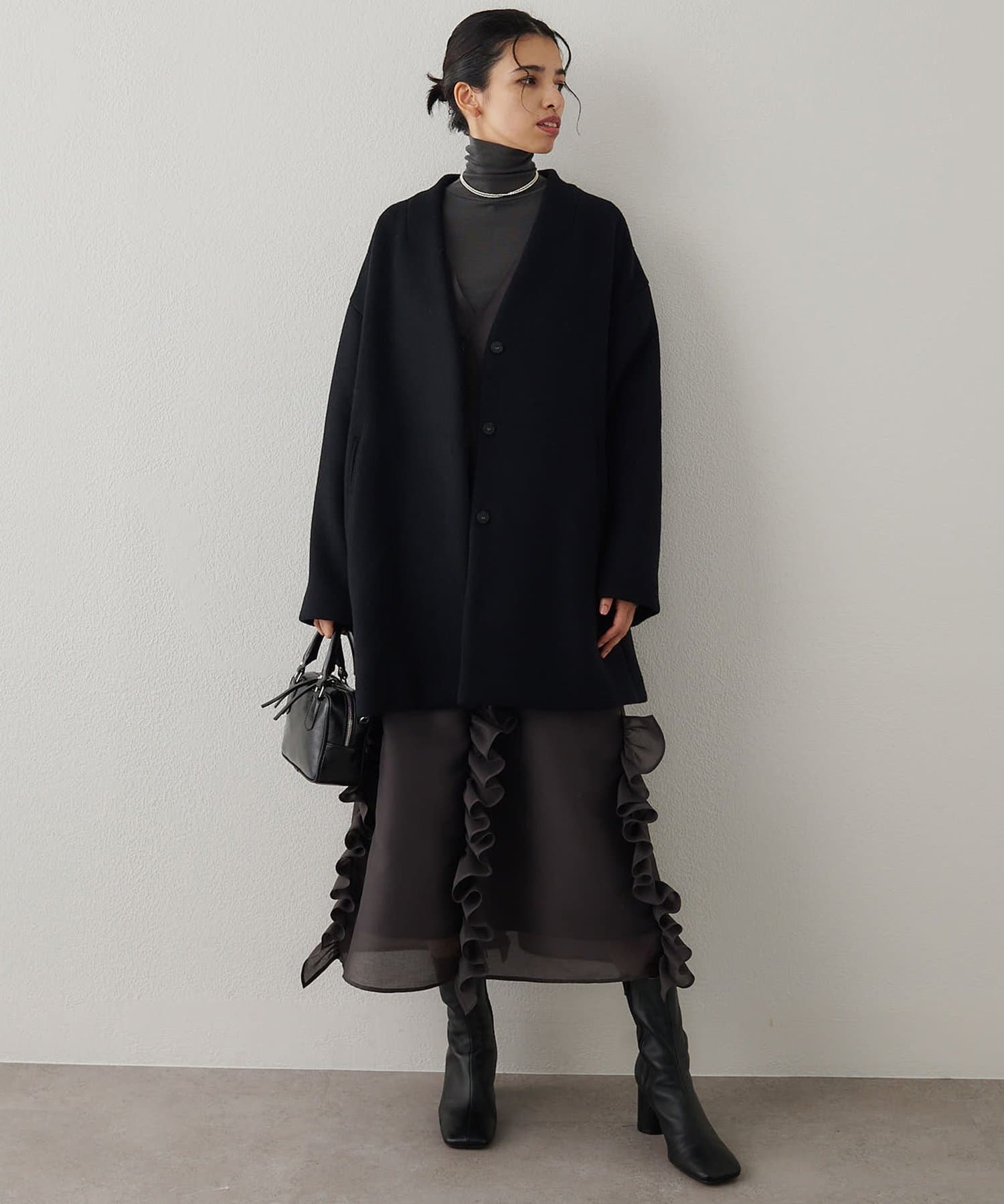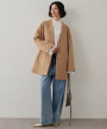 ■ノーカラージャケットのようなすっきりとしたデザインで、カーディガン感覚で気軽に羽織れる一着。