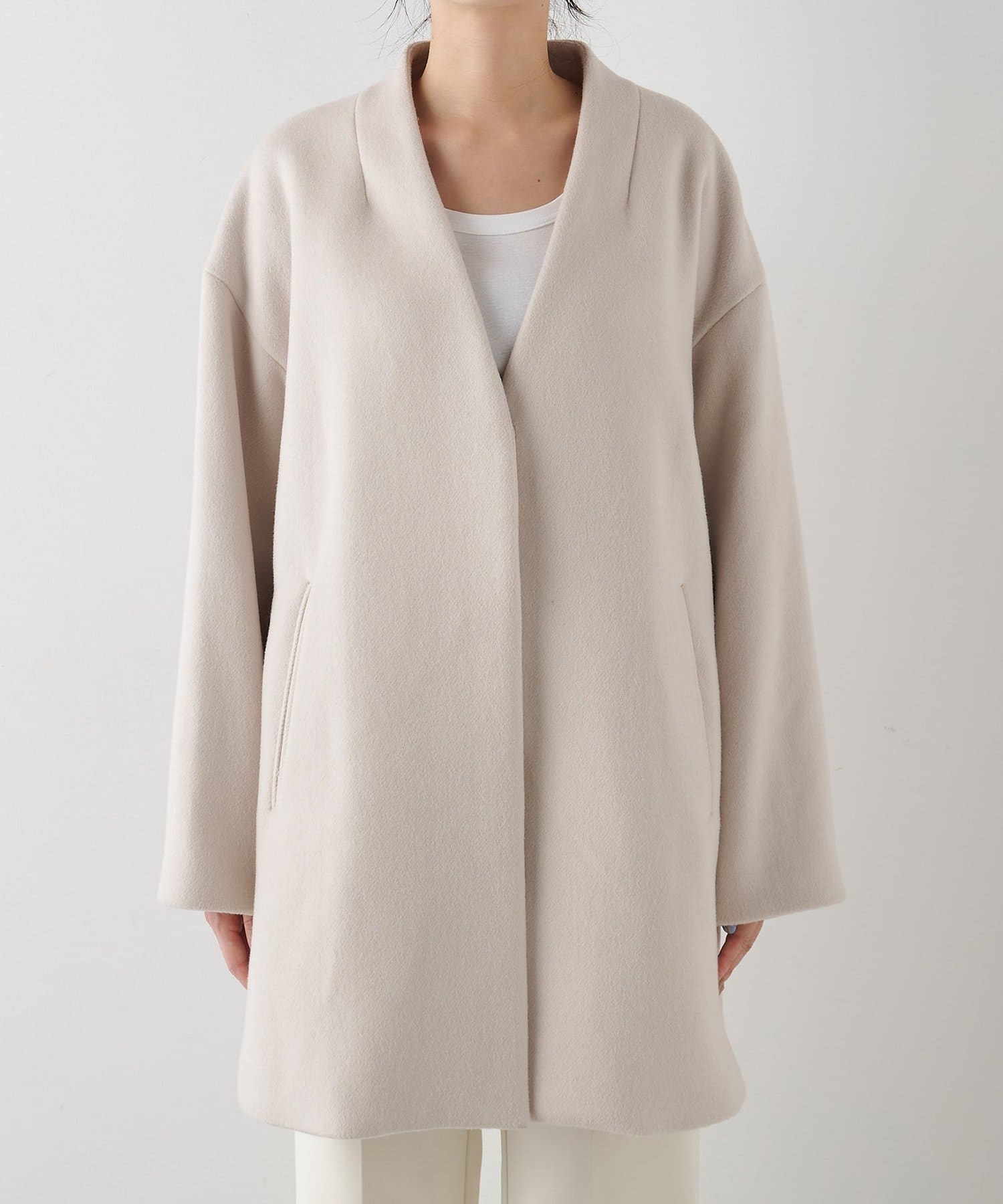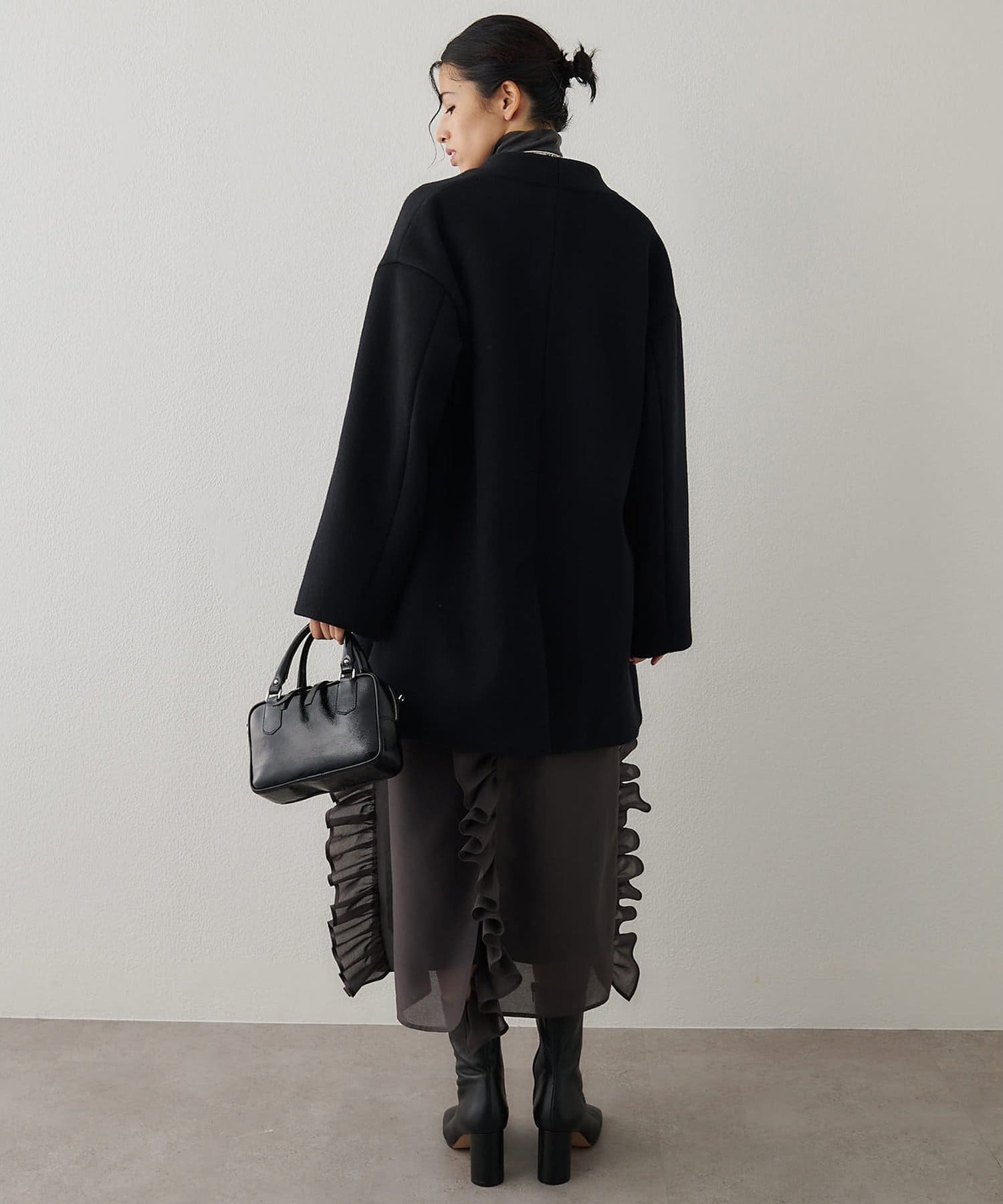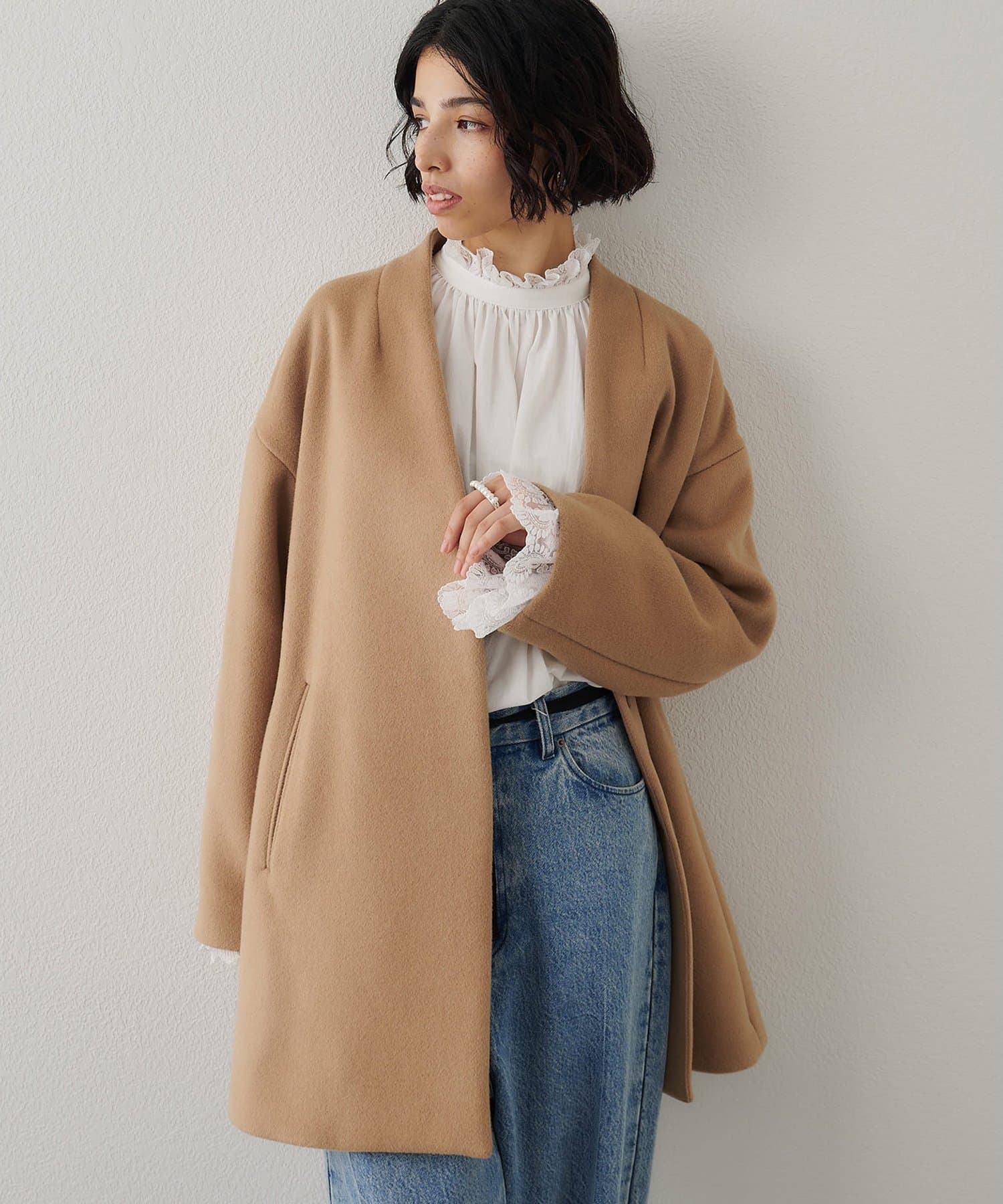 ■ノーカラージャケットのようなすっきりとしたデザインで、カーディガン感覚で気軽に羽織れる一着。