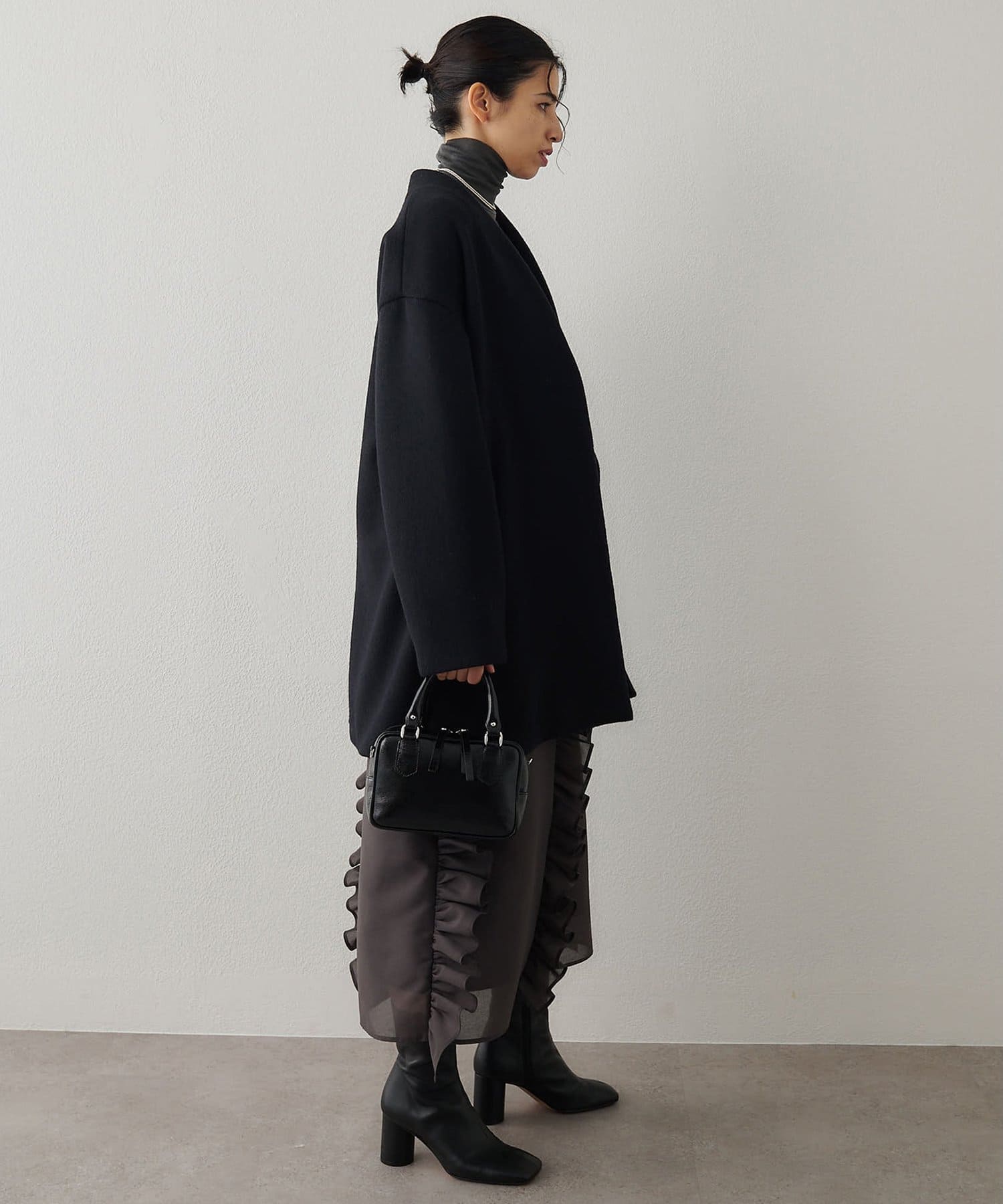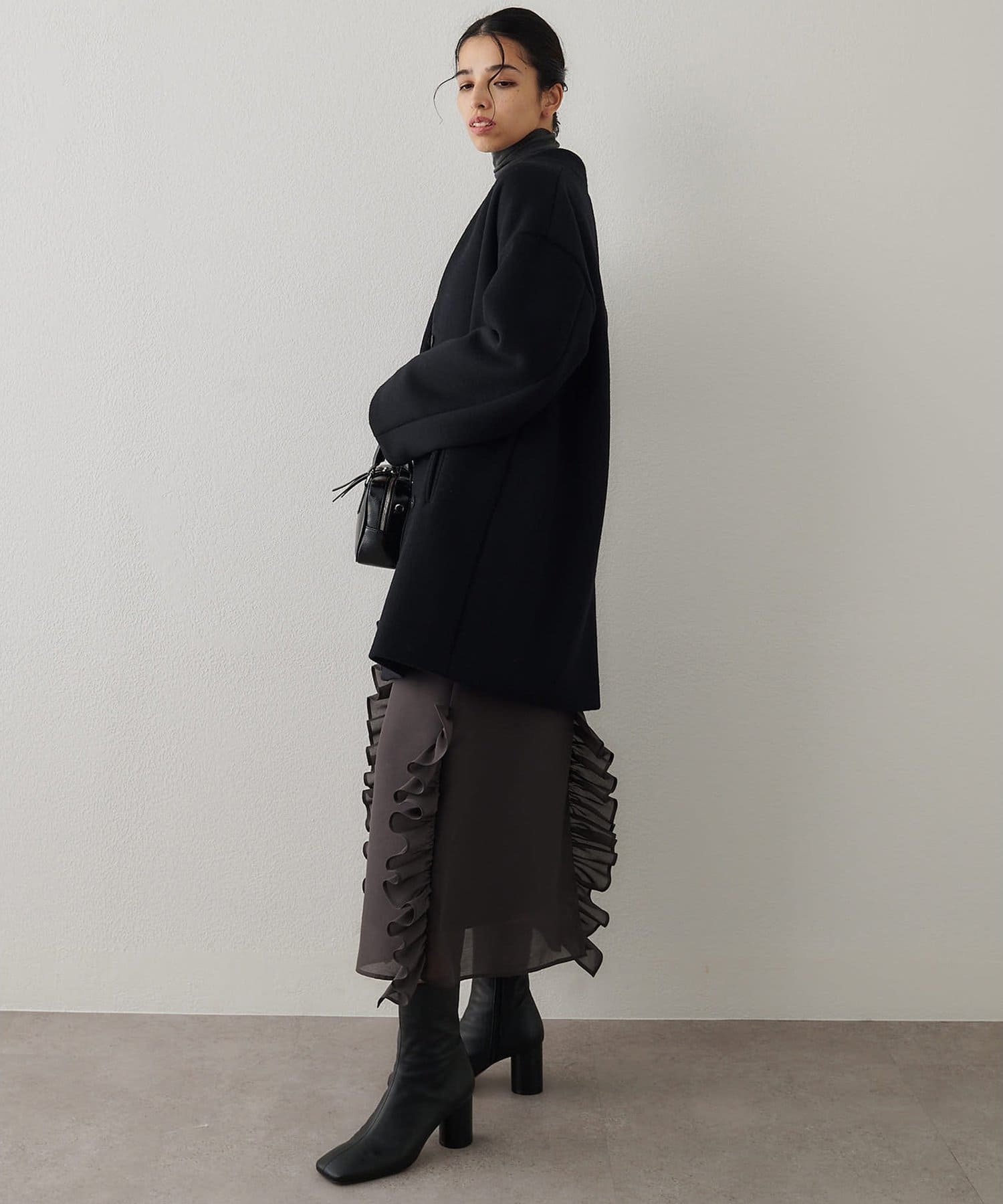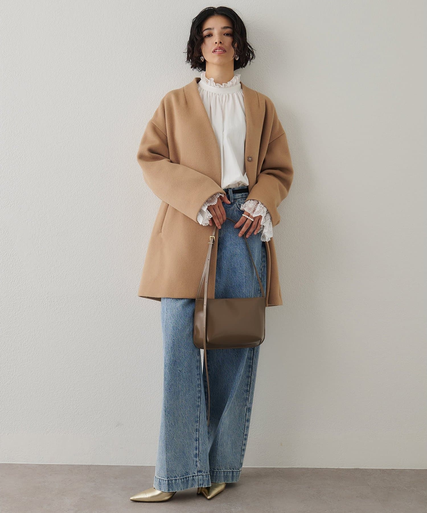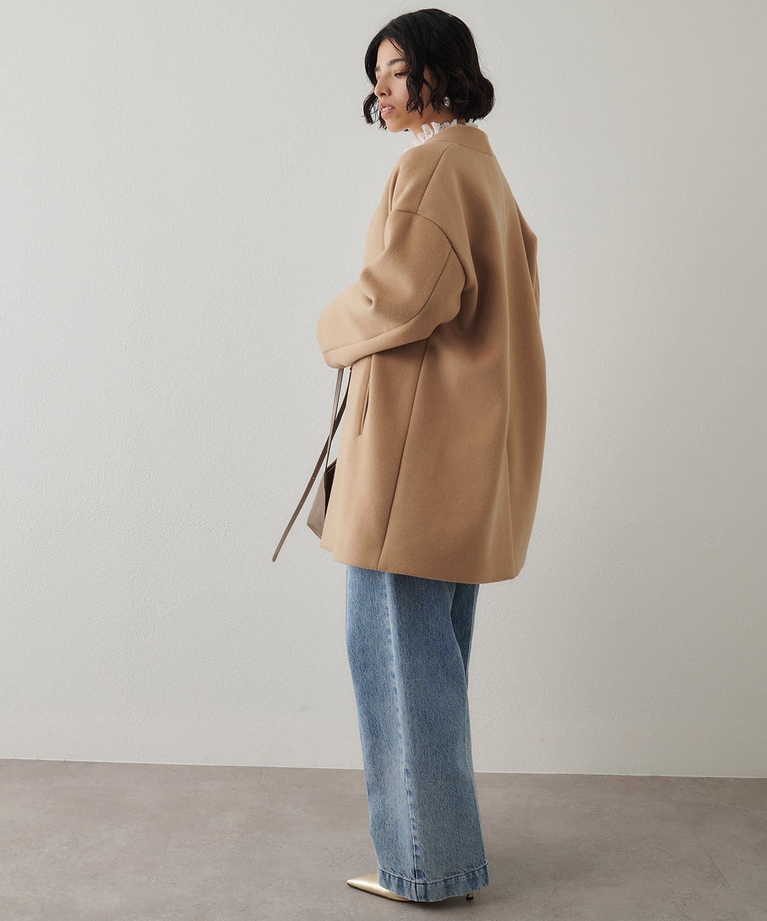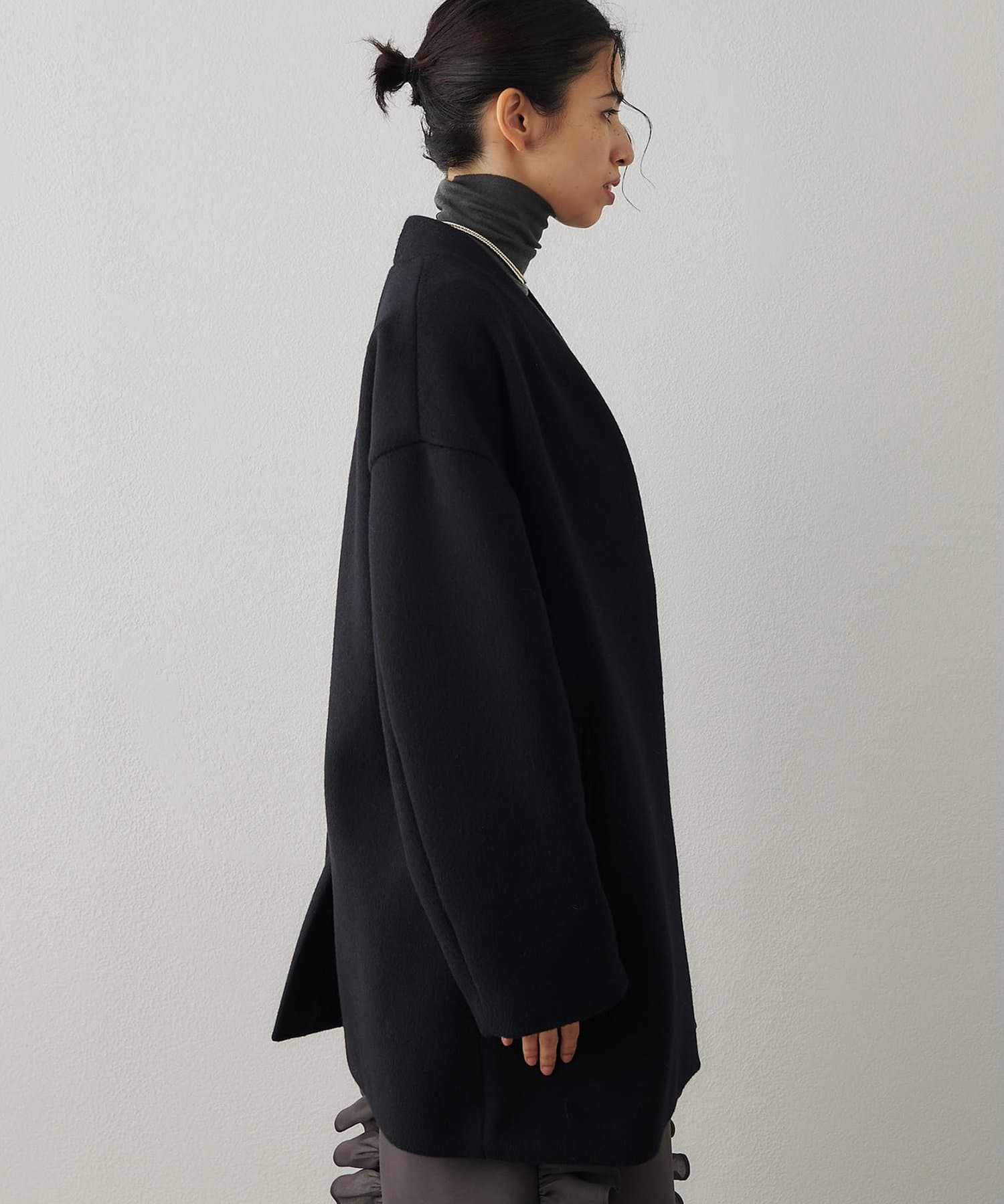 ■リラックス感のあるドロップショルダーに、着ぶくれせずにすっきりと見えるシルエットが美しく、短めの着丈がライトな印象。