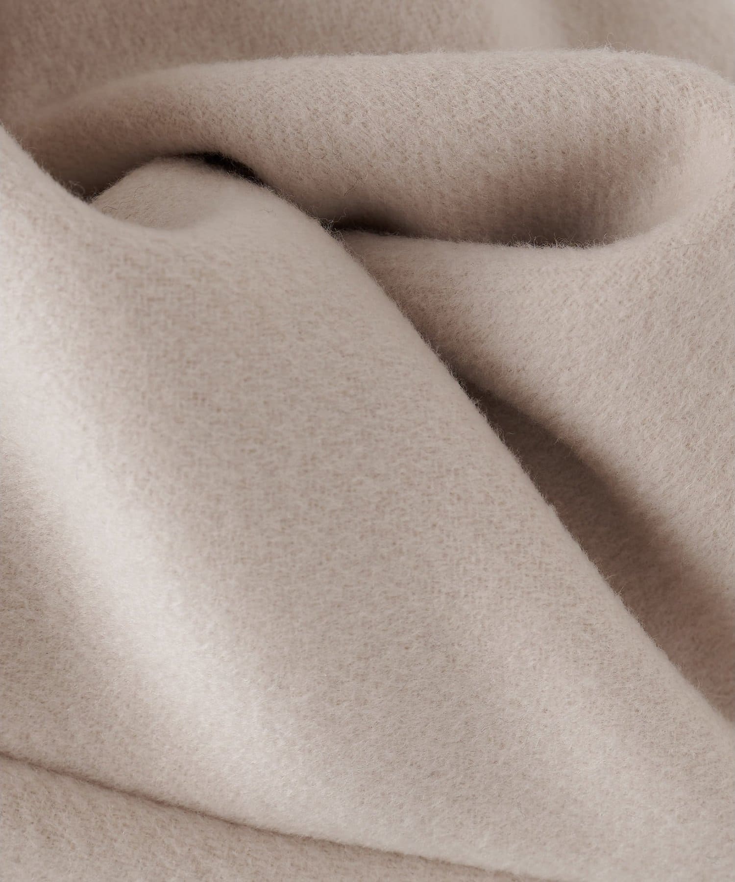 特殊技術により表面の毛羽をきめ細かく剪毛し均一にすることで美しい光沢感を出した素材。