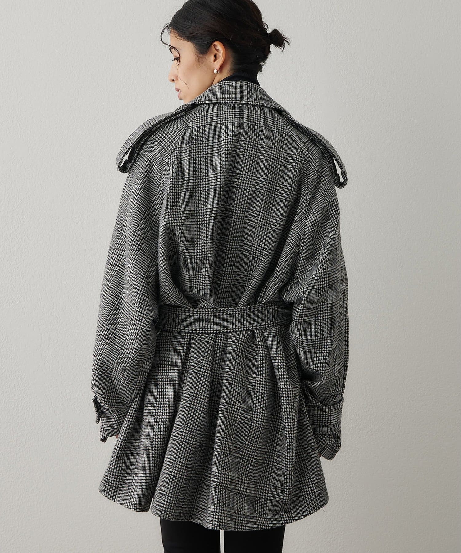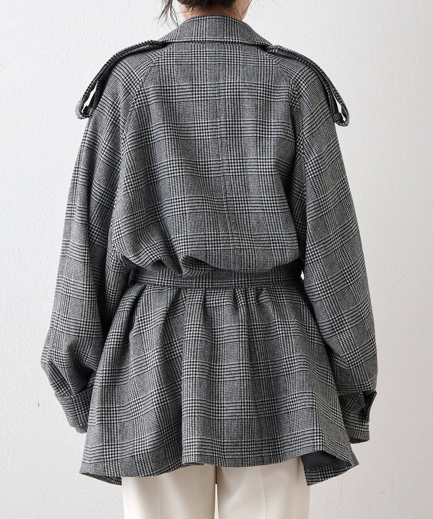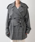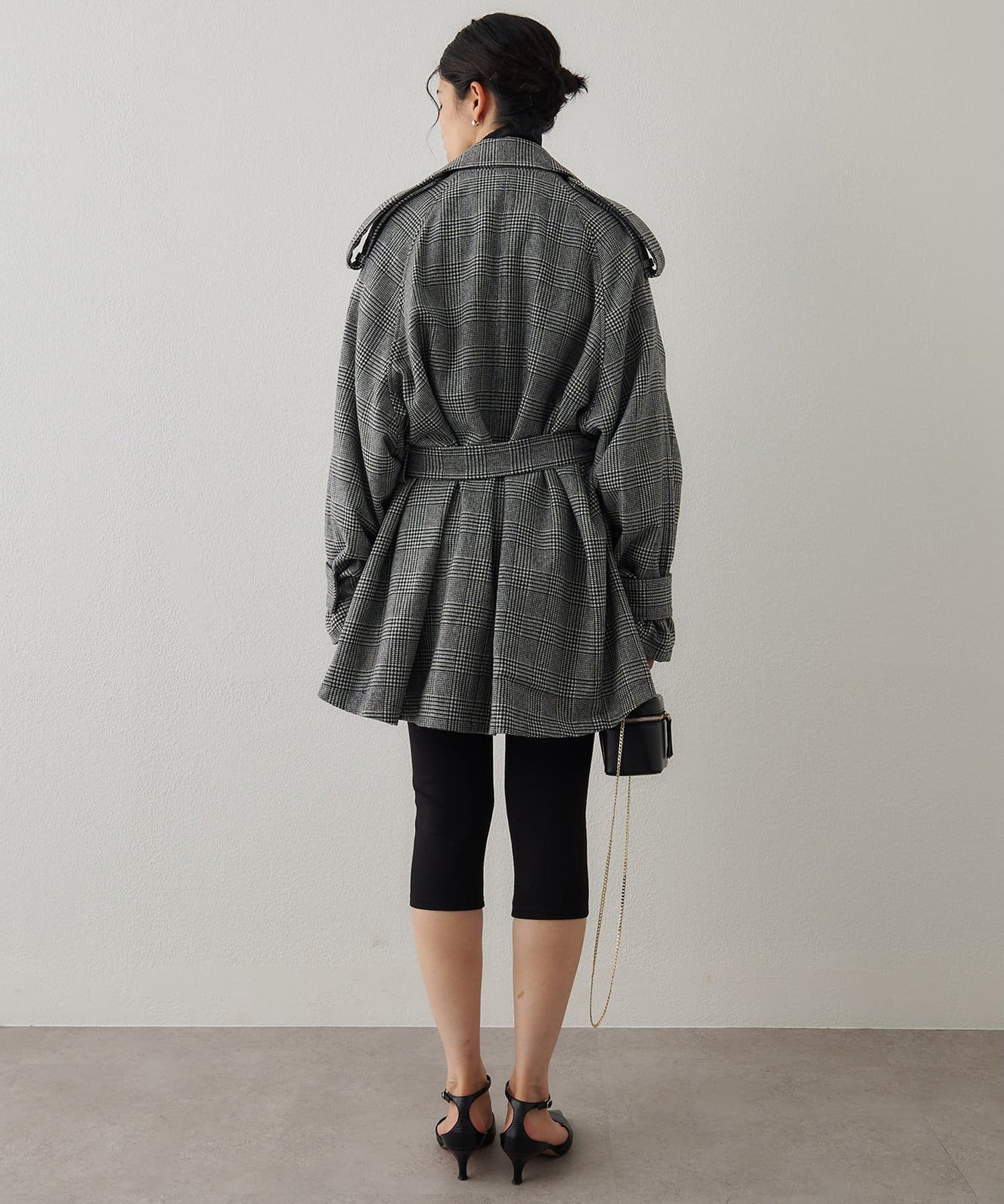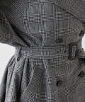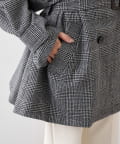 ■大きめの襟とダブルのフロント、ウエストベルトでマニッシュに仕上げた一着。