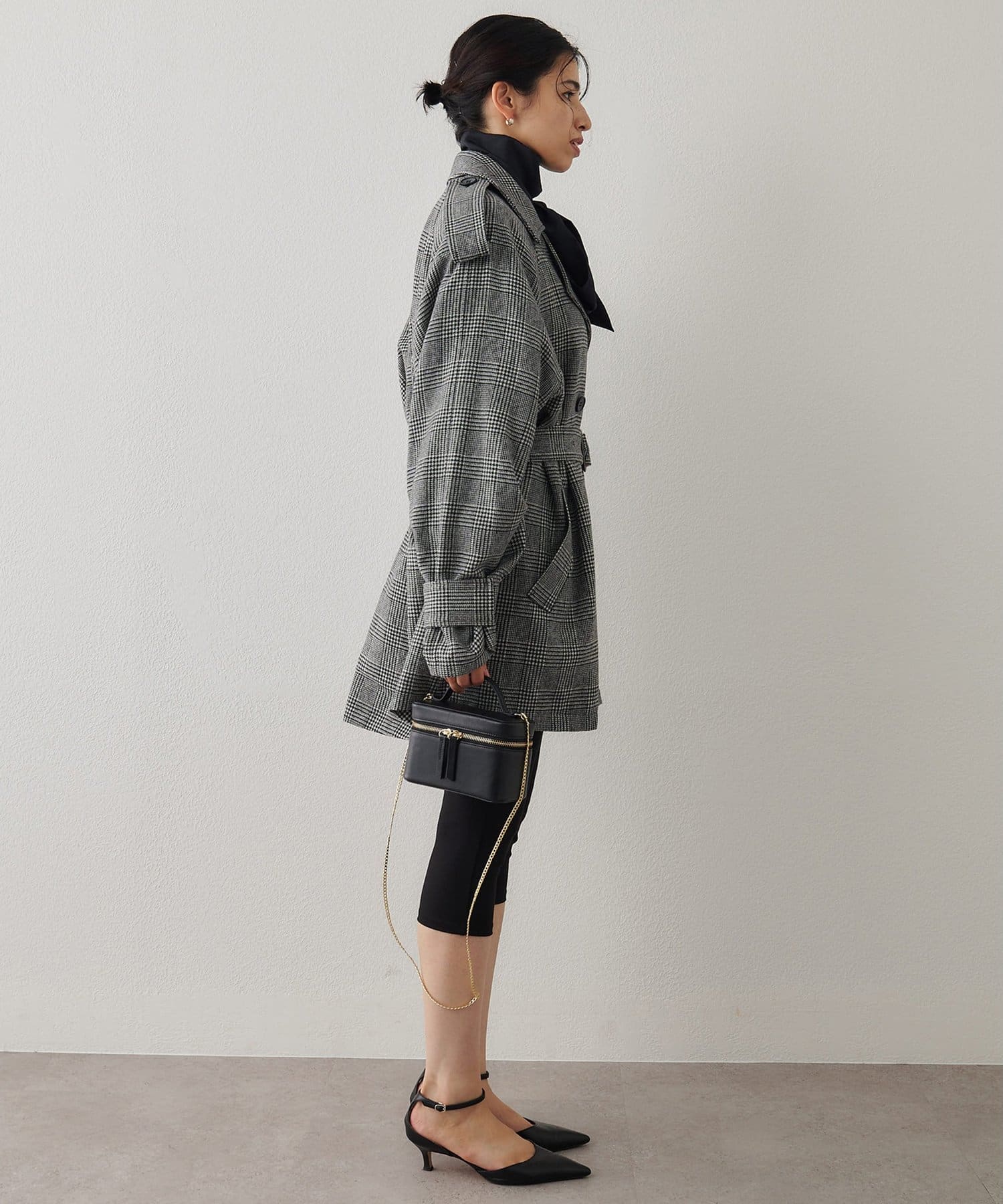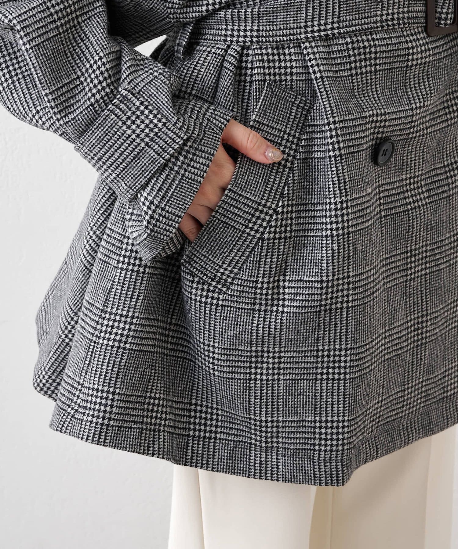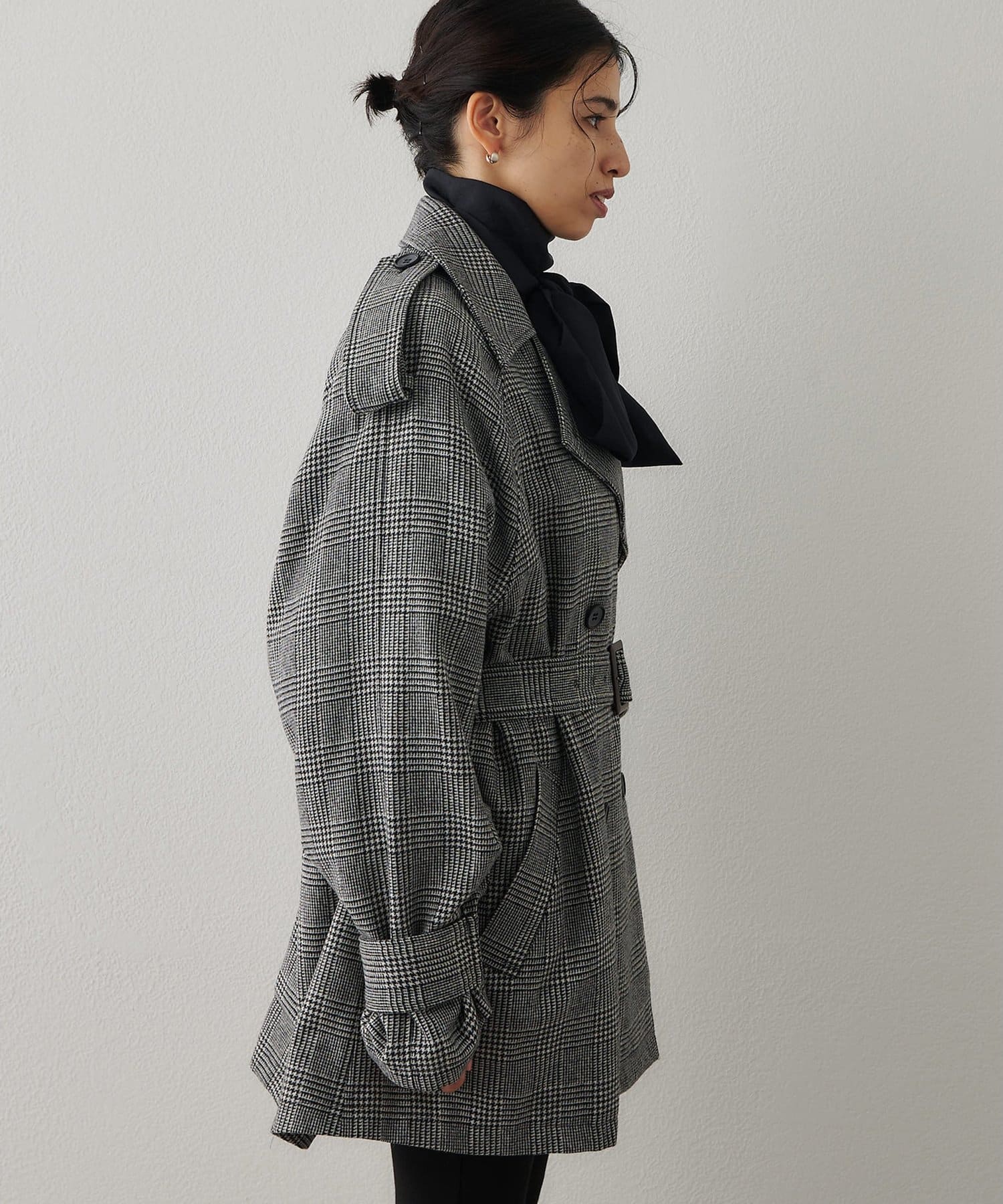 羽織るだけで決まる、マニッシュなチェックミドルコート