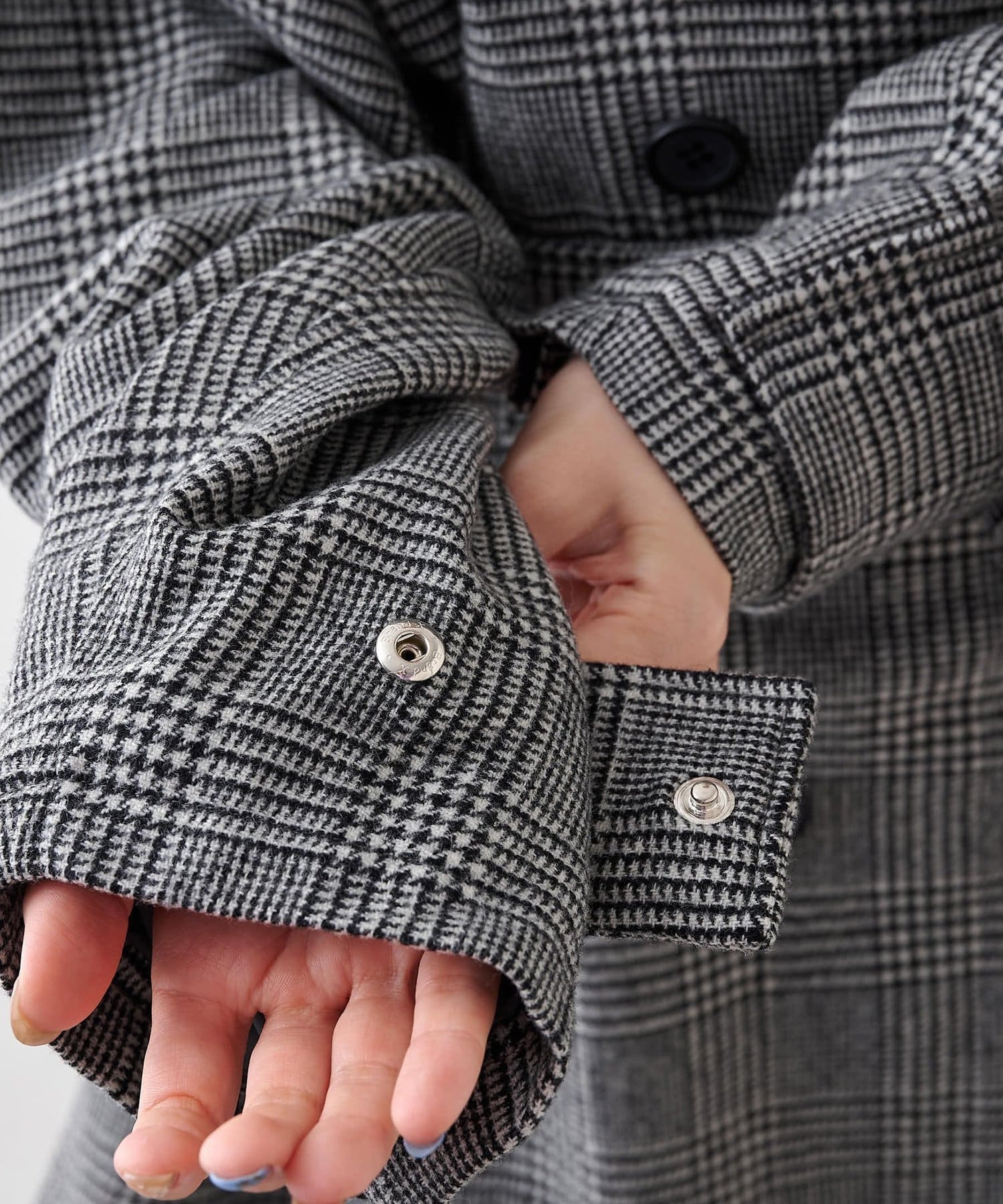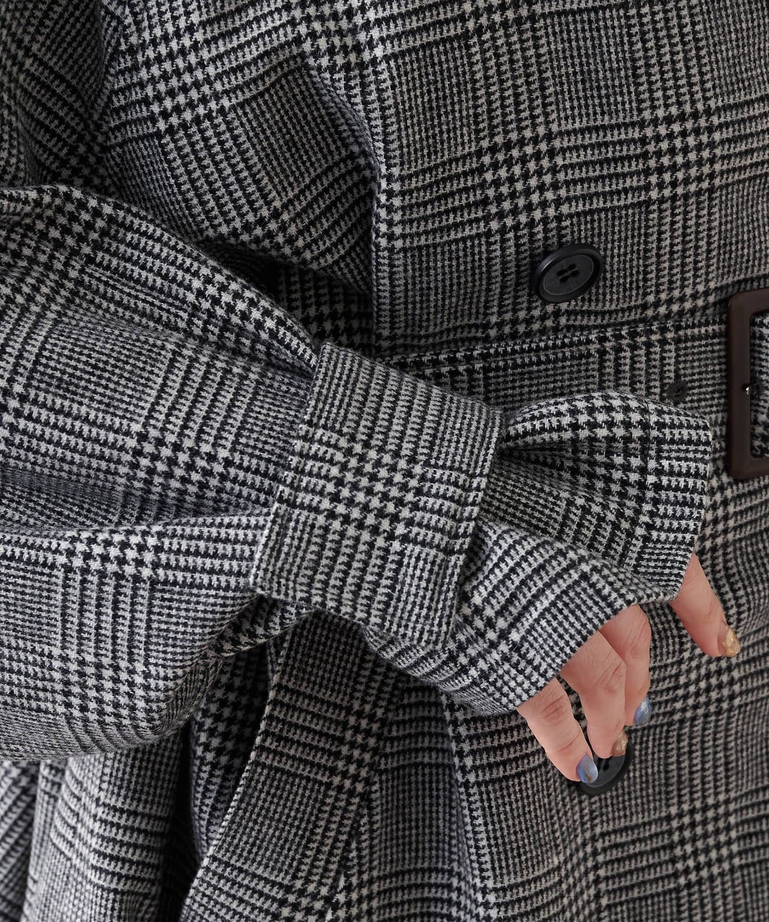 ブラック:コーディネートをクラシカルに彩るグレンチェック柄。