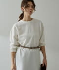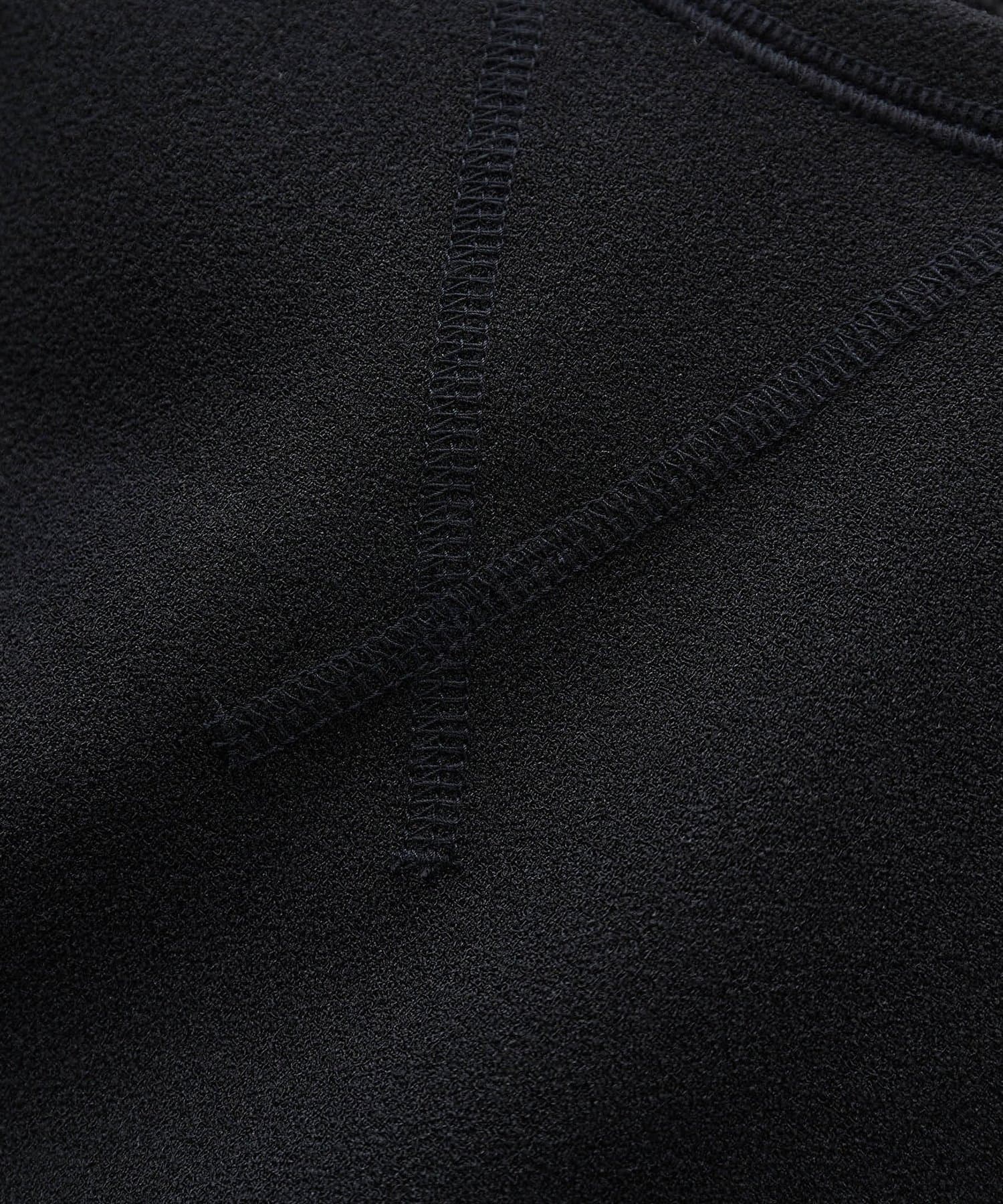ポリエステルの二重織アムンゼン素材。布帛ながらカットソーのようなストレッチ性を表現し、国内技術を駆使した希少性のある素材。