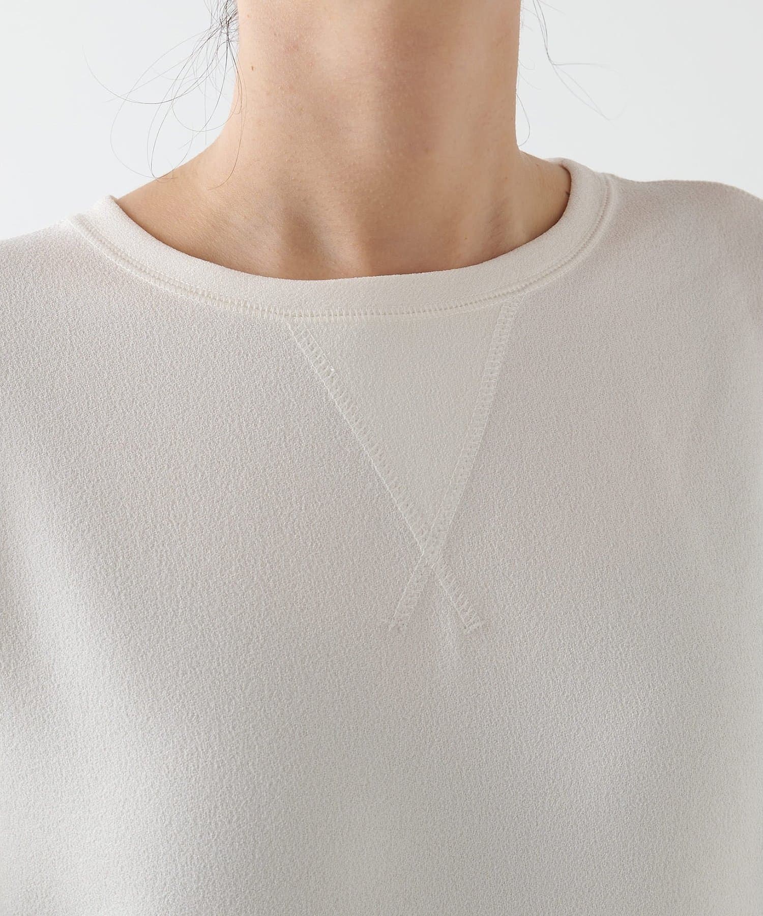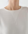 ■Vガゼットを配したコンパクトなクルーネックや、袖口のリブがラフな印象をプラス。