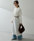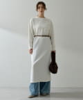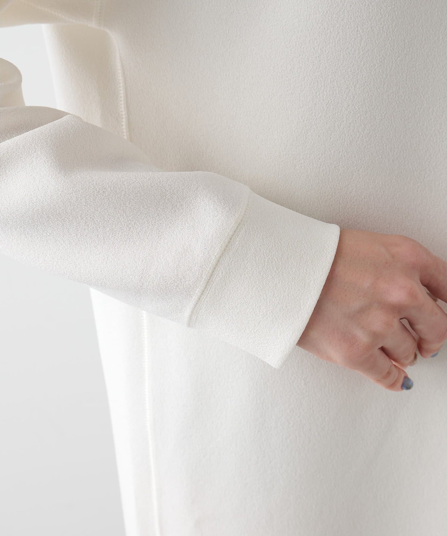 ■身体のラインを拾いにくいストレートなナローラインと長めの袖がポイント。