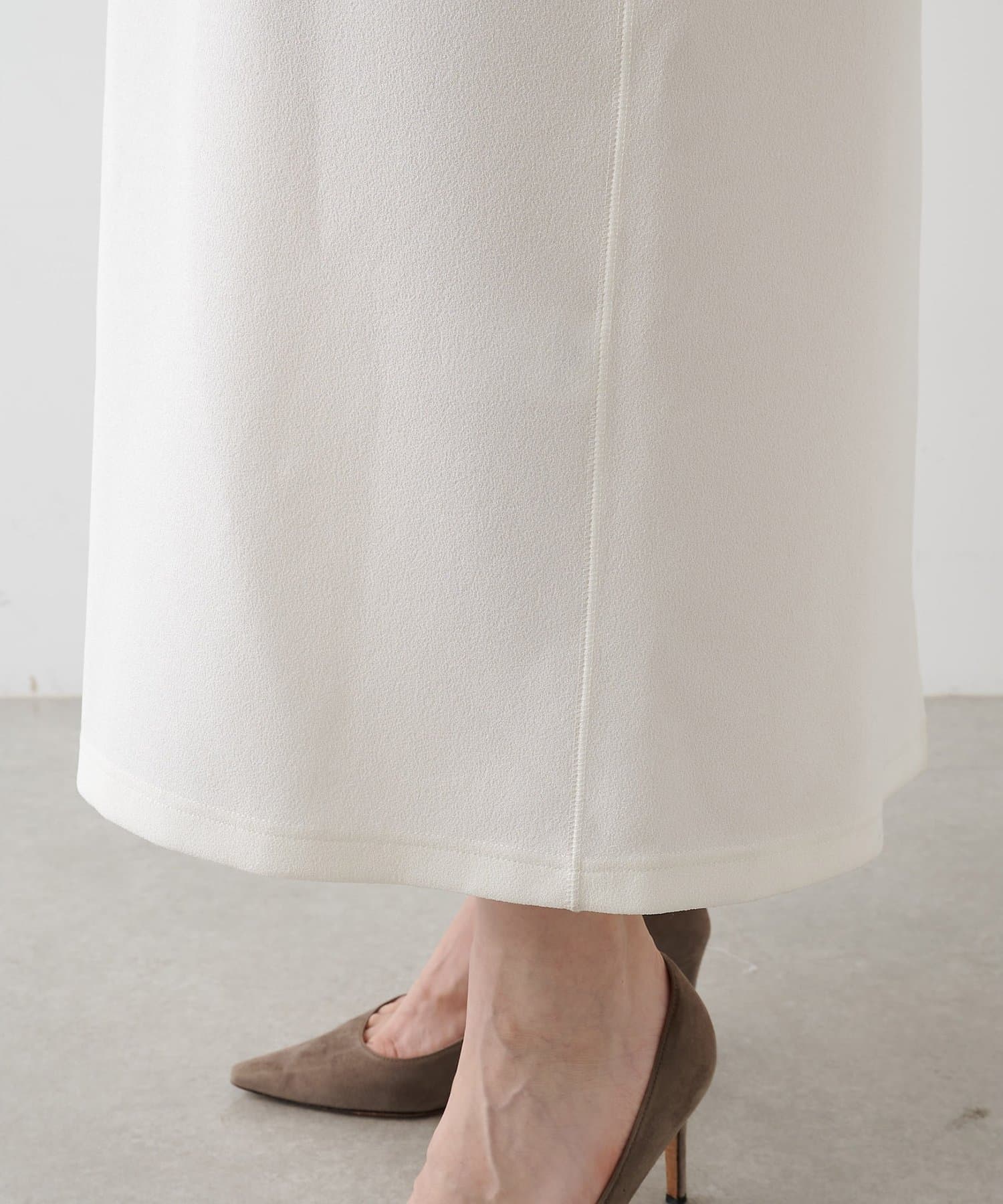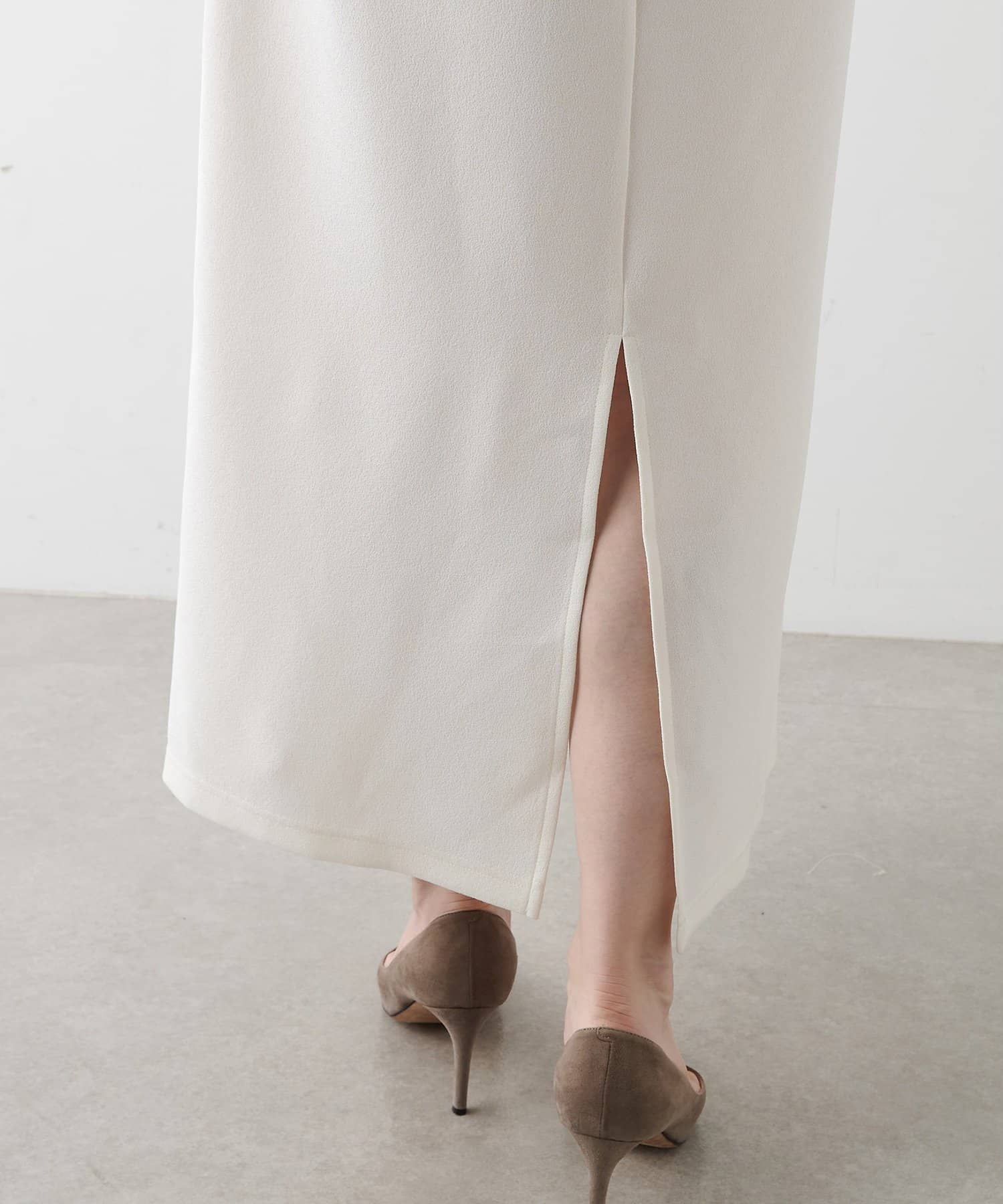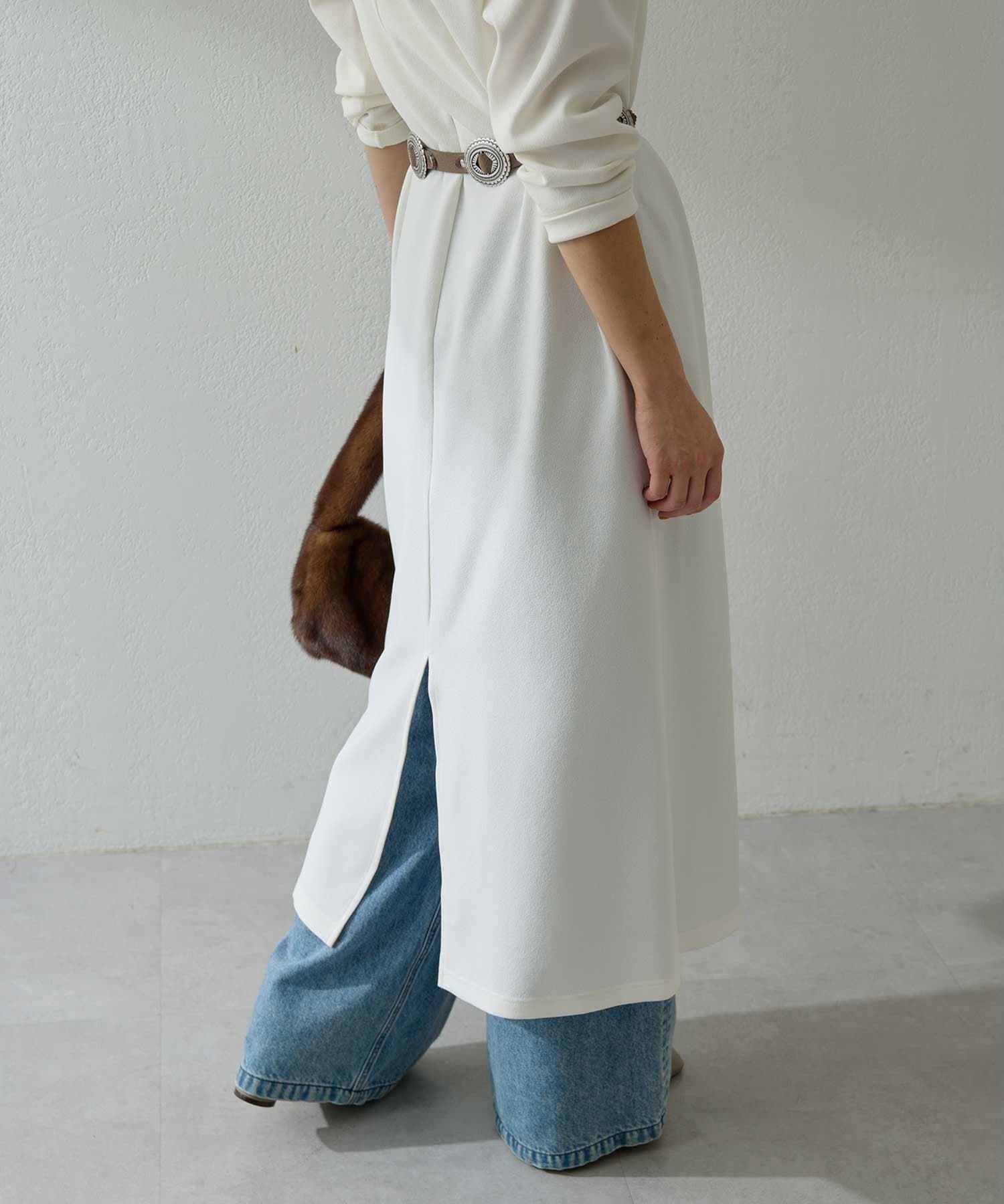 ■後ろ中心のスリットからは足元の肌見せやブーツ見せが出来る、女性らしいワンポイントをプラス。