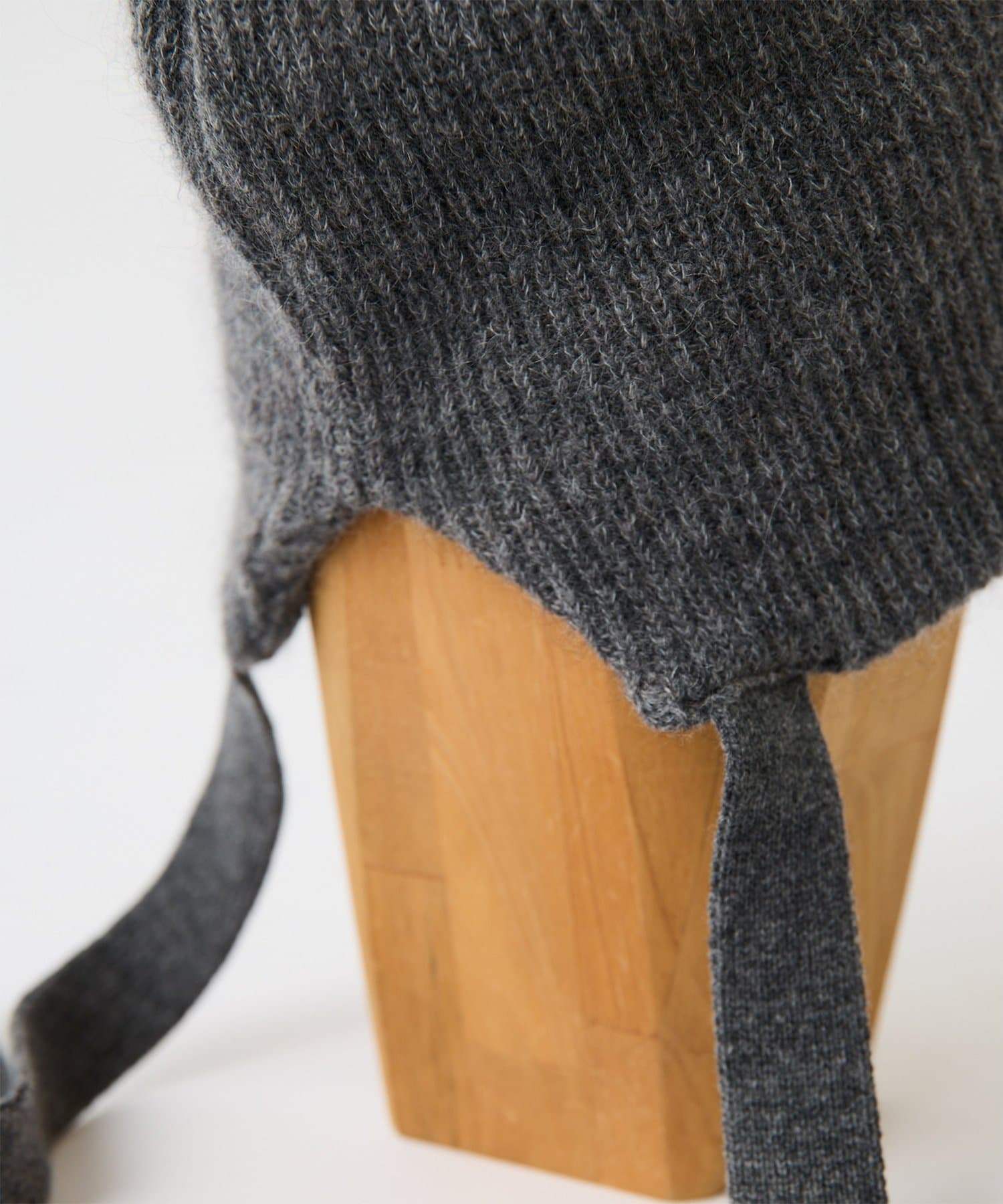 ■ニットで編まれた長めのリボンが特徴的で、垂らしたり首に巻いたりとアレンジ可能。