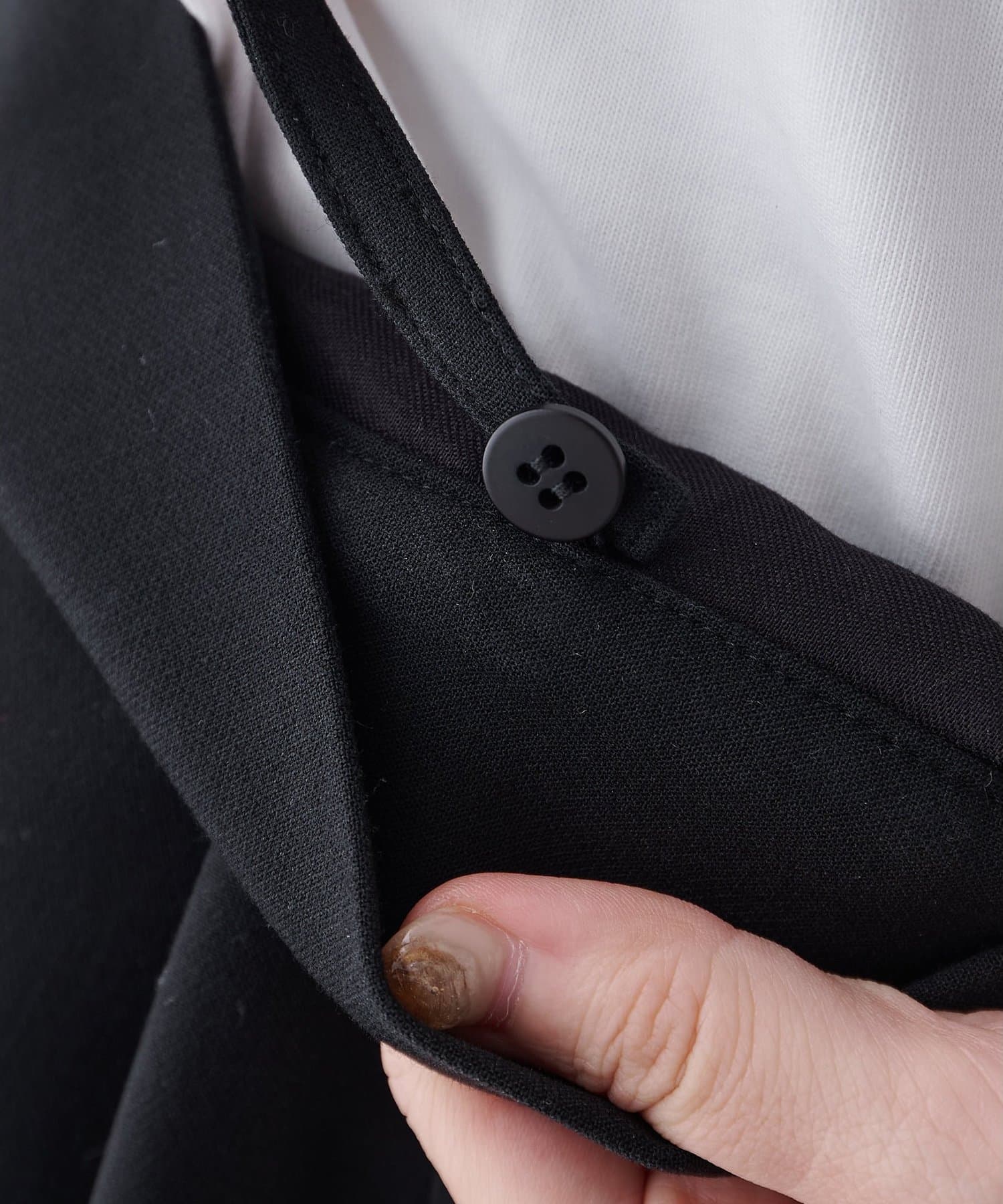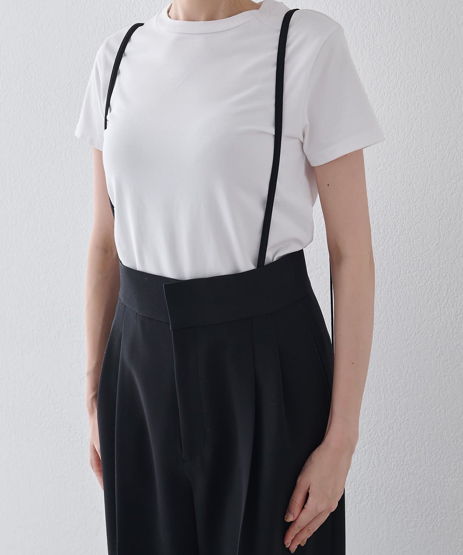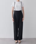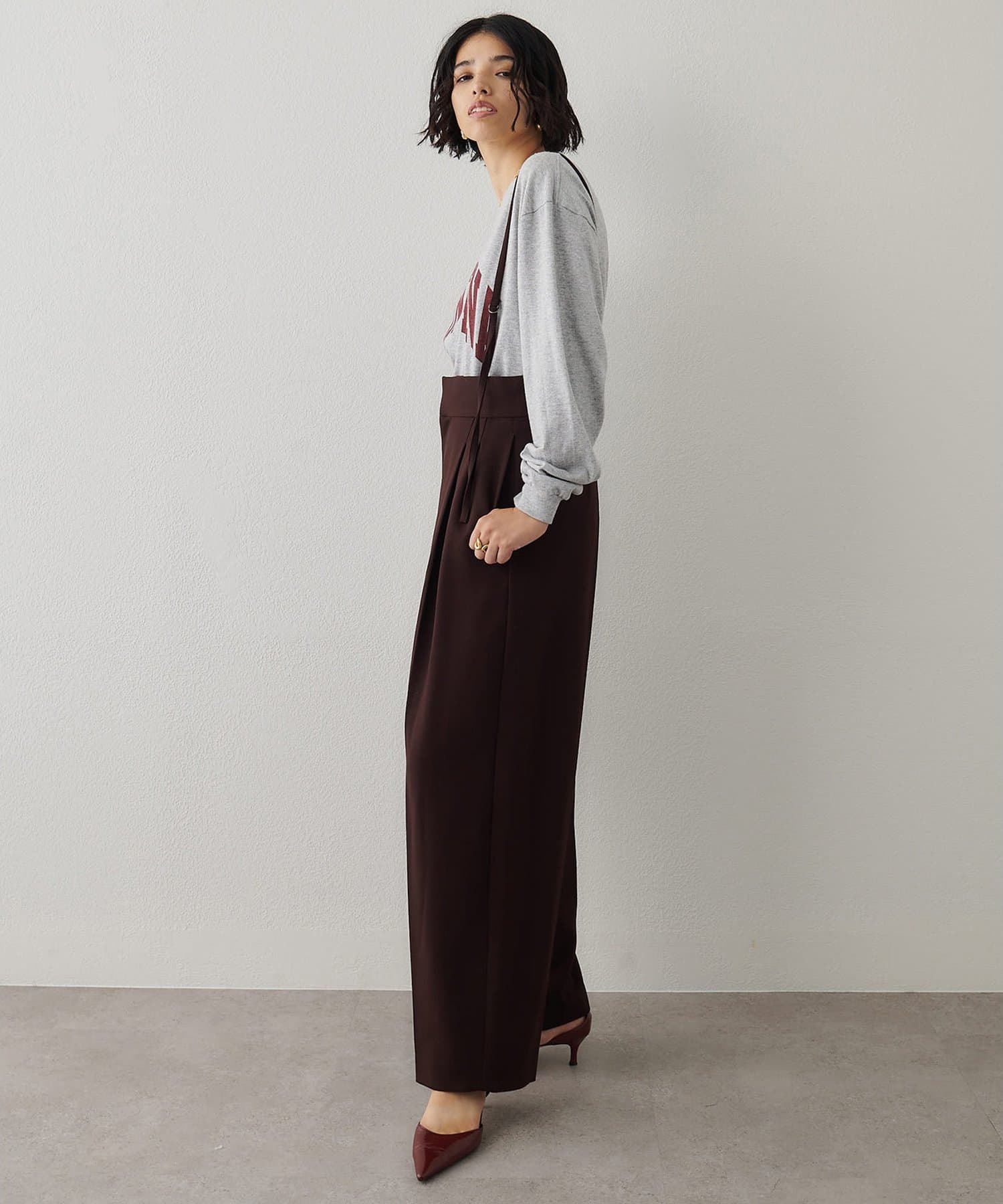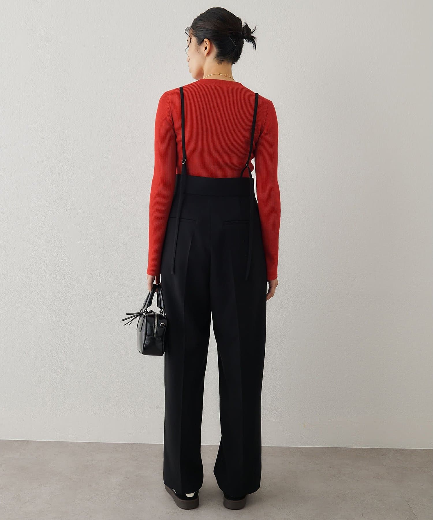 ■仕立て映えする美しいシルエットが魅力のサスペンダーパンツ。