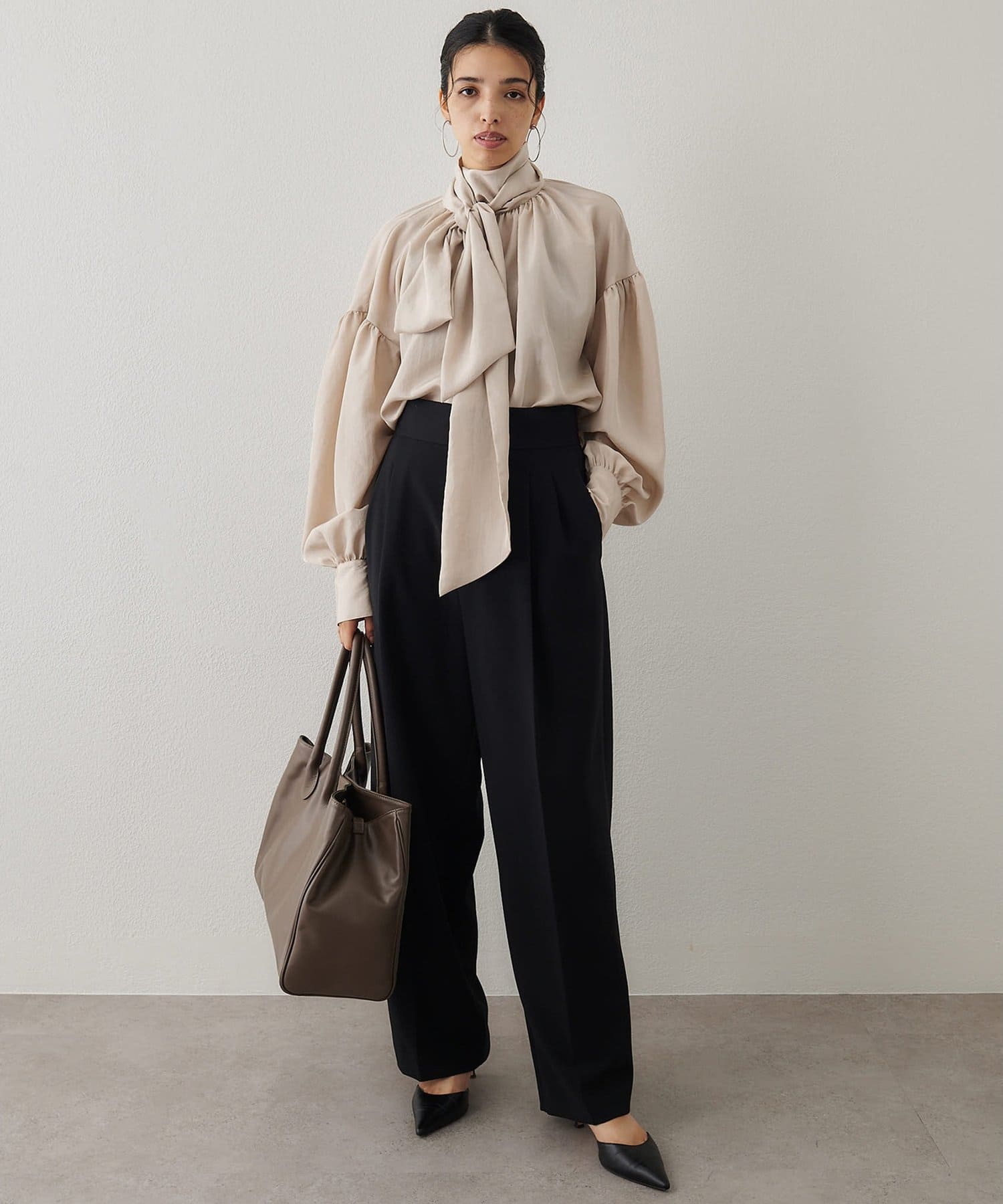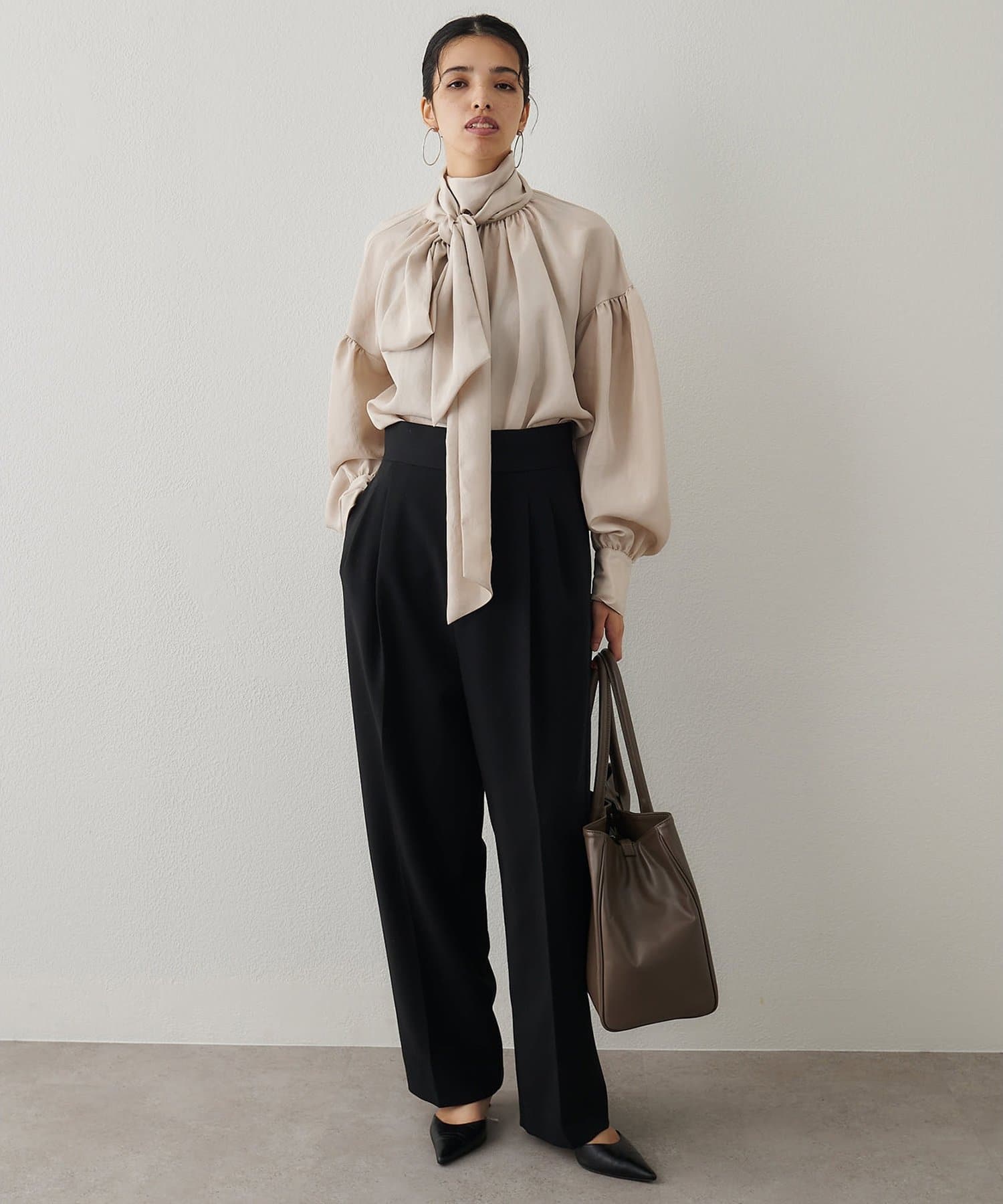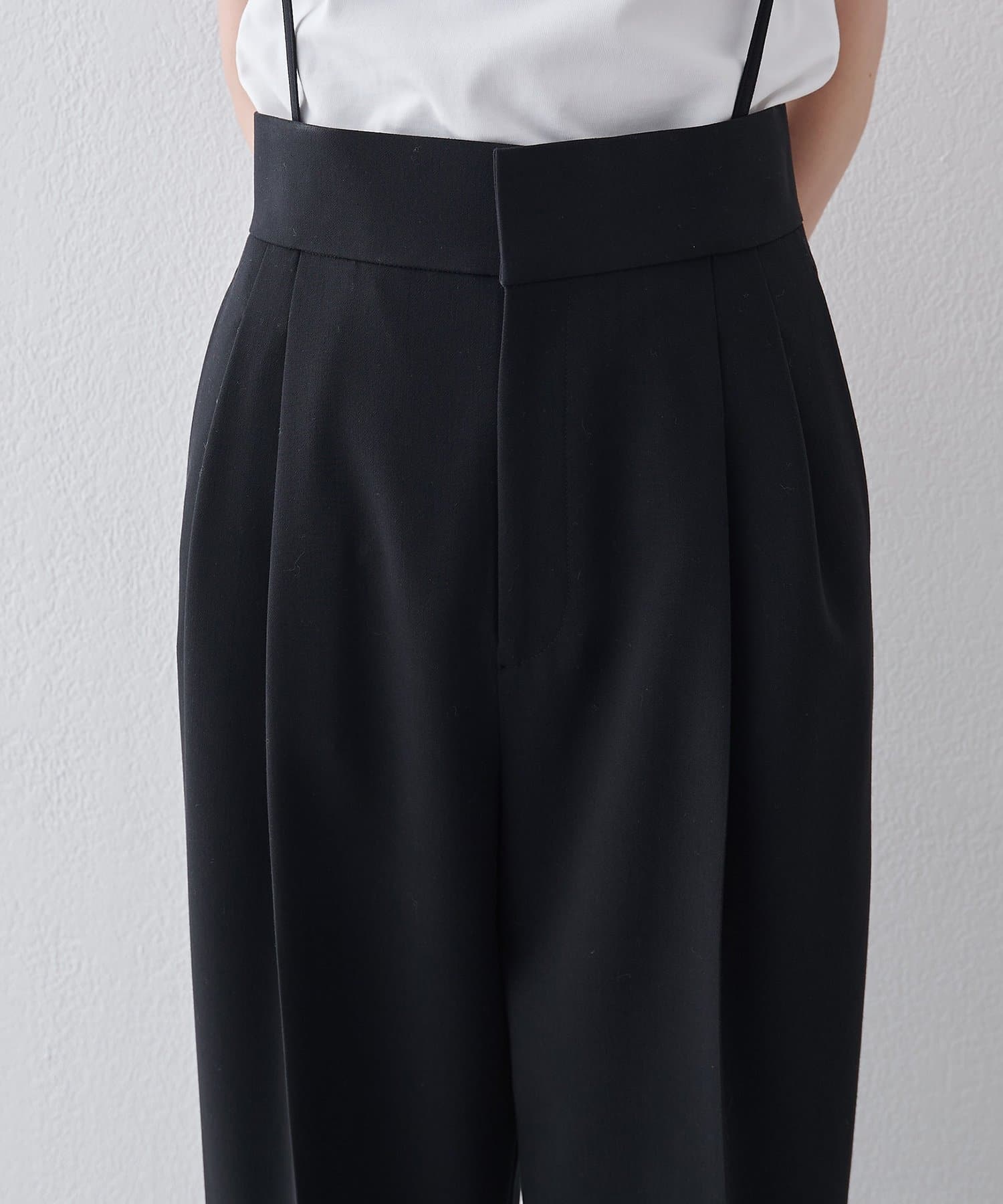 ■タック入りのワイドシルエットに、ハイウエスト+センタープレスで脚長効果も抜群。