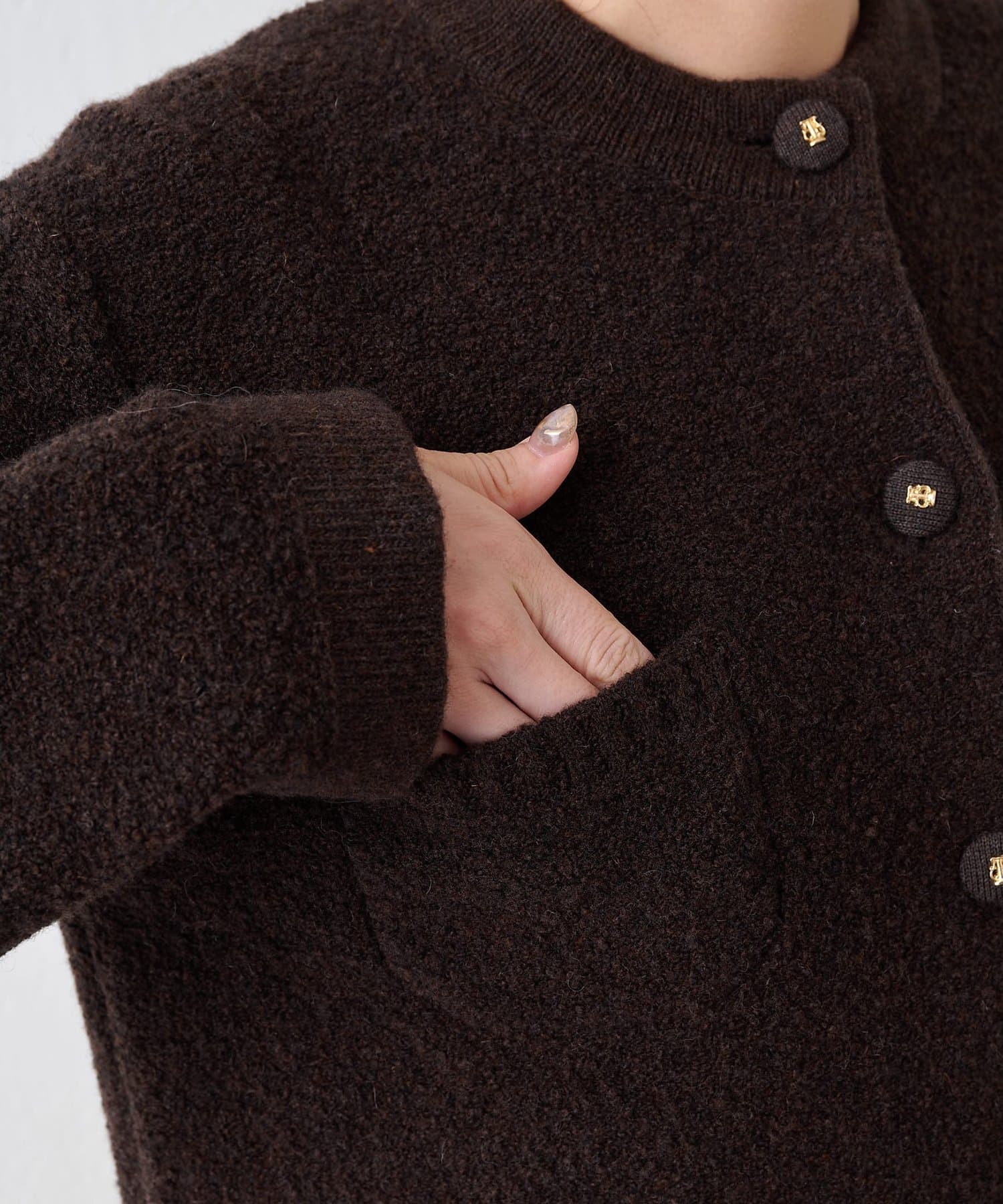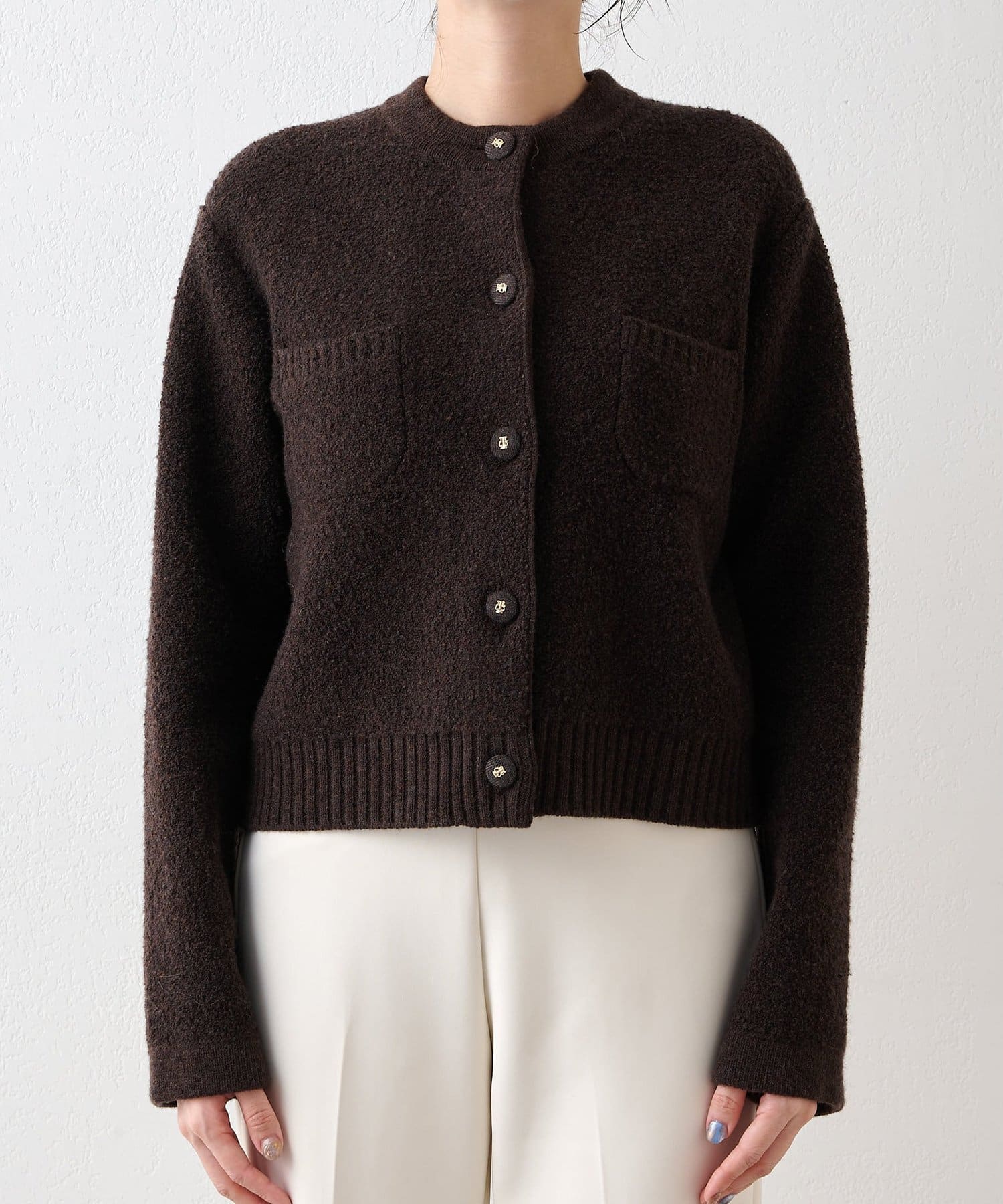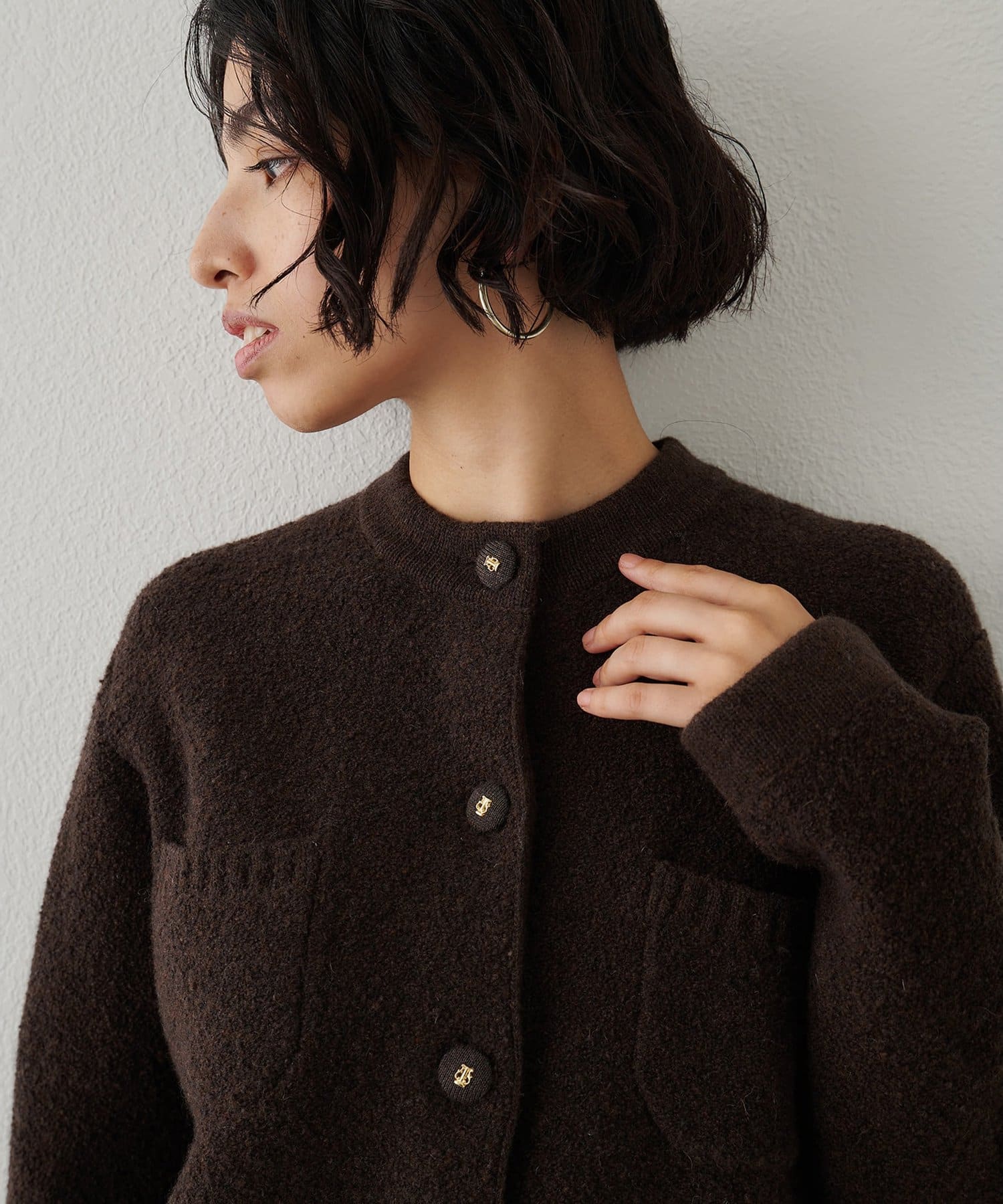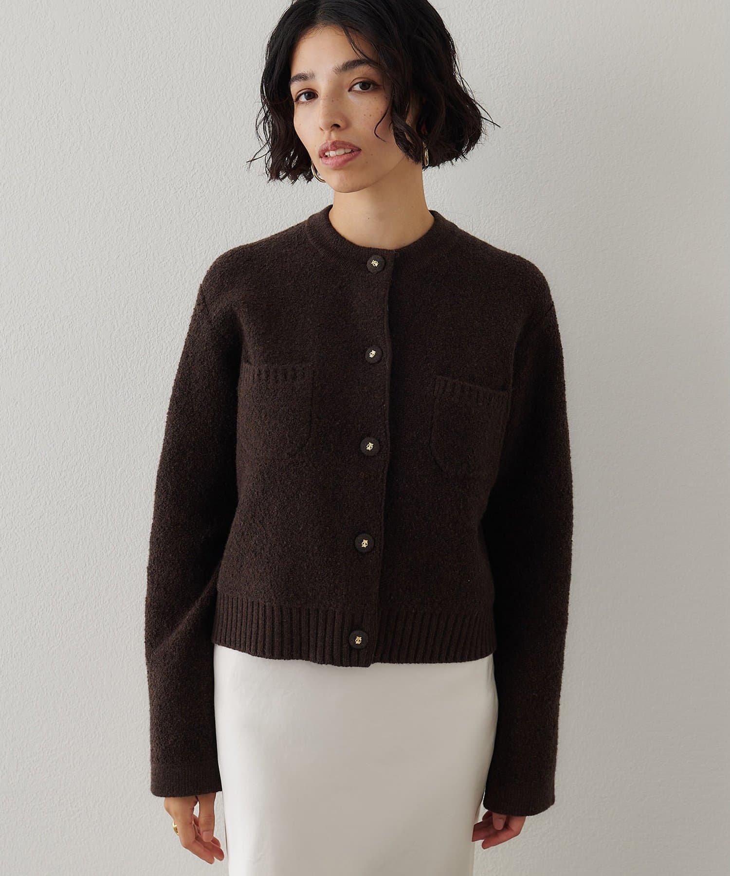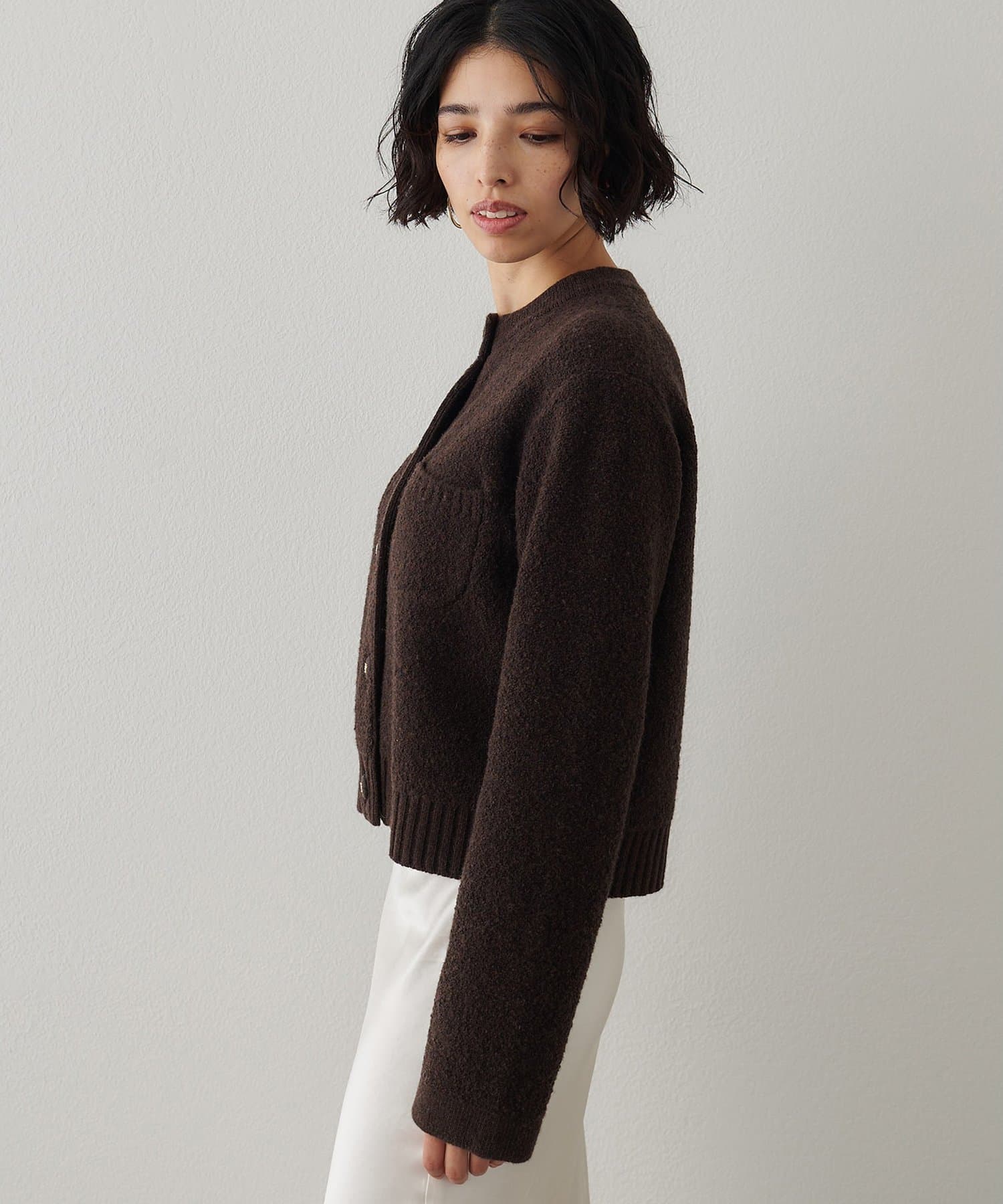 ■ふっくらとしたブークレの表情が特徴的なニットカーディガン。