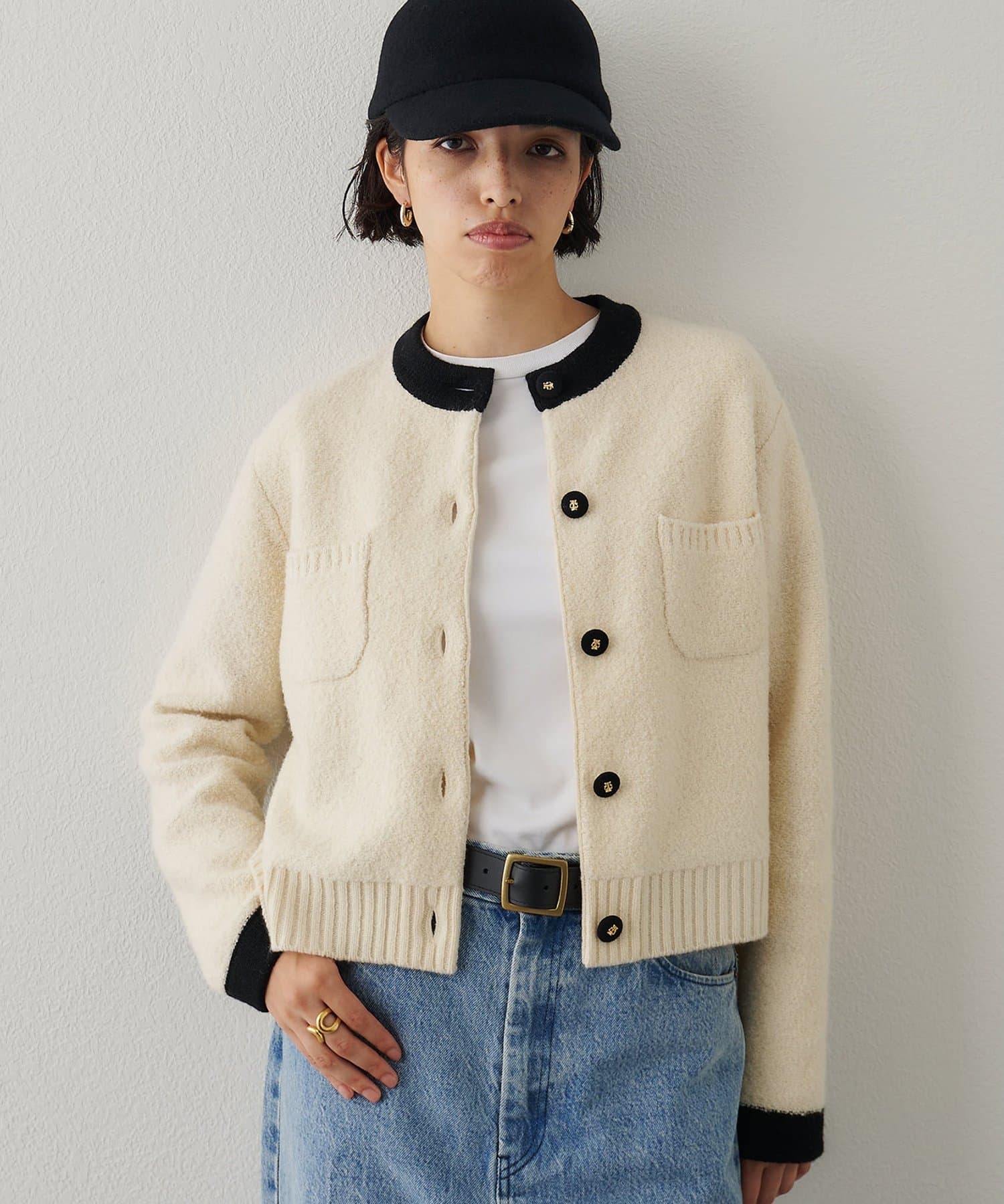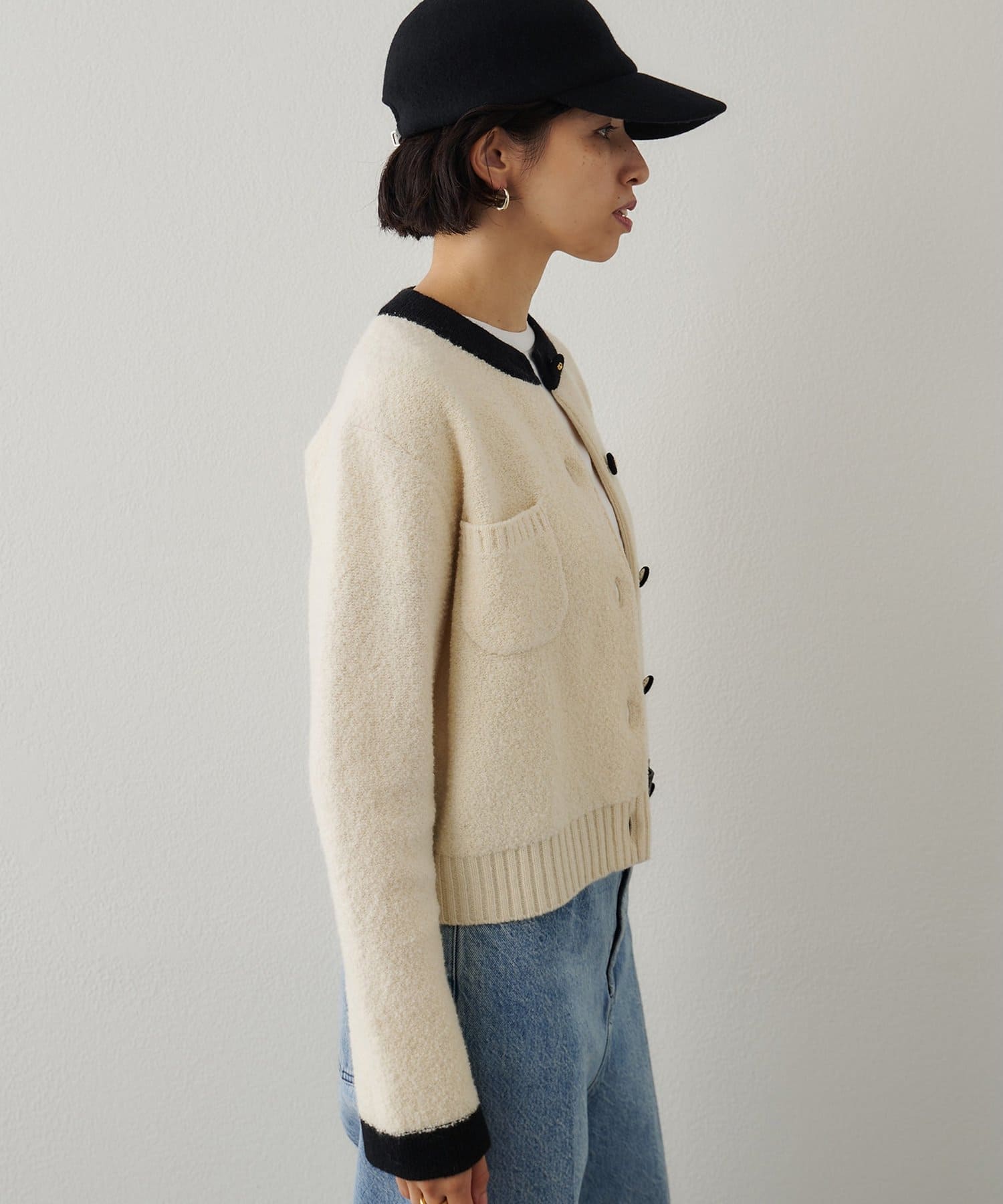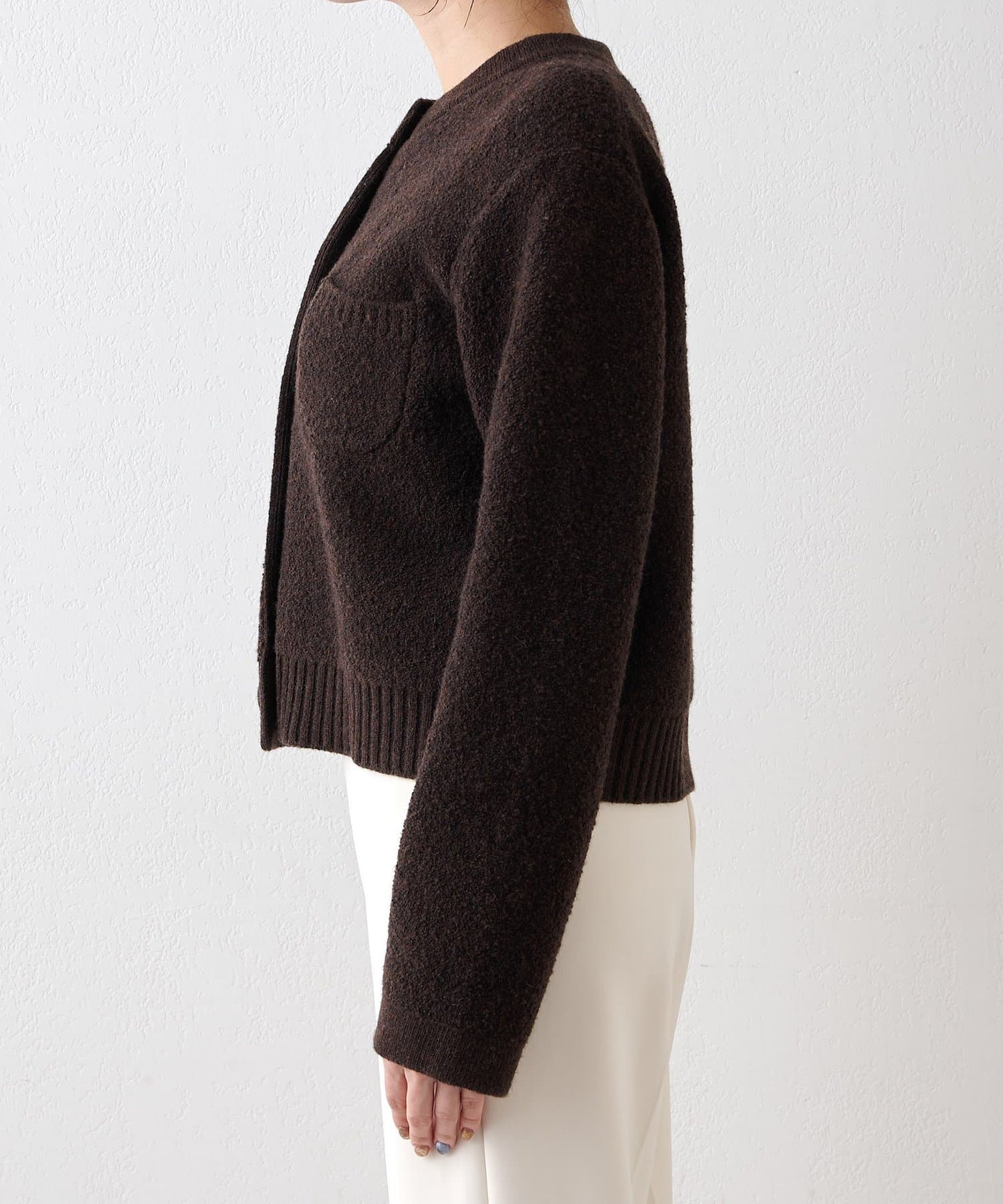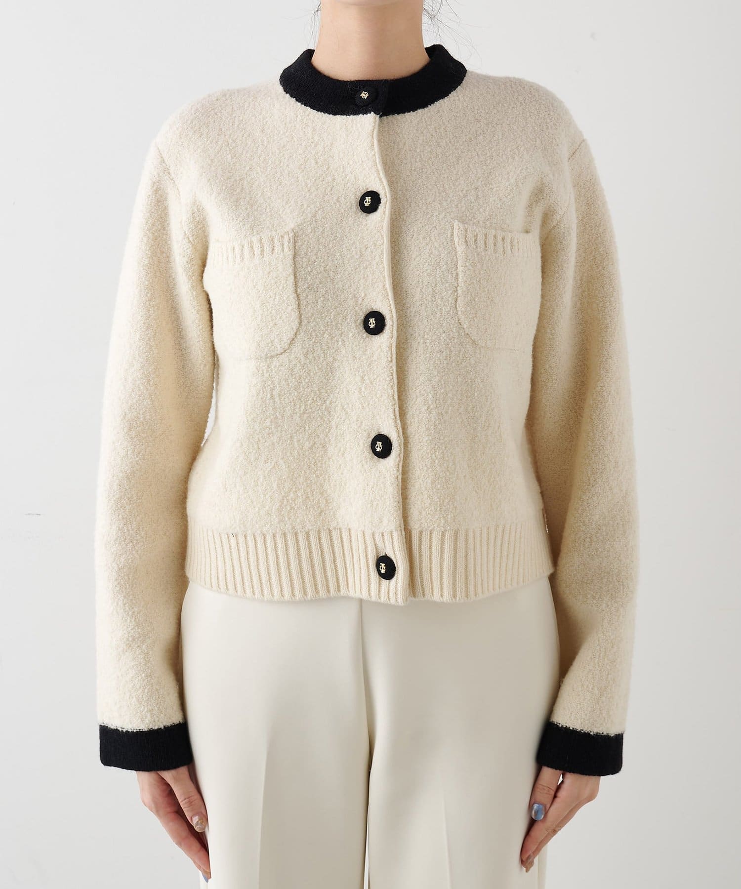 ■ふっくらとしたブークレの表情が特徴的なニットカーディガン。