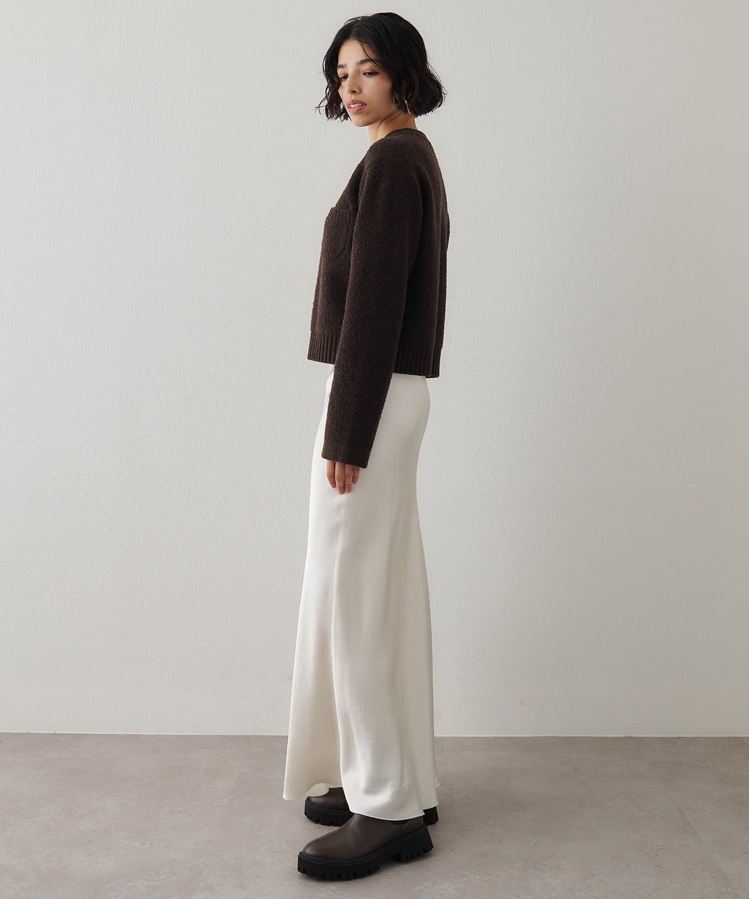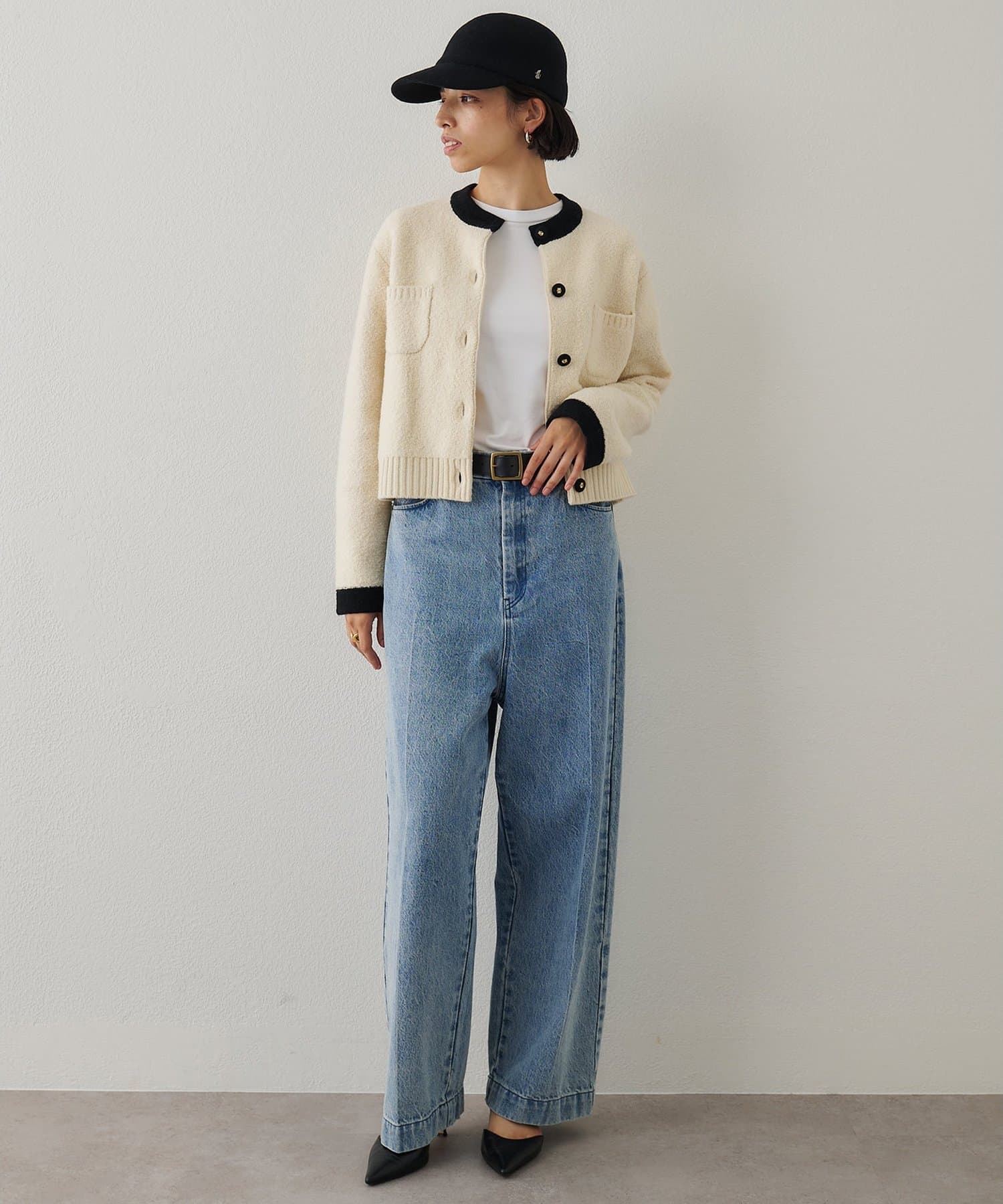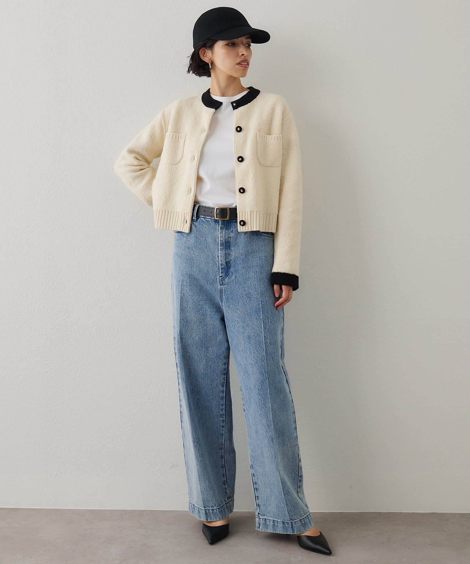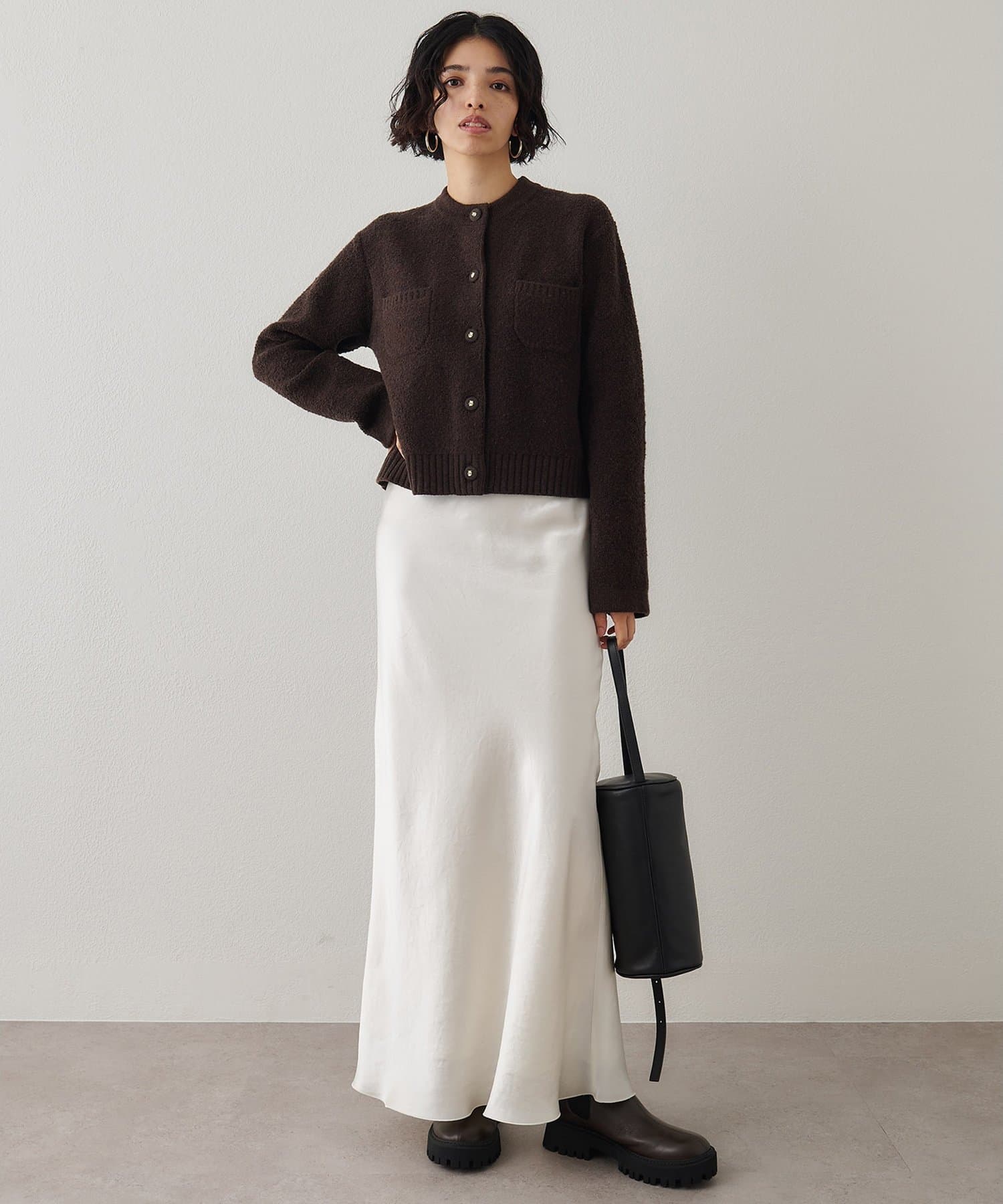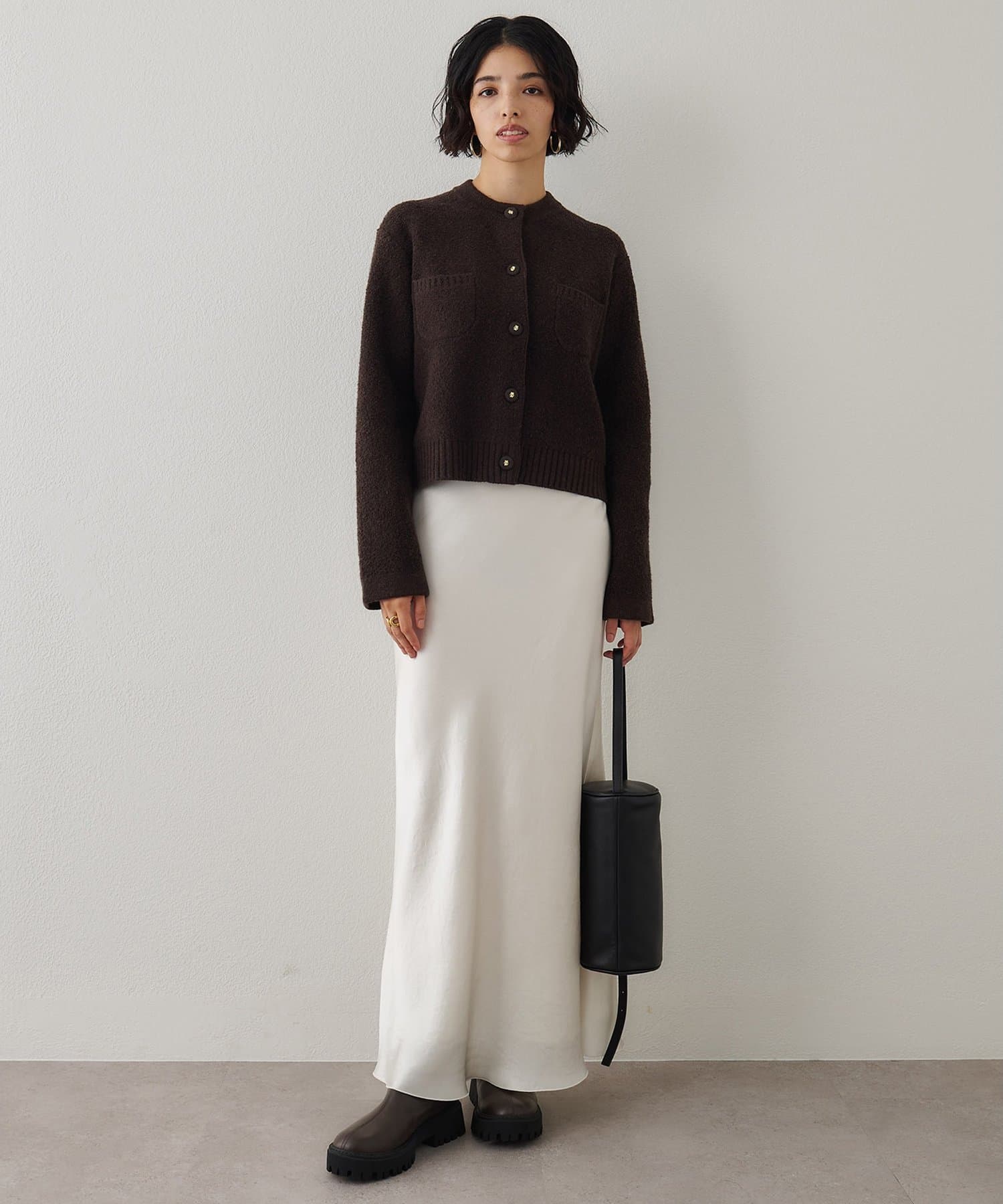 ■ふっくらとしたブークレの表情が特徴的なニットカーディガン。