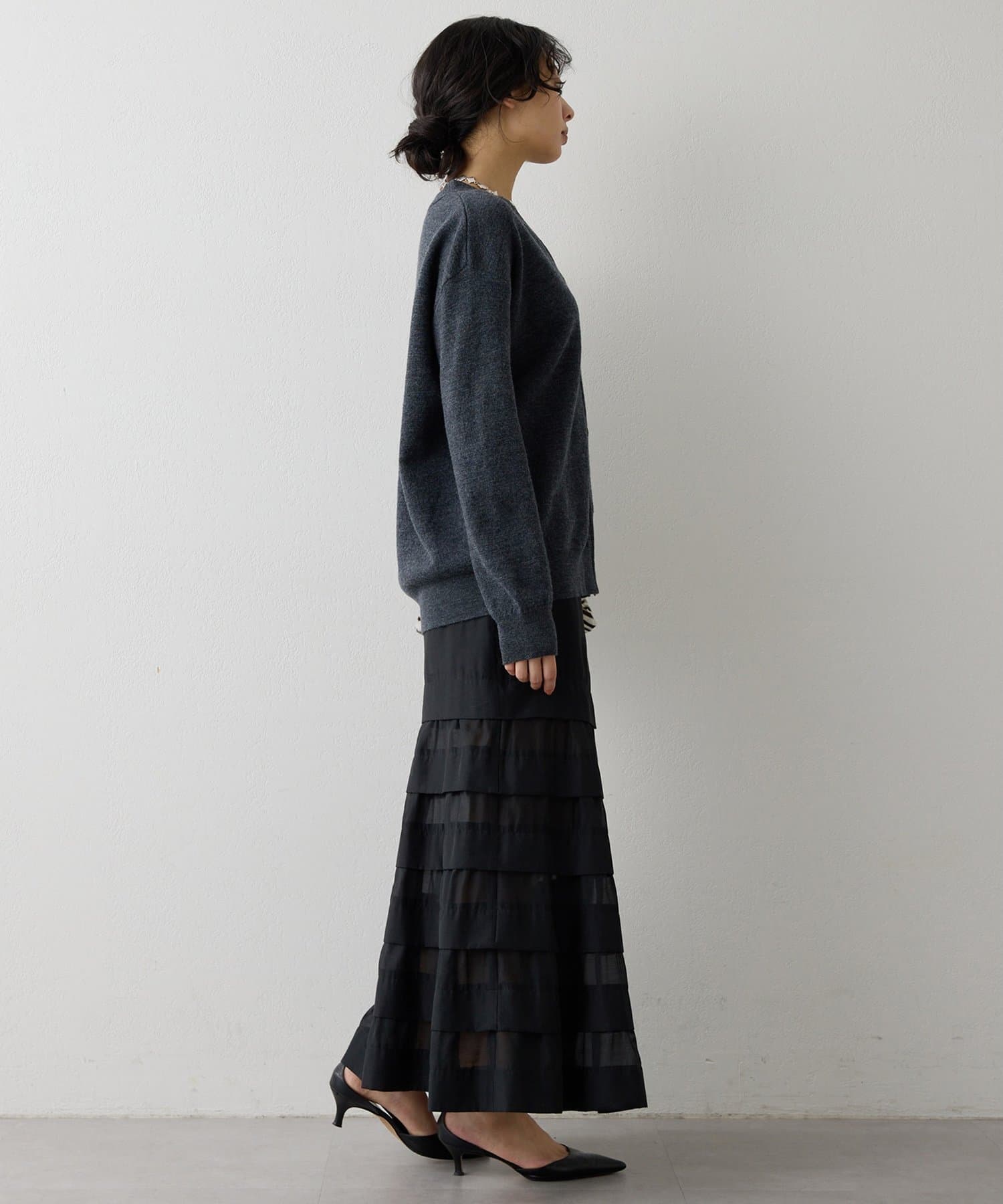 ■カットソーやシャツの上からさらりと羽織ったり、ボタンを留めてプルオーバーのように楽しむのもおすすめ。