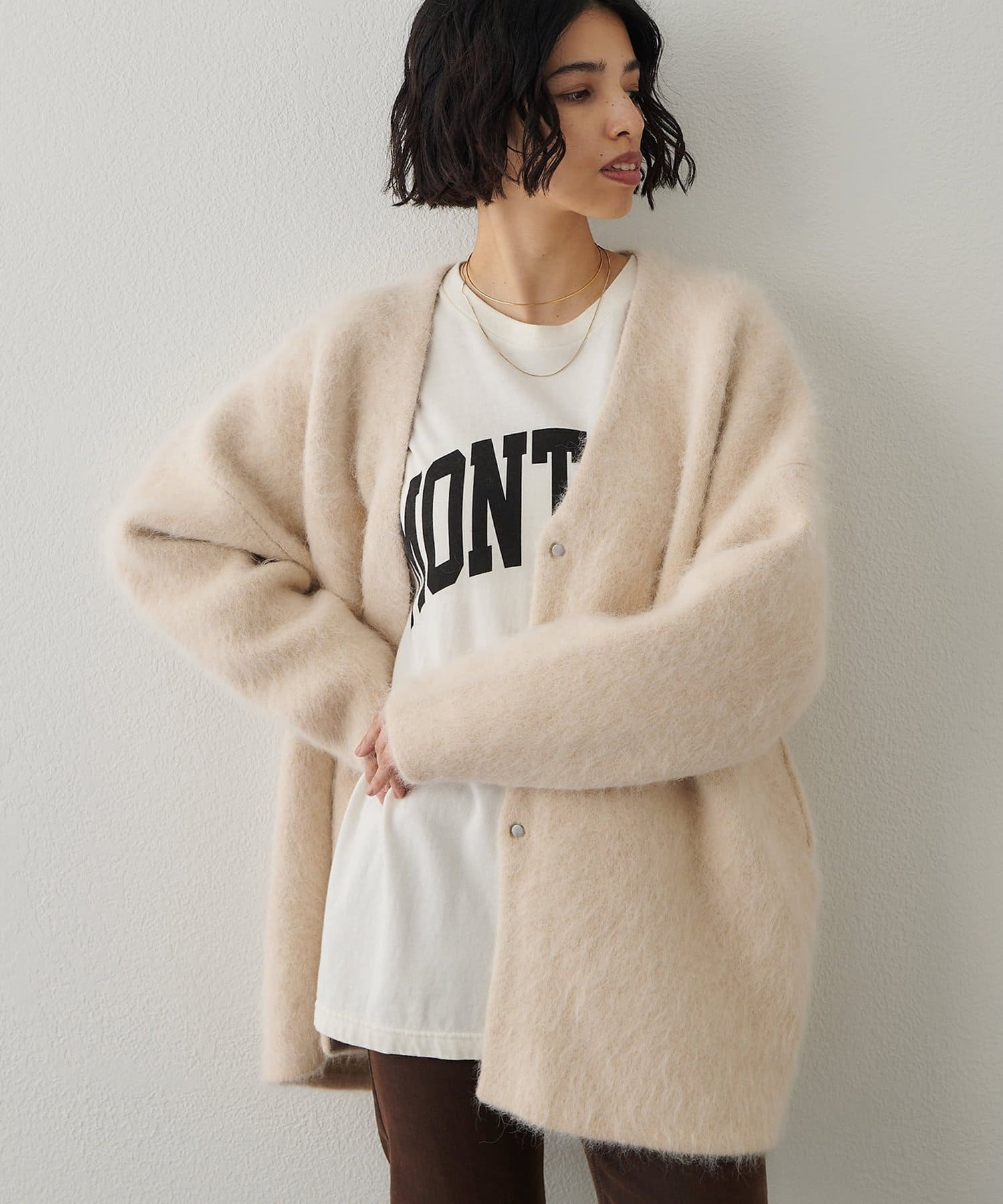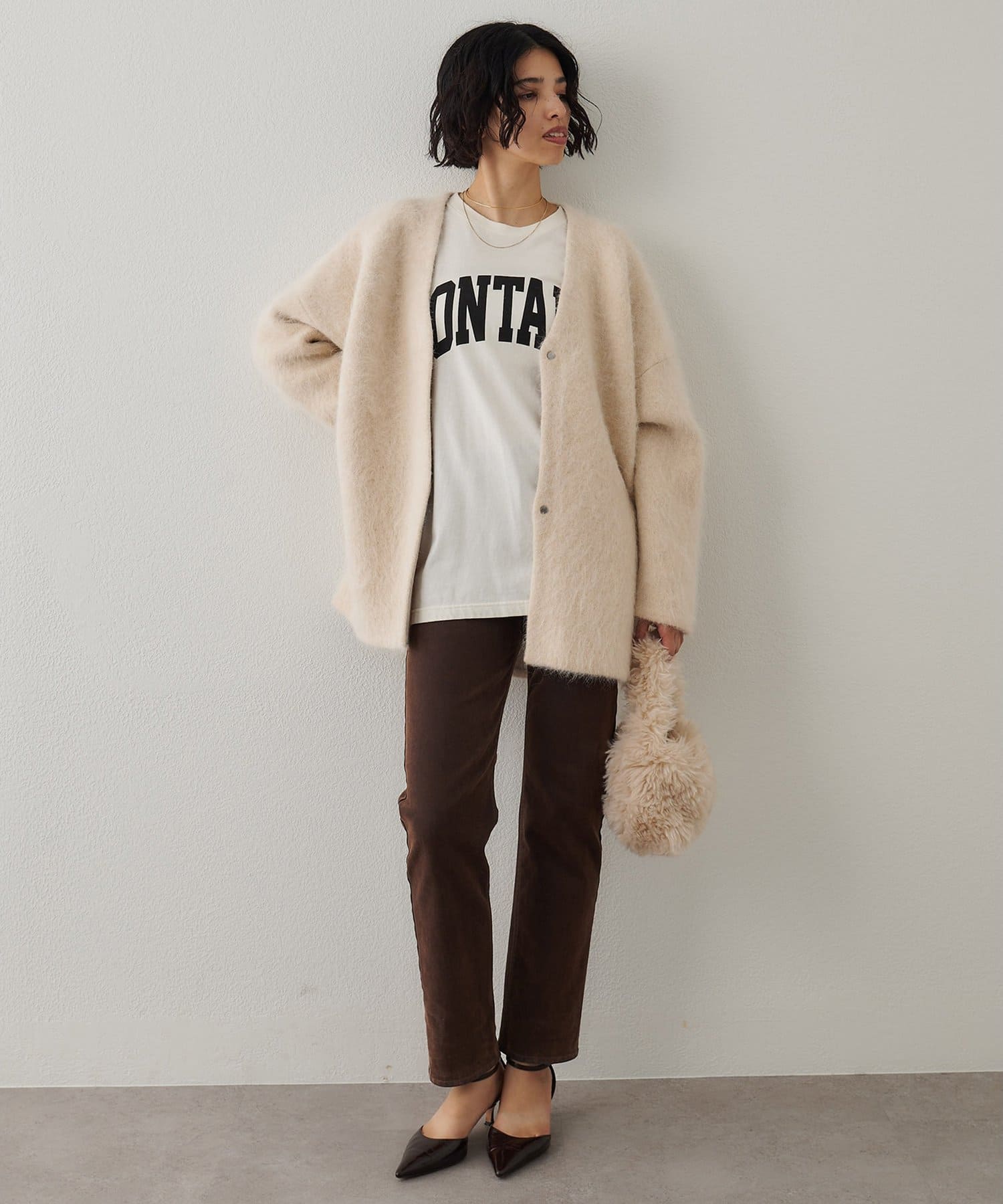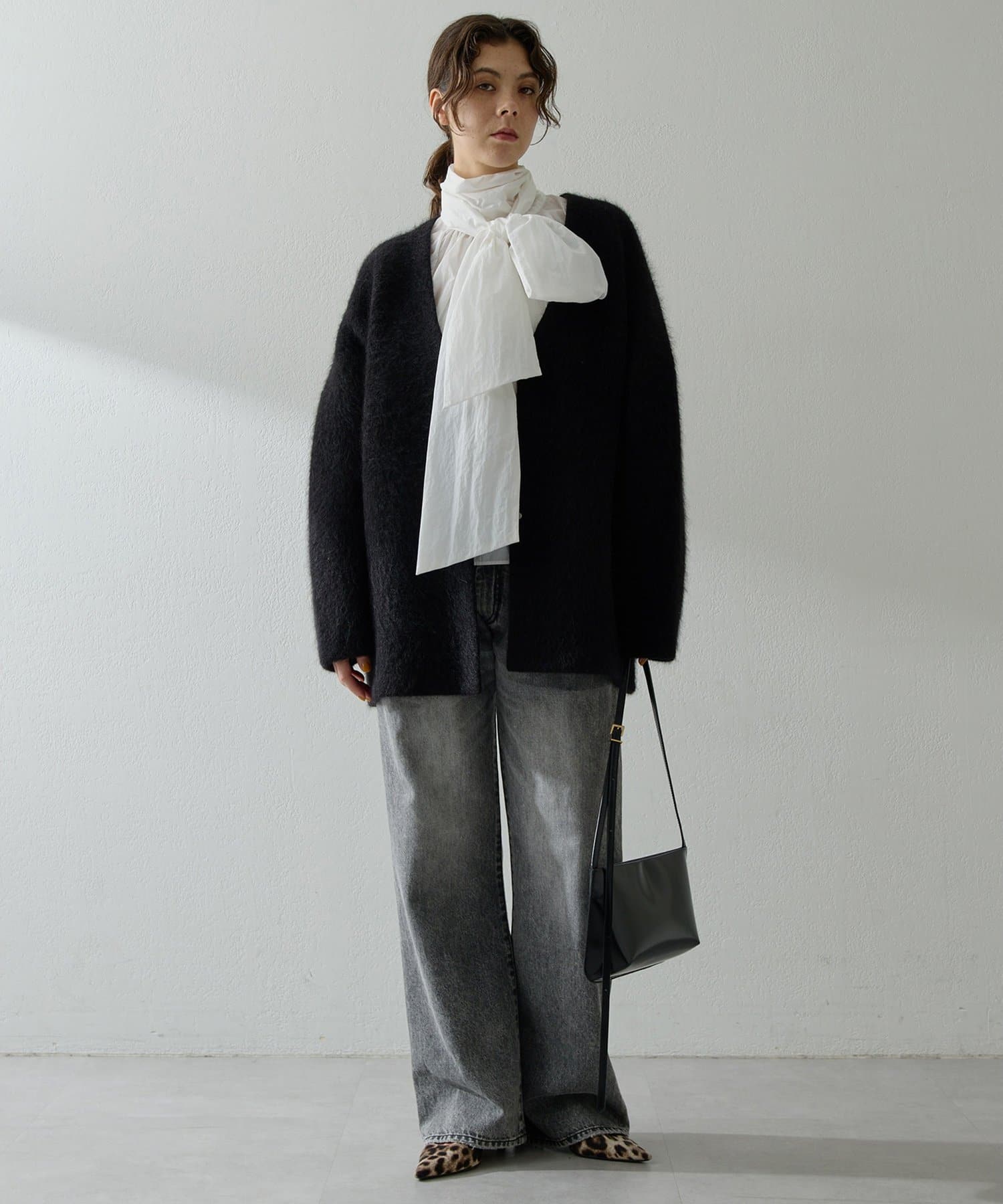 ■やや大きめのサイズ感や深くとったアームホール、バランスの取りやすいミドル丈で重ね着がしやすいのも◎。