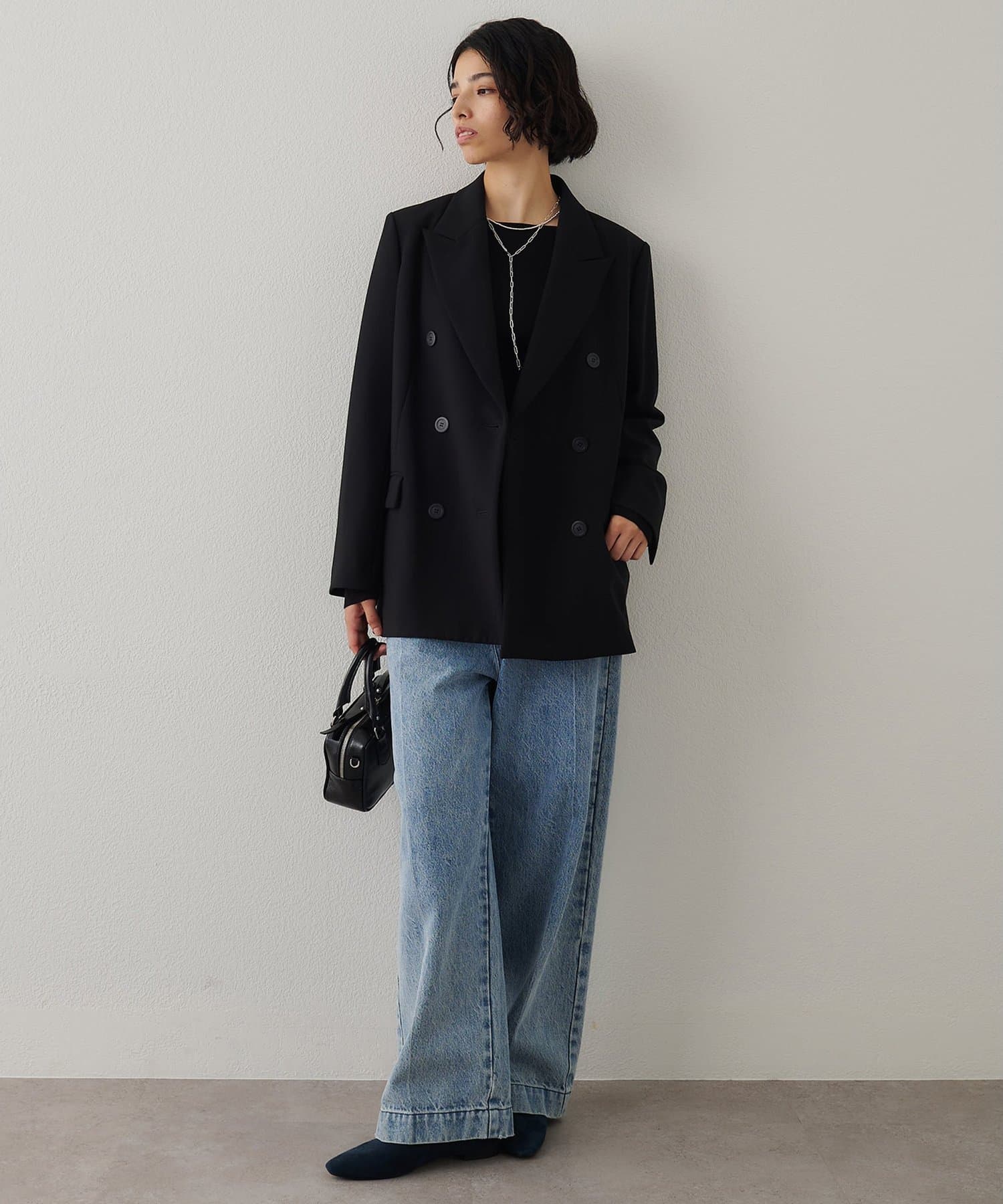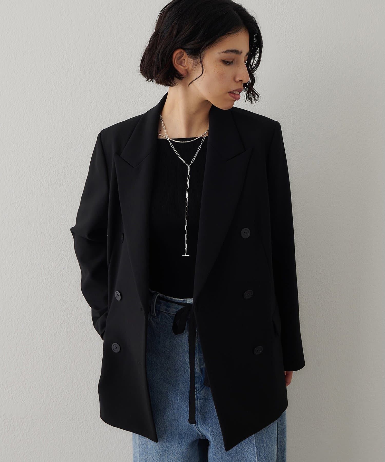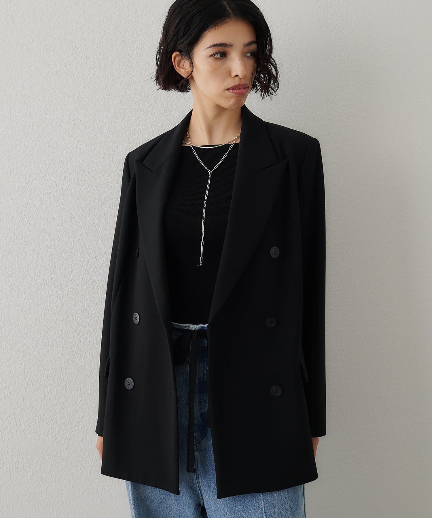 ■仕立て映えするボクシーなシルエットが魅力のダブルジャケット。