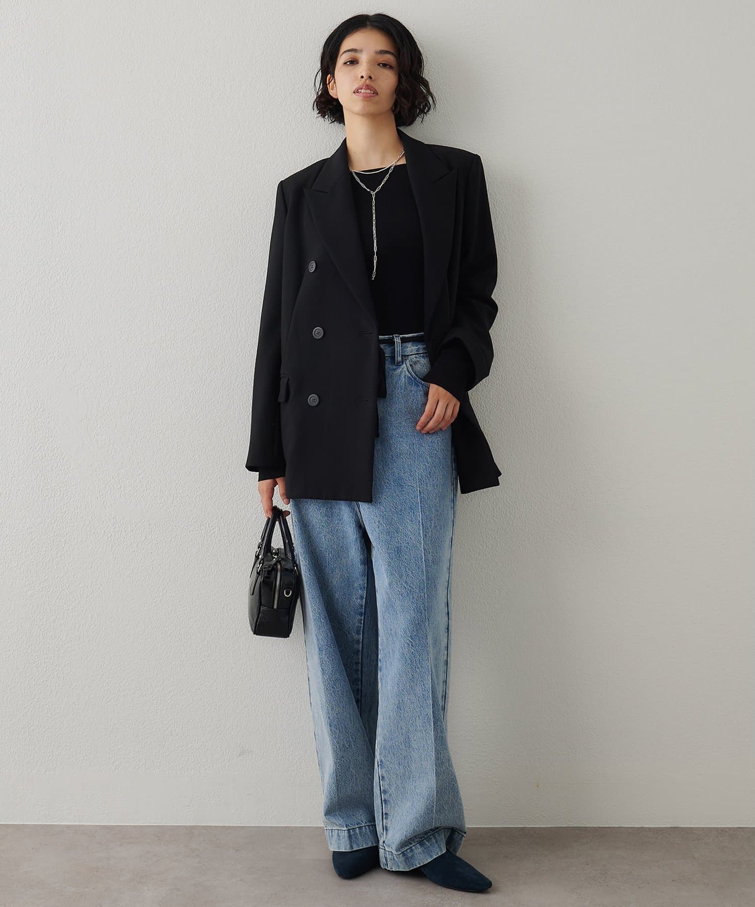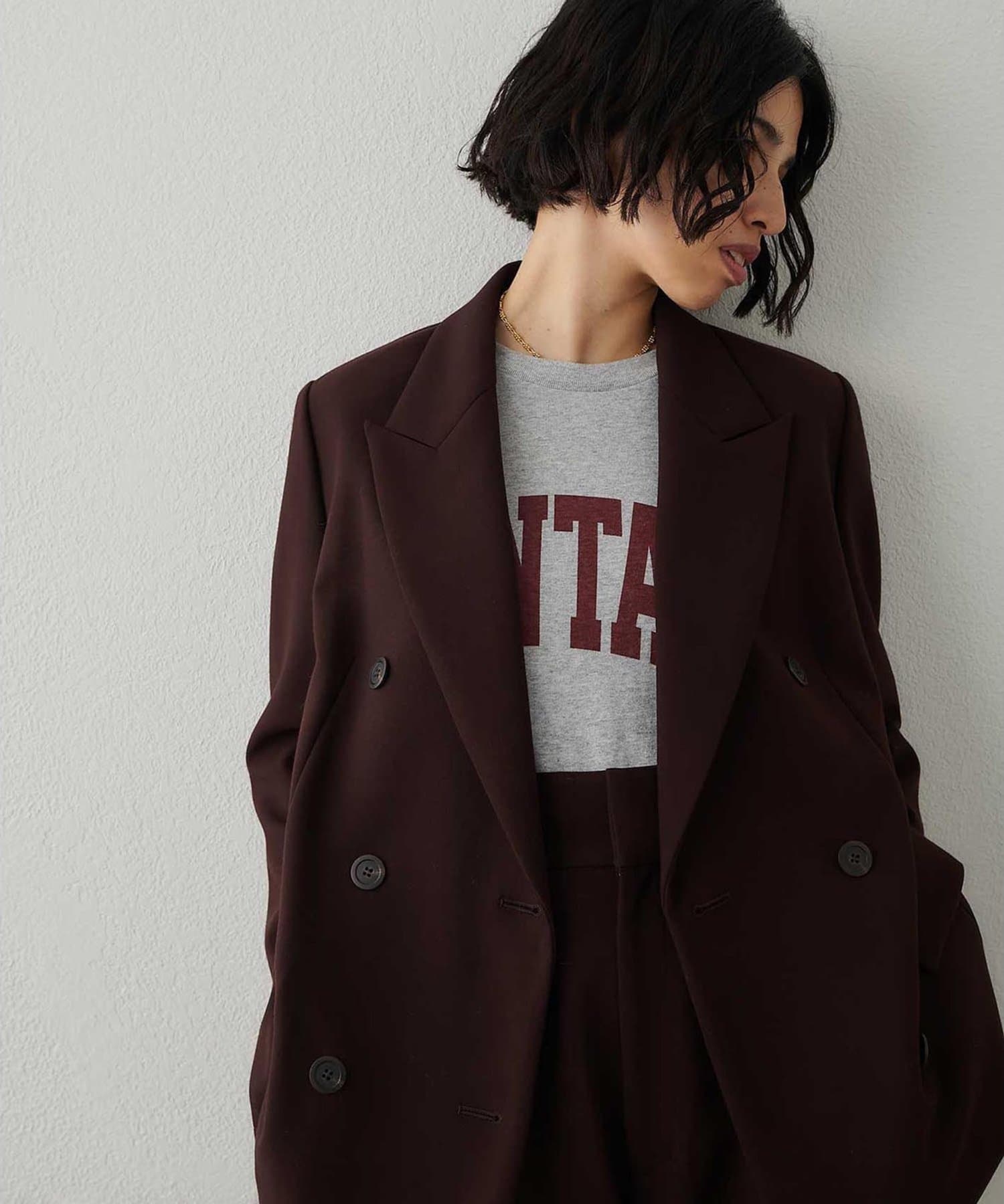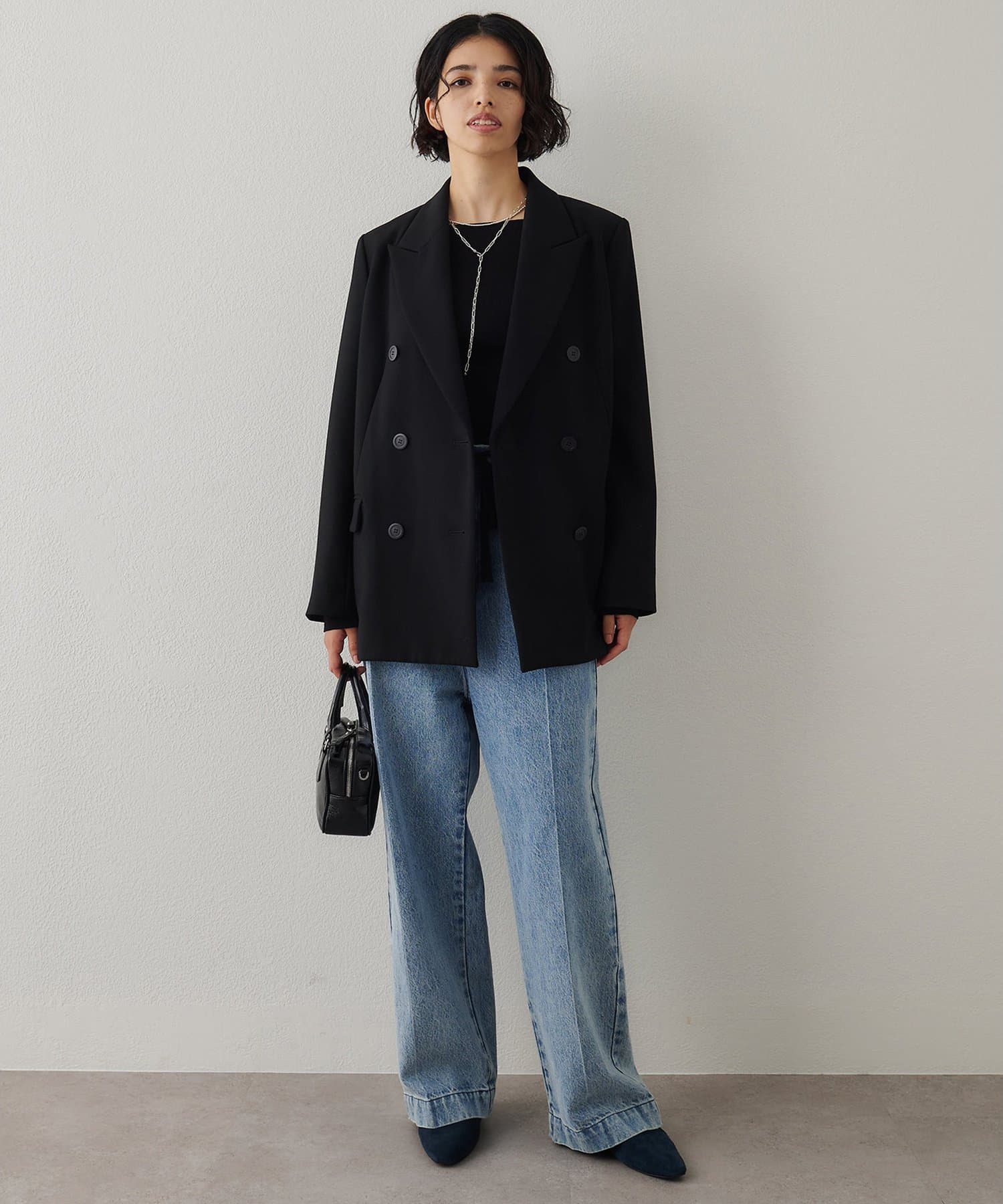 ■仕立て映えするボクシーなシルエットが魅力のダブルジャケット。