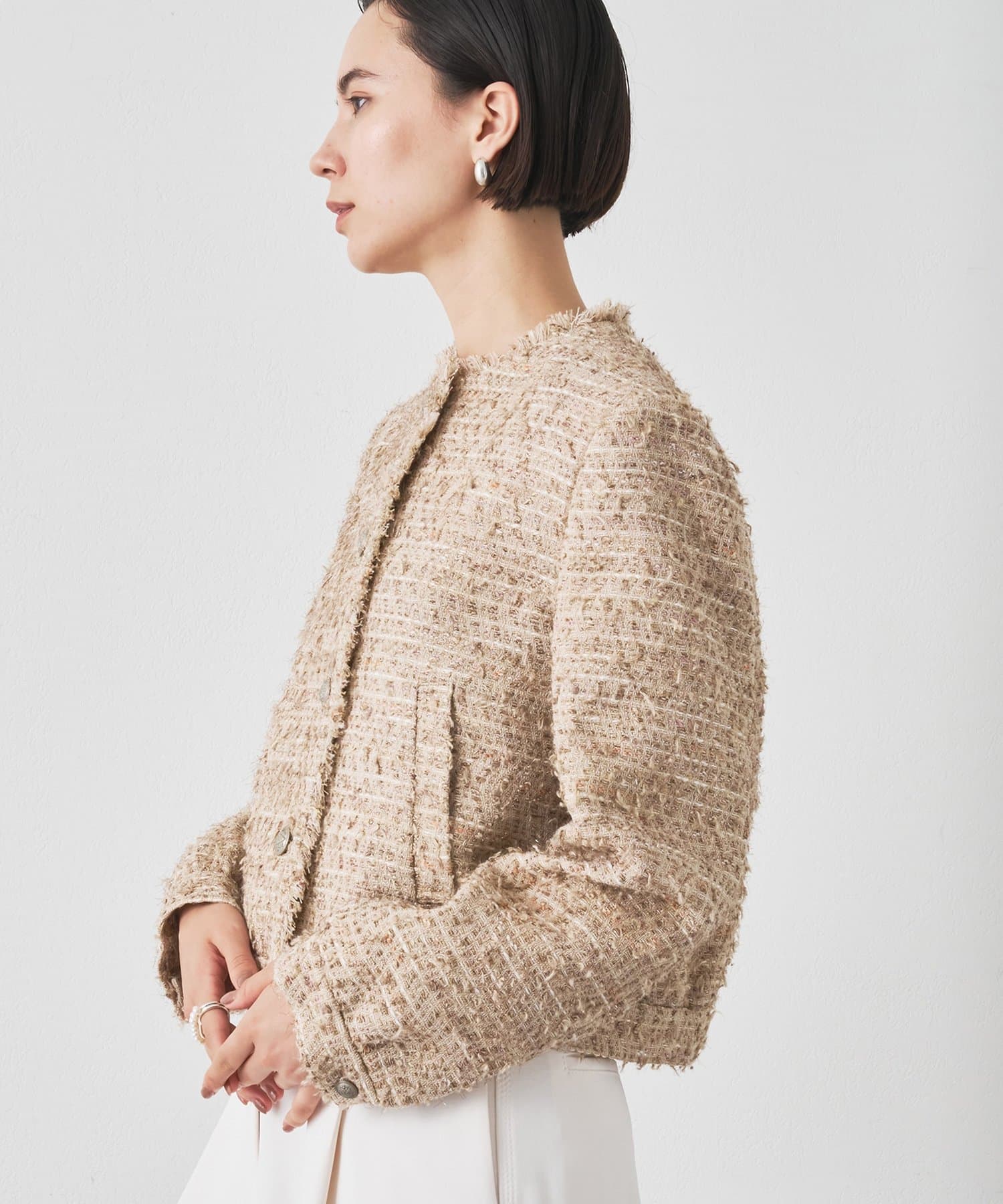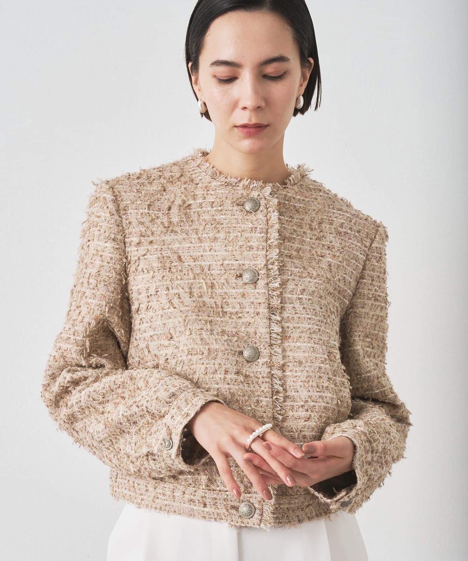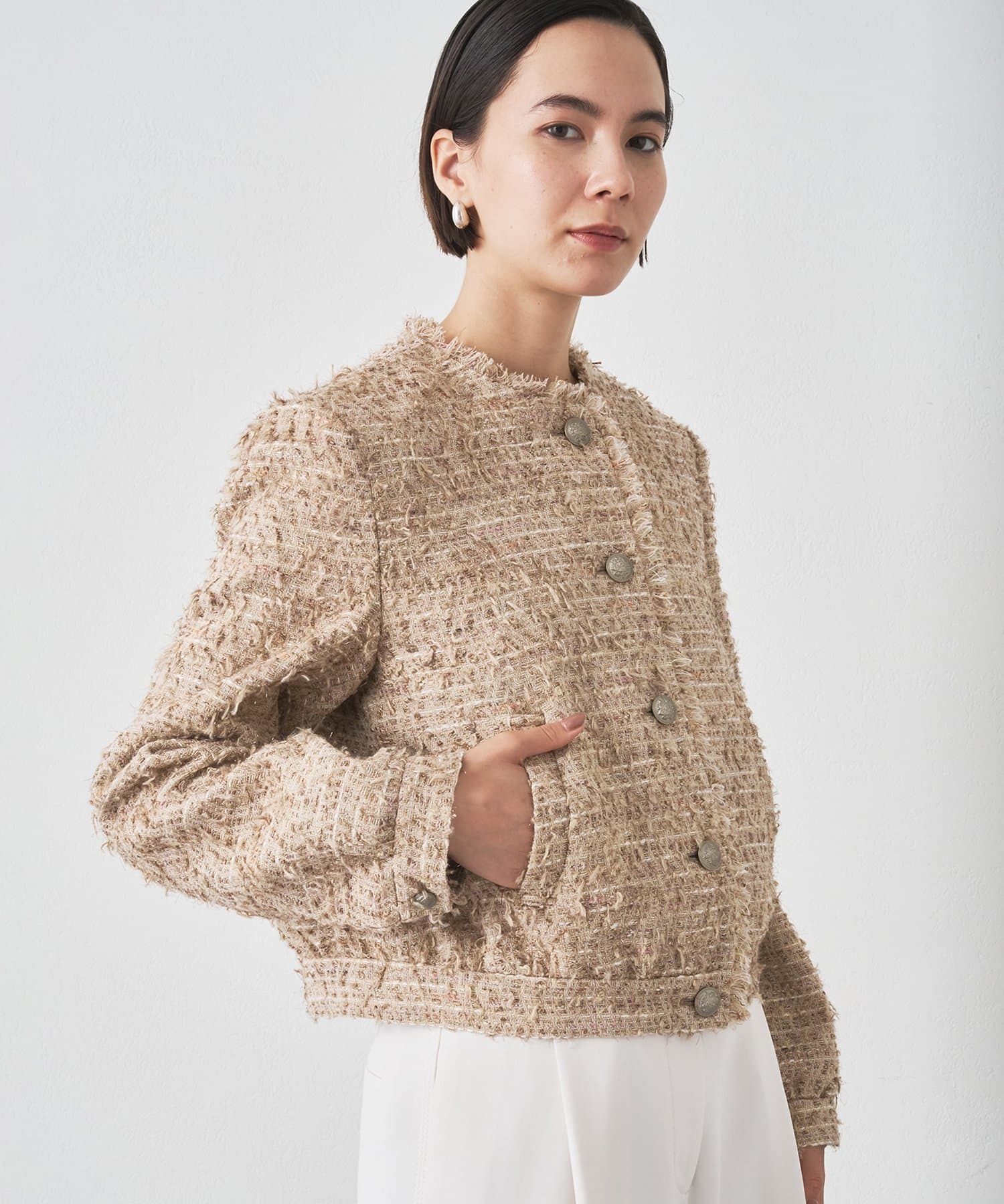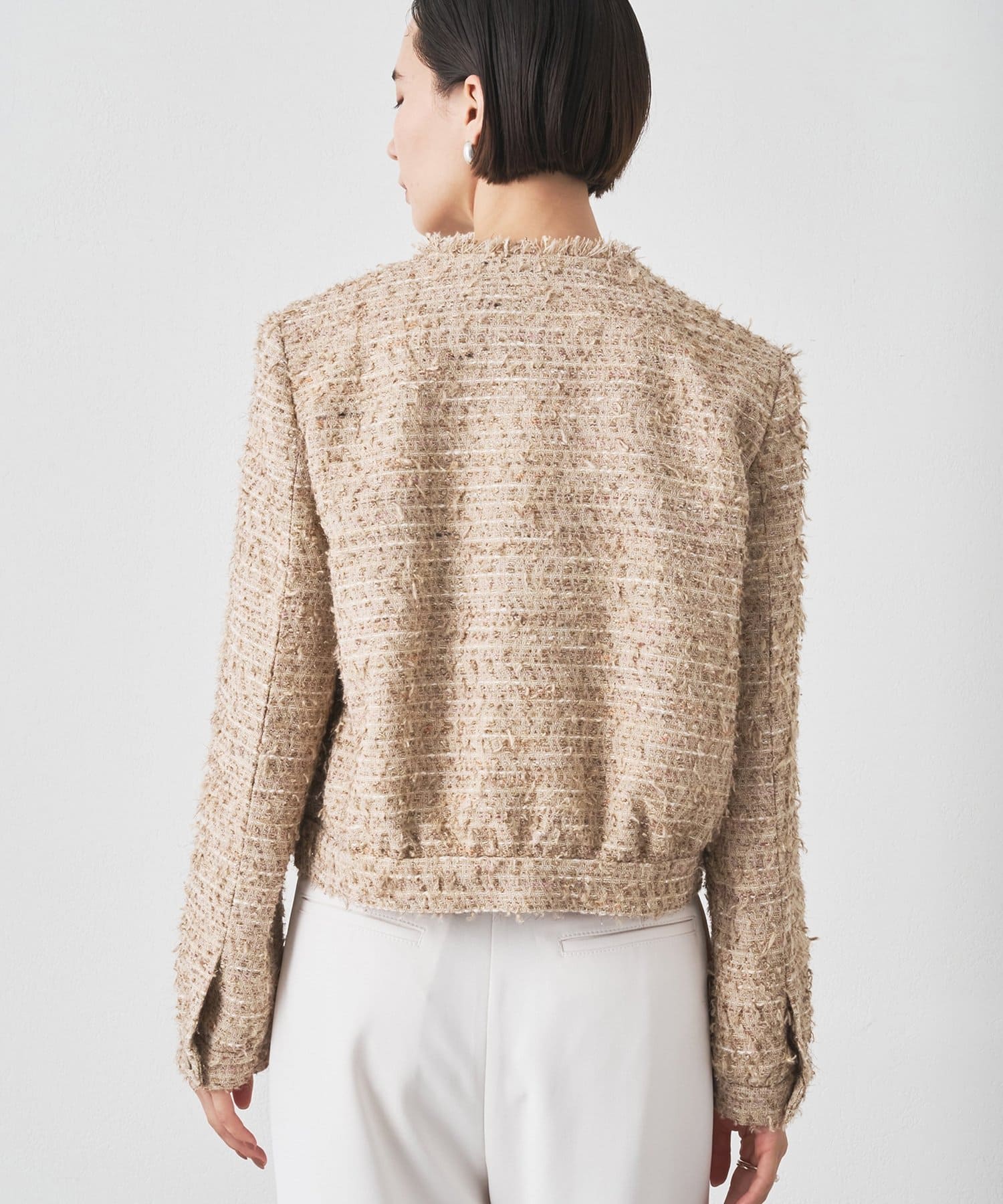 ■LINTON社のツイード生地を使用した華やかなブルゾンジャケット。