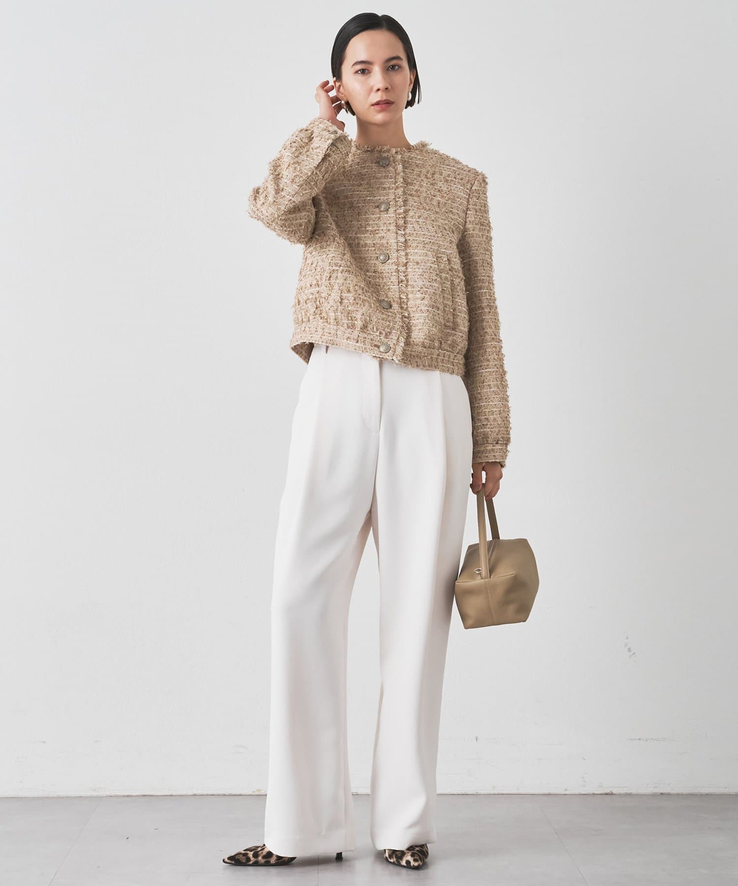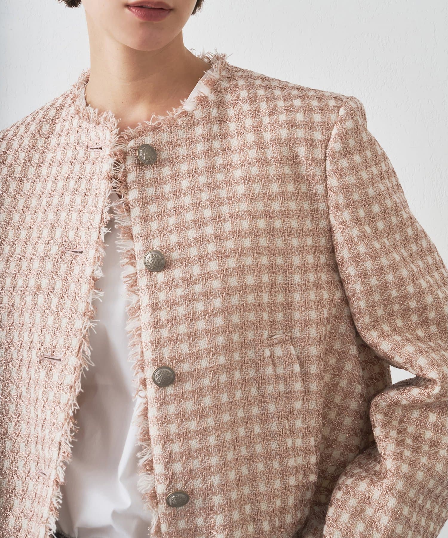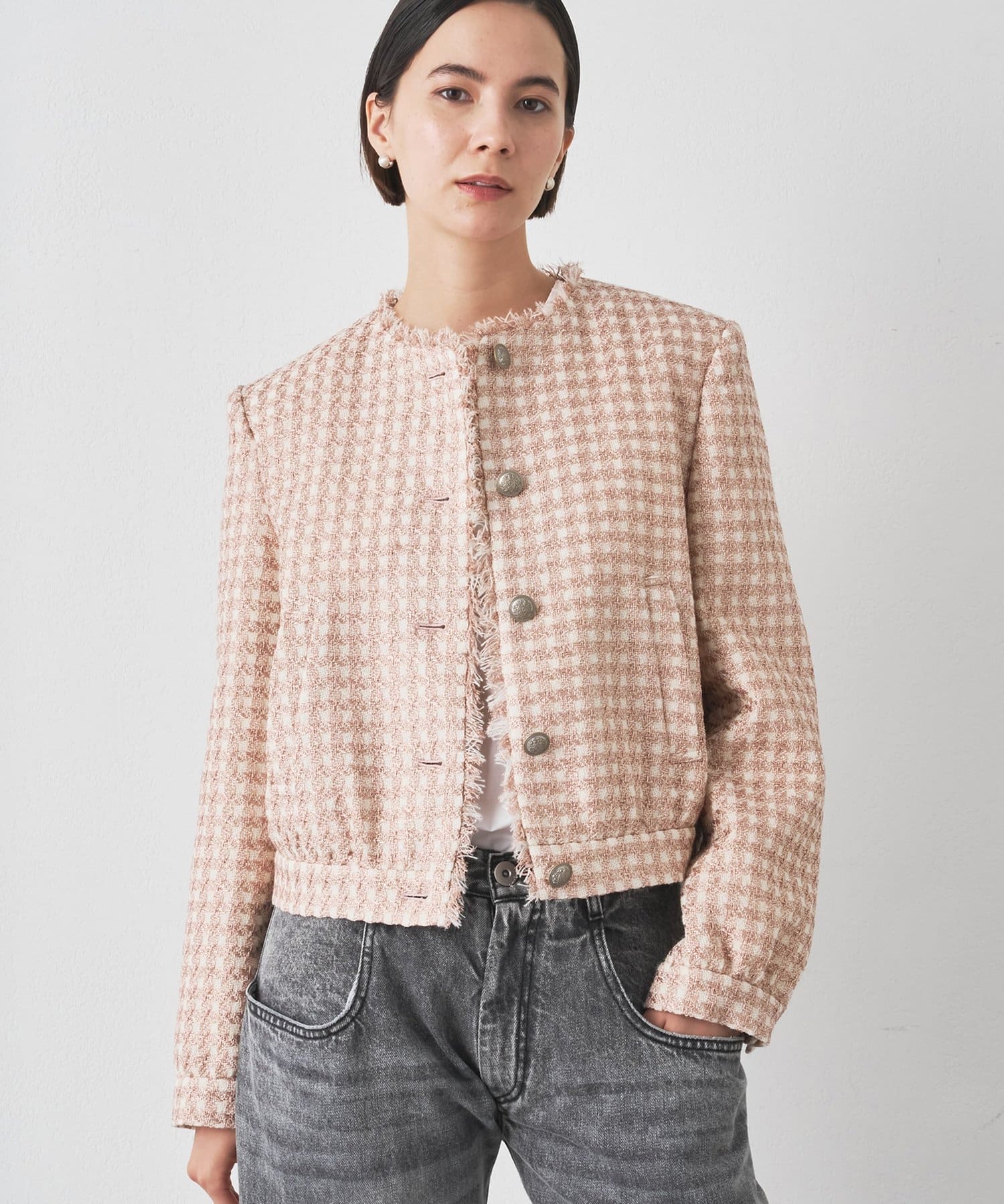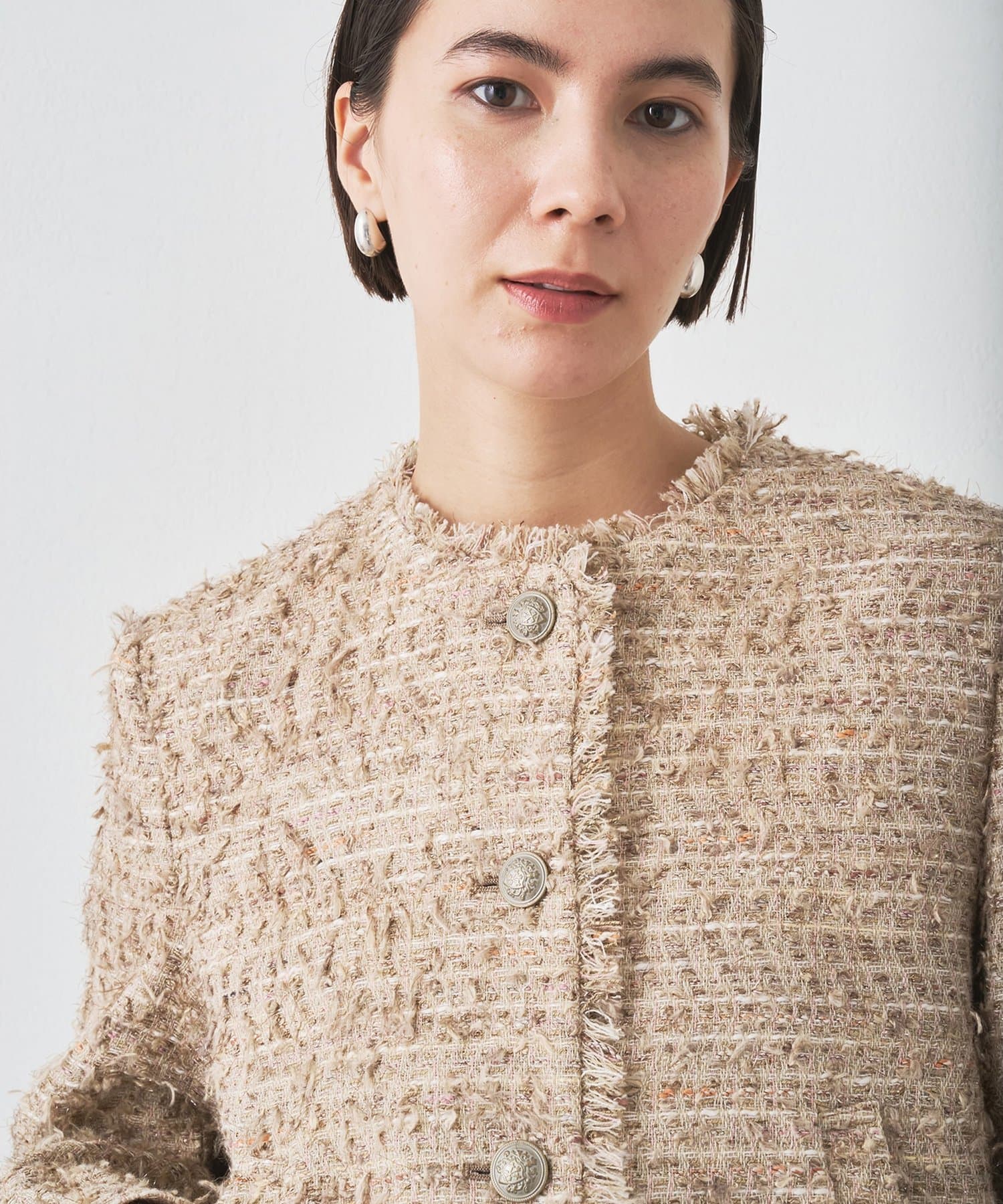 ■LINTON社のツイード生地を使用した華やかなブルゾンジャケット。