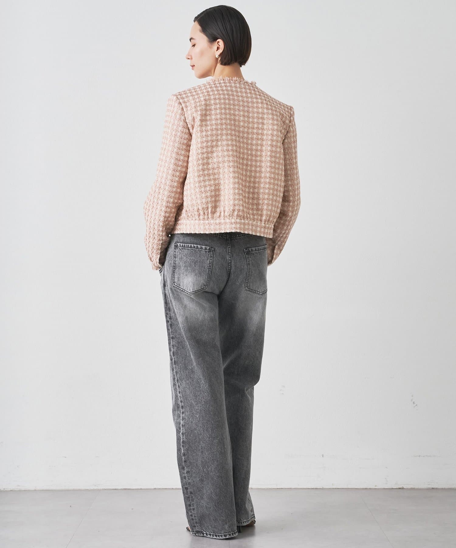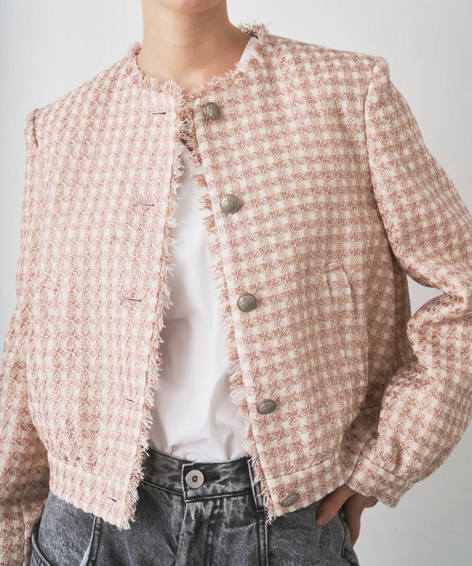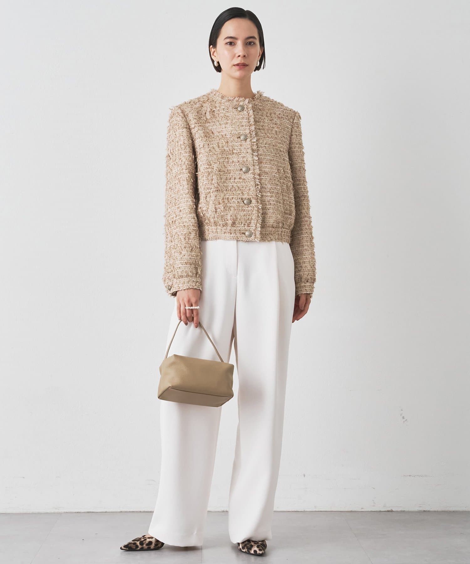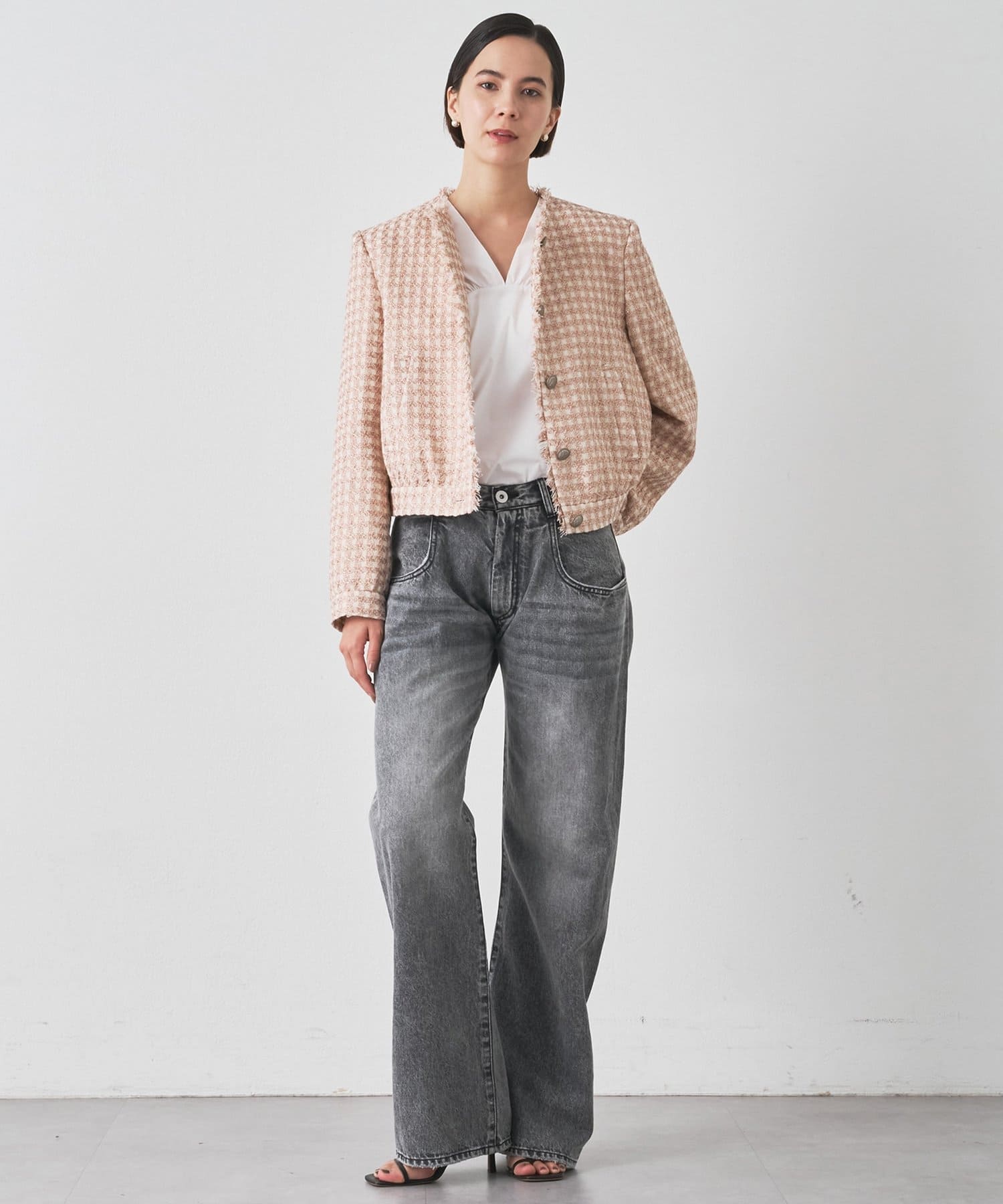 ■LINTON社のツイード生地を使用した華やかなブルゾンジャケット。