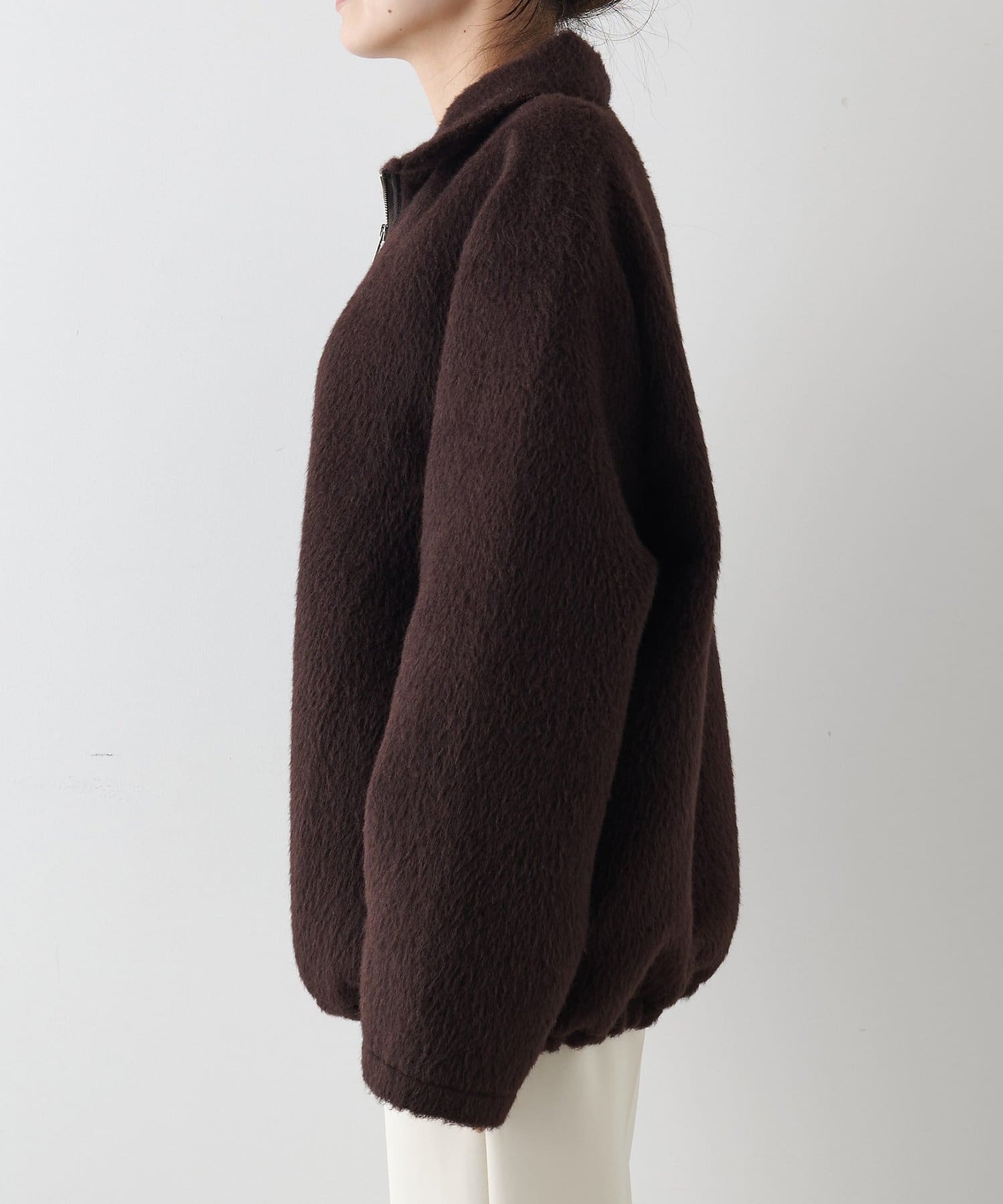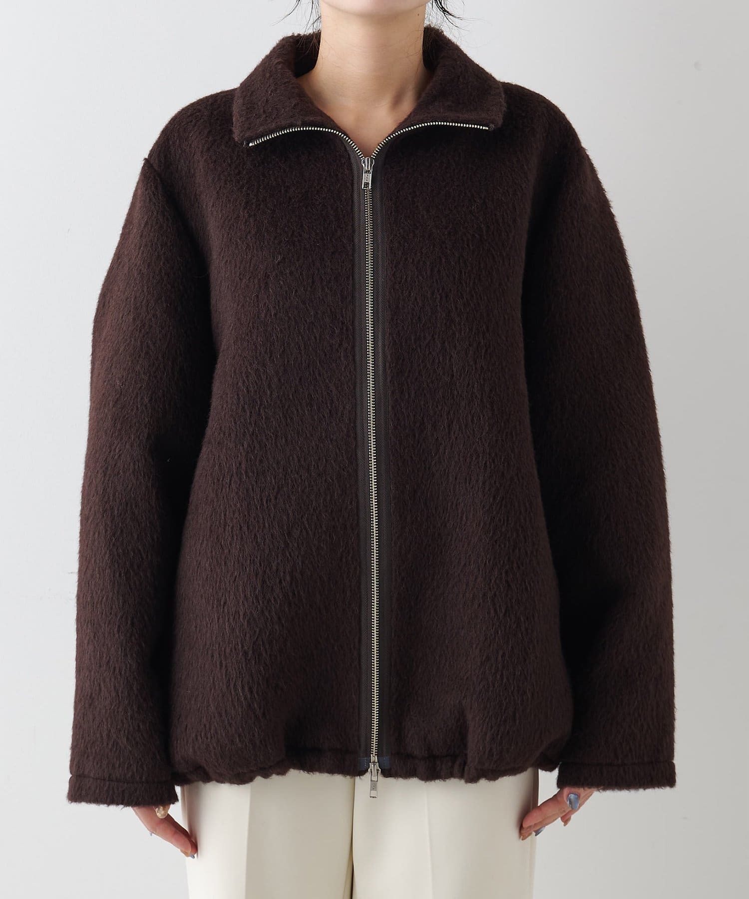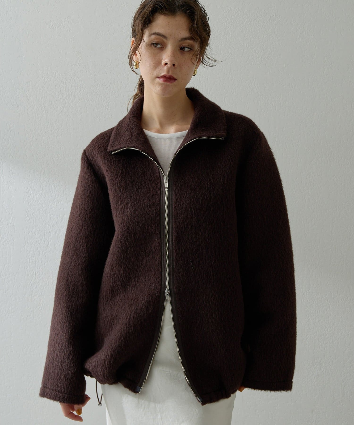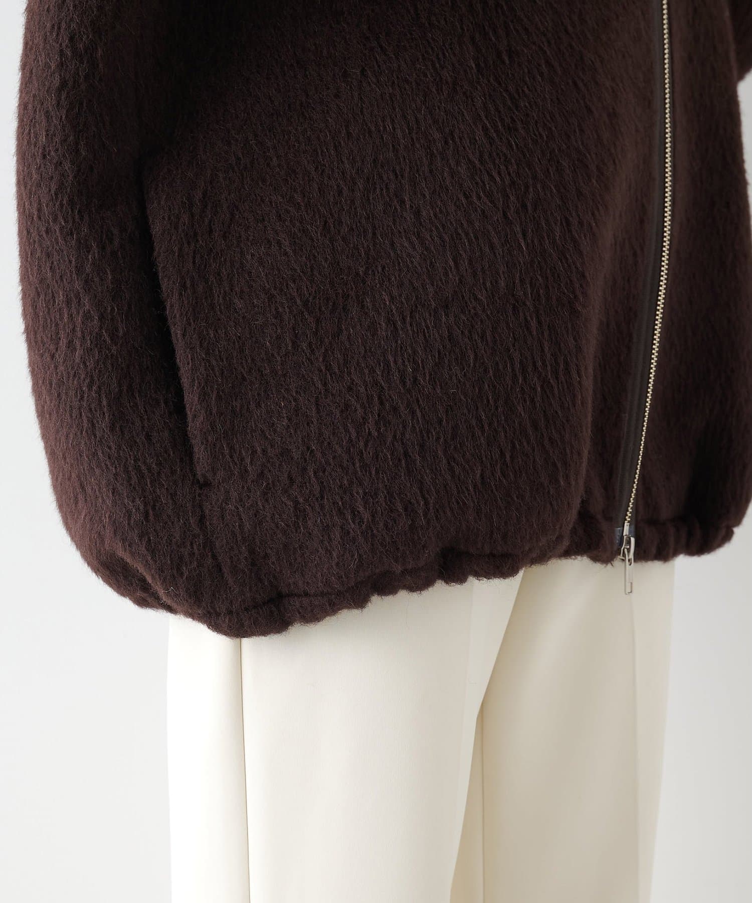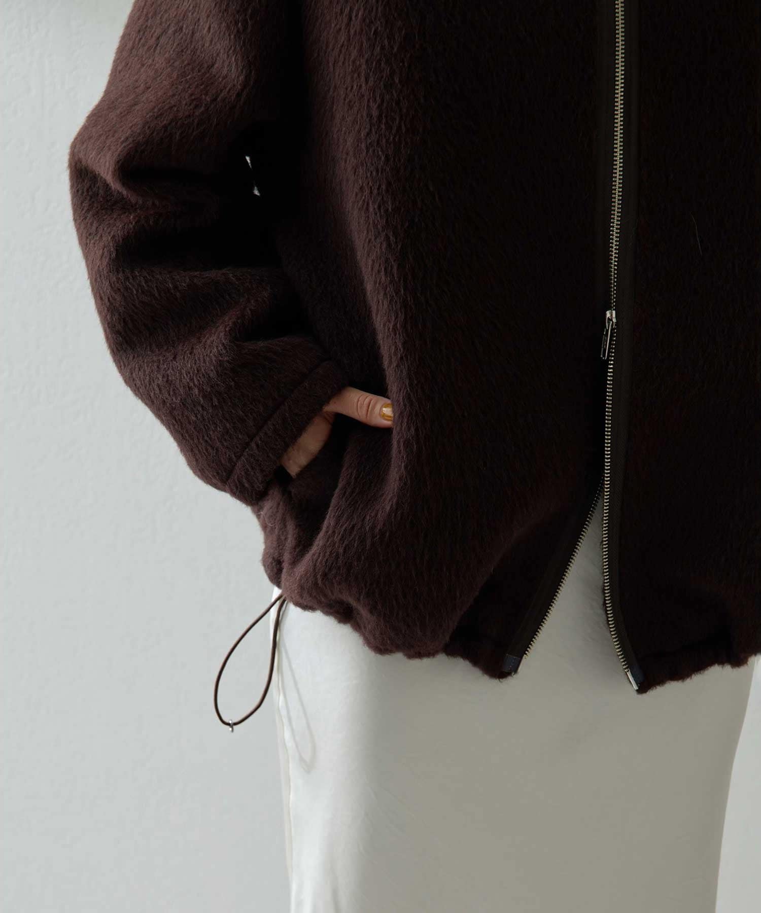 ■アルパカ高混率の素材を贅沢に使用したジップアップブルゾン。