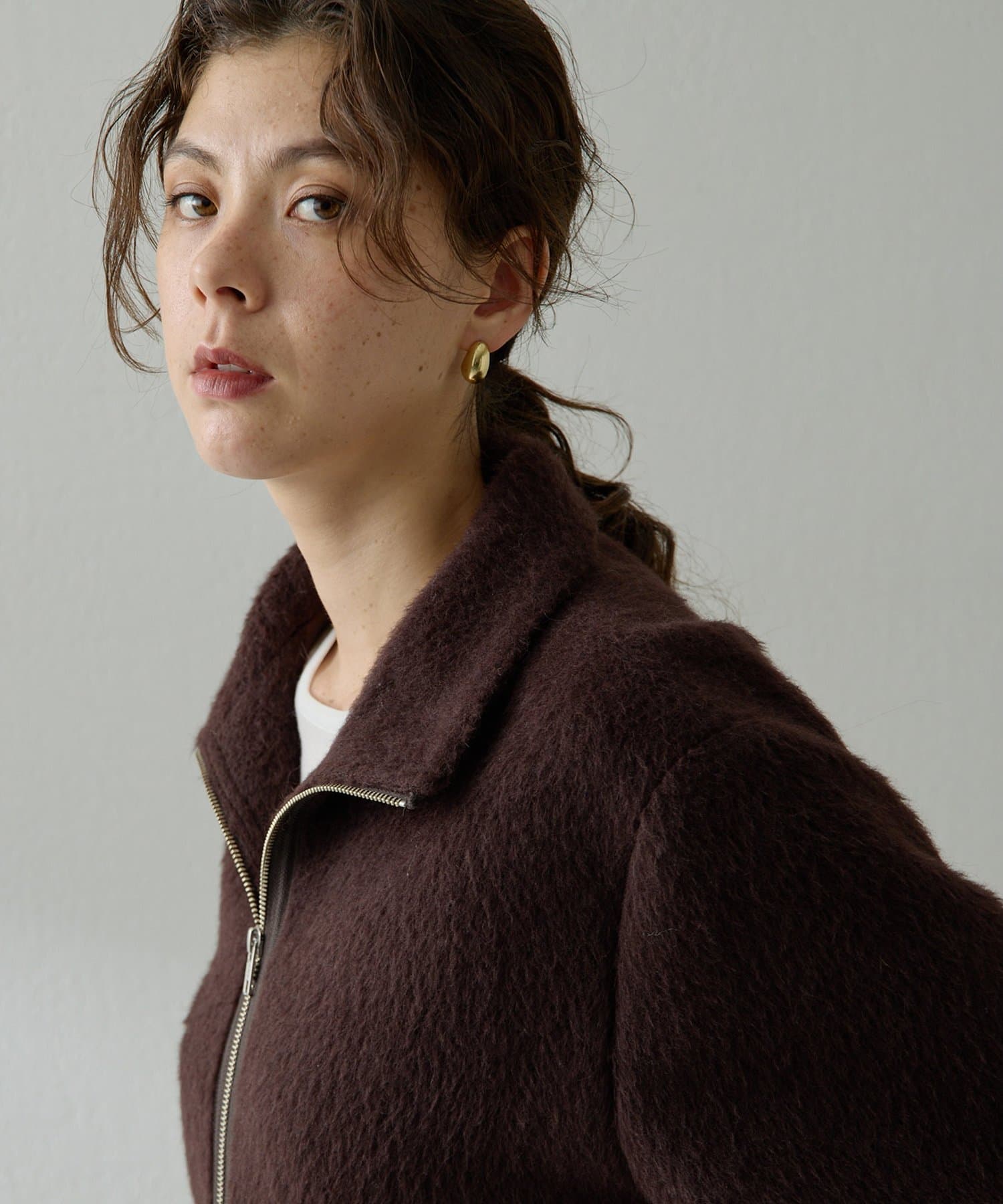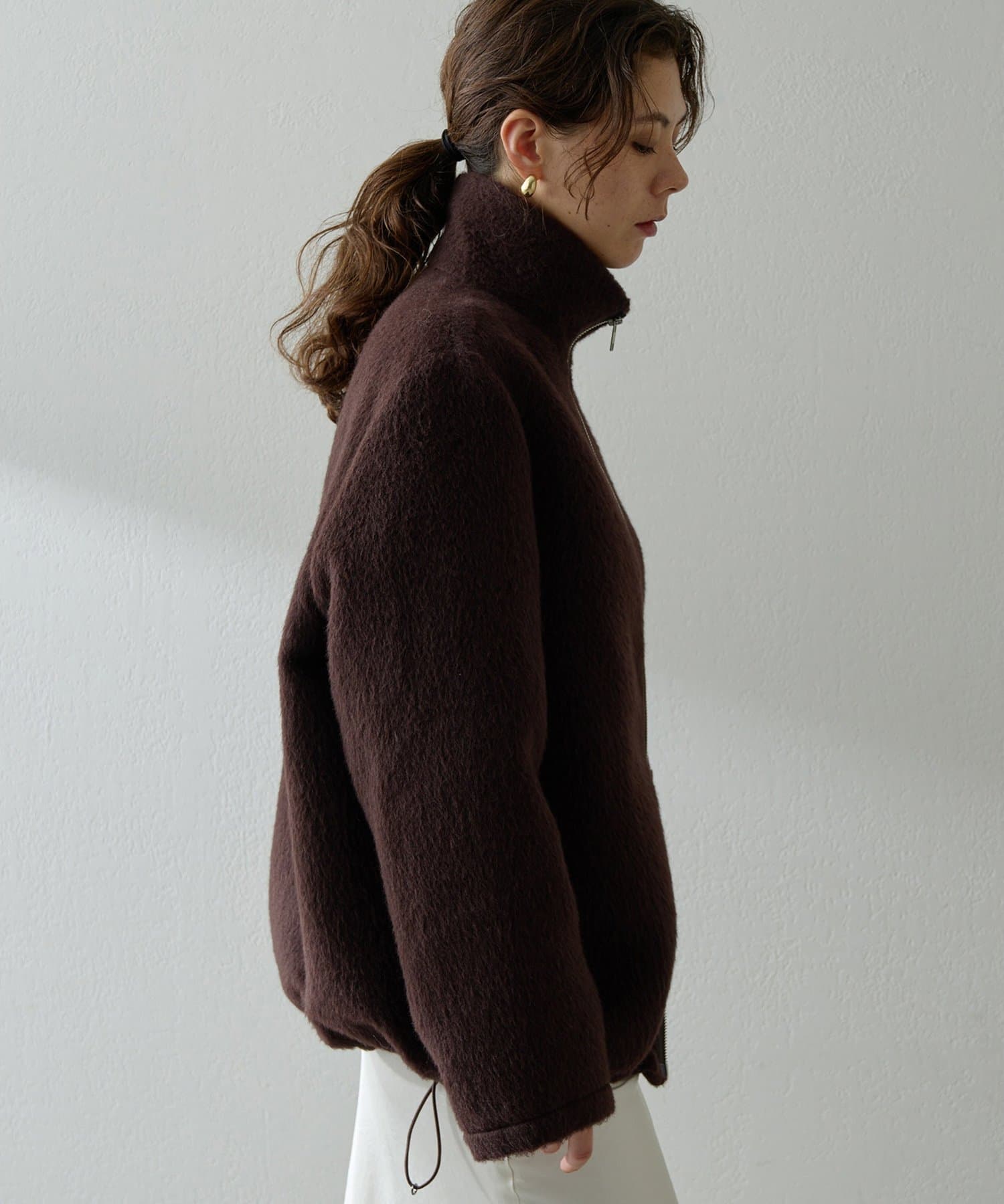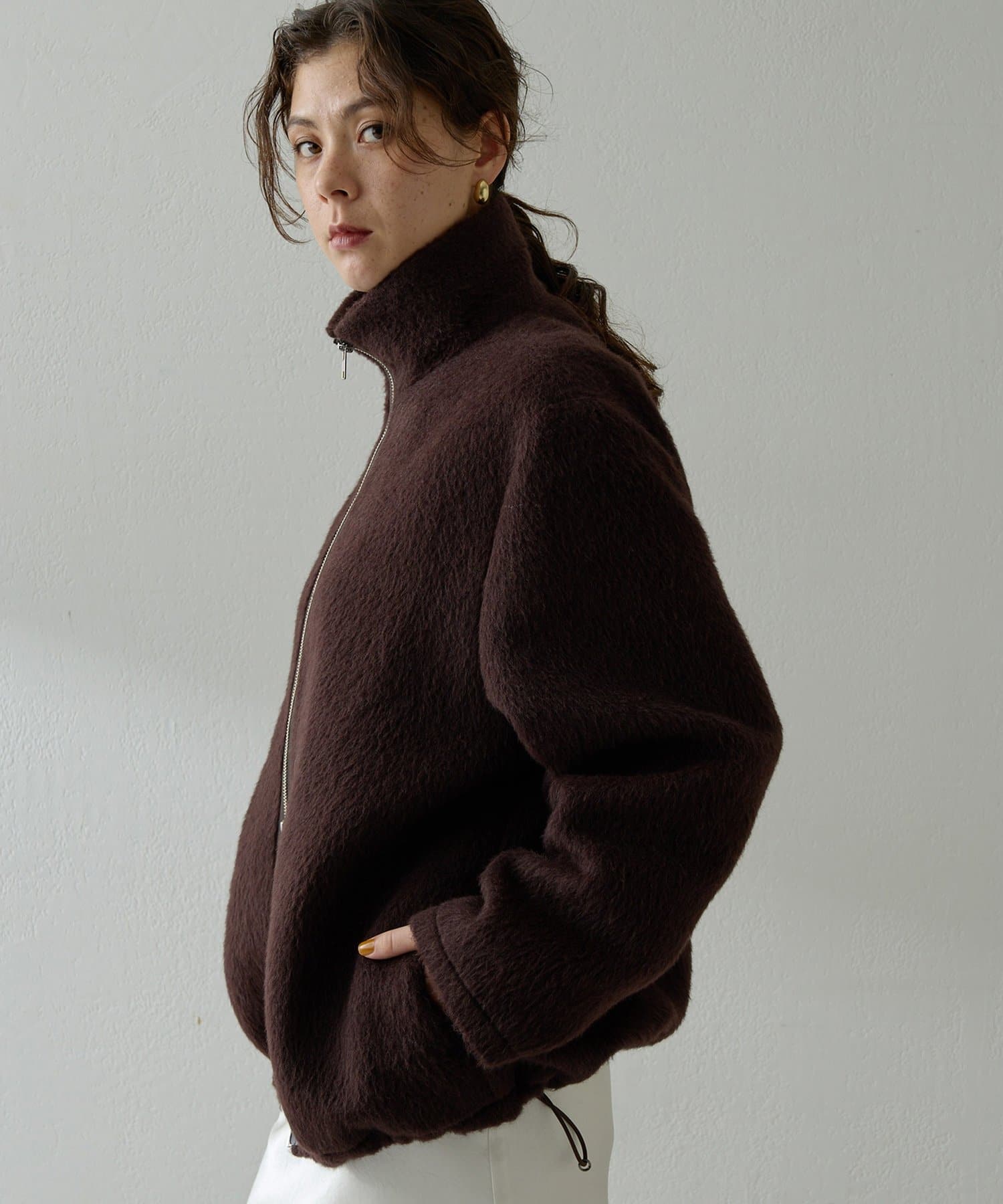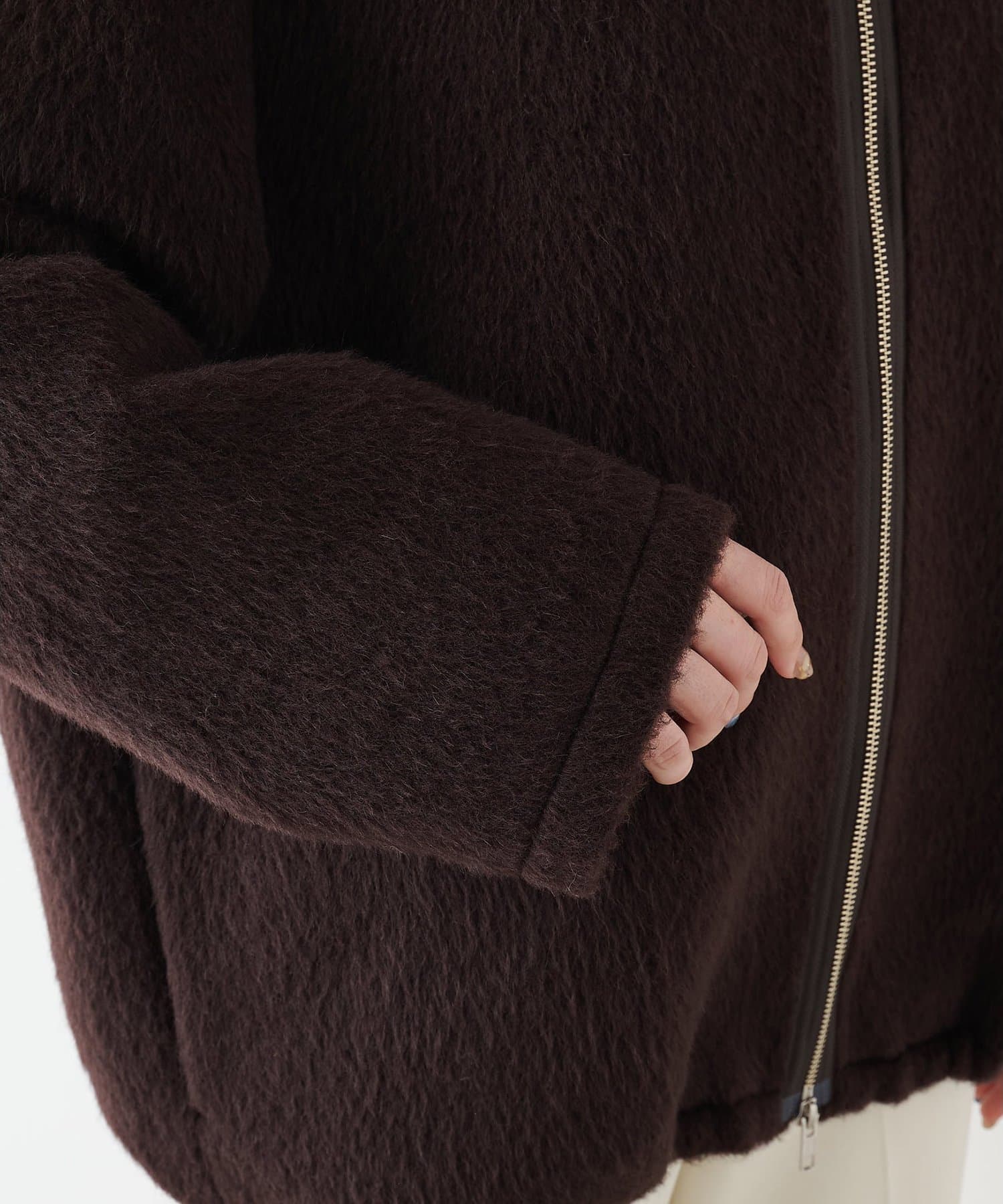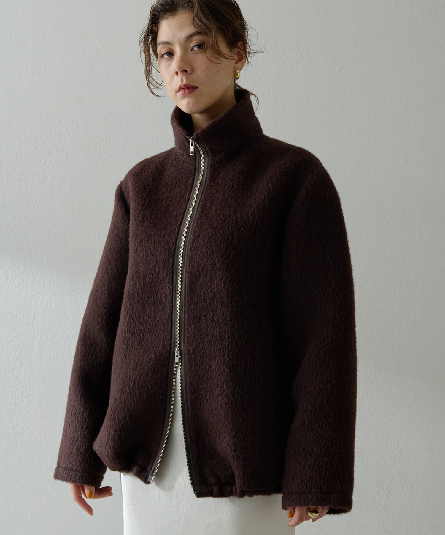 ■アルパカ高混率の素材を贅沢に使用したジップアップブルゾン。