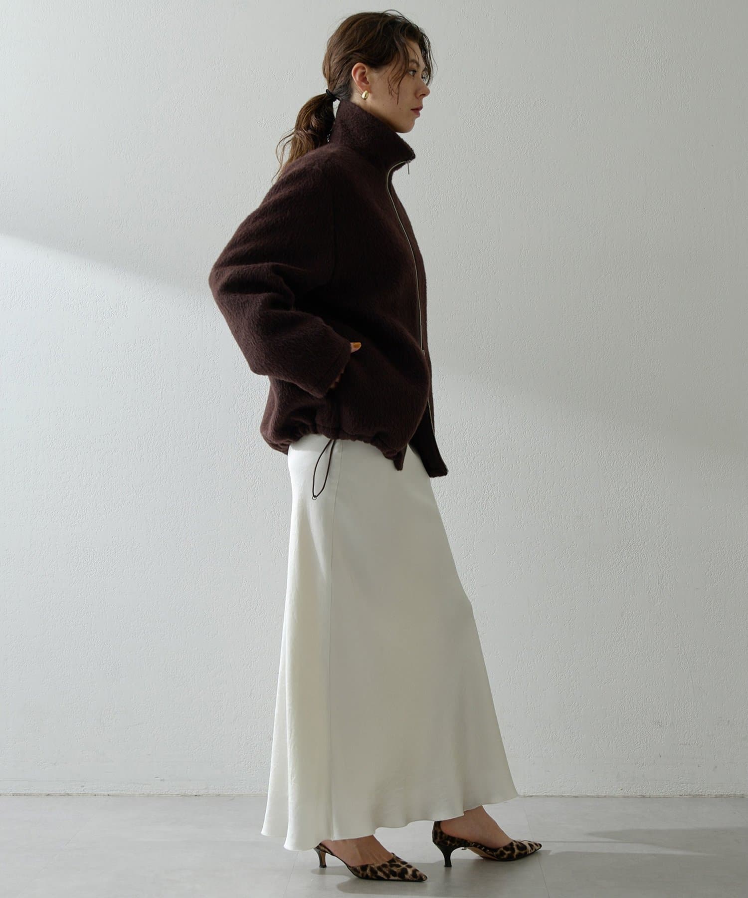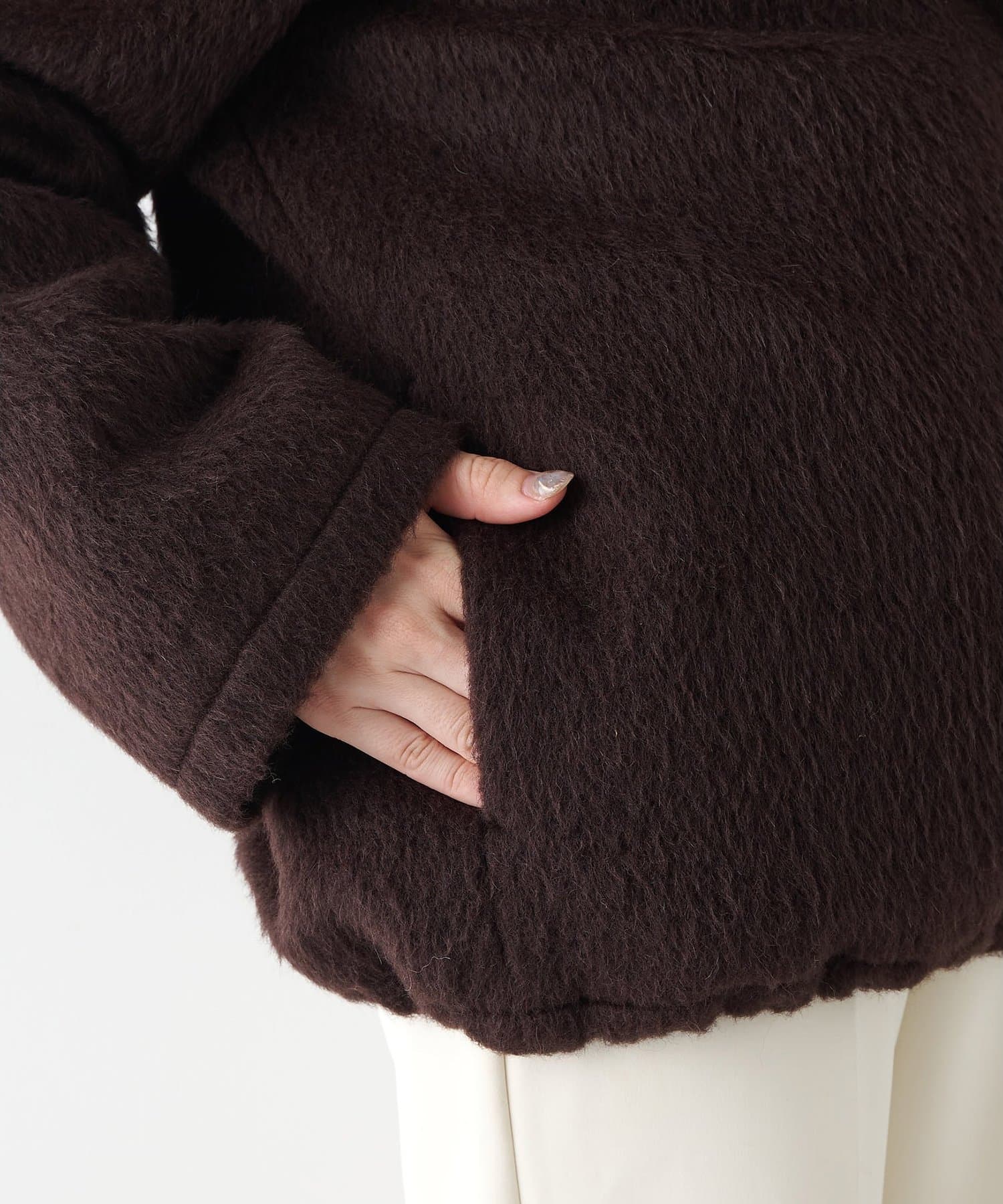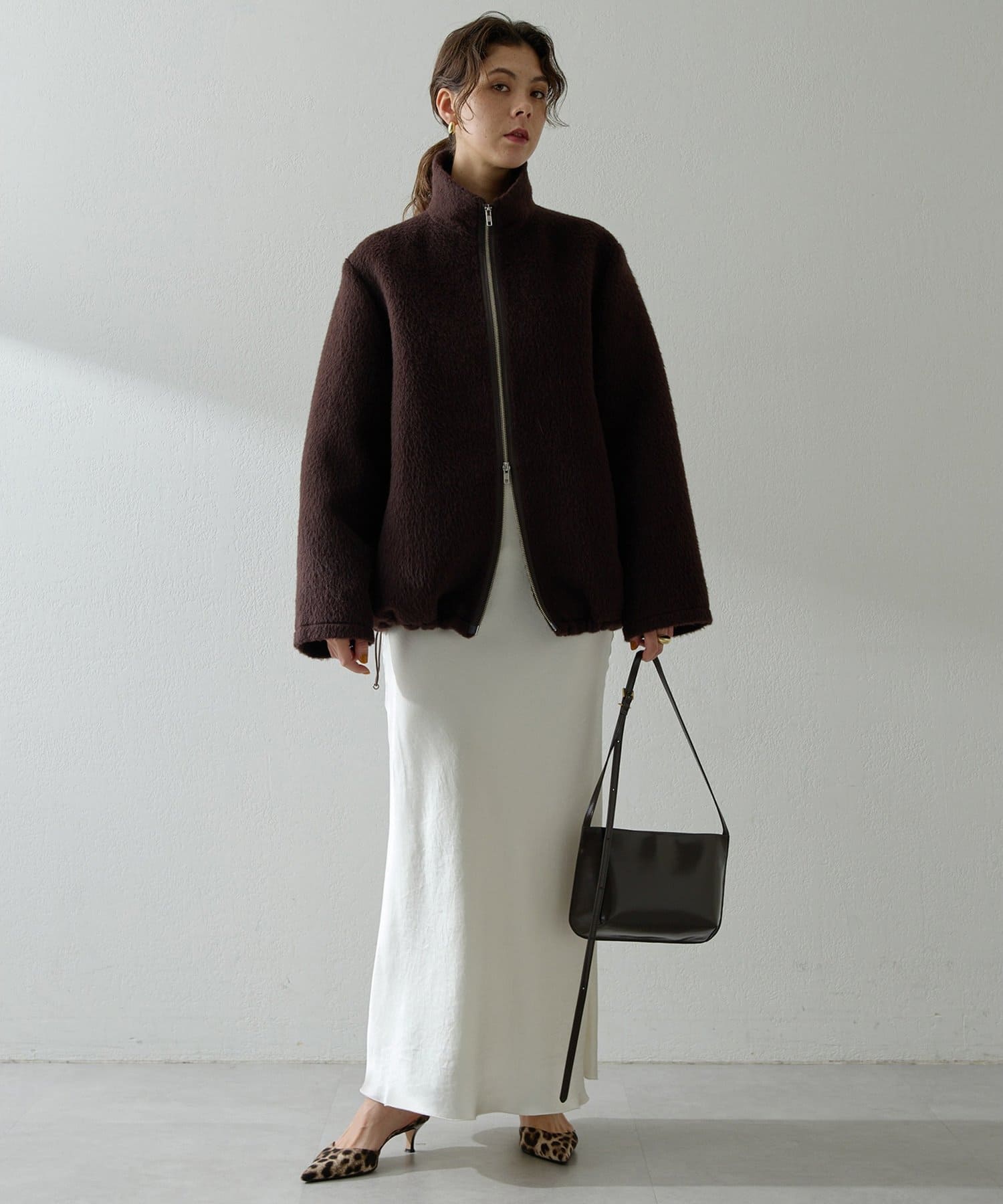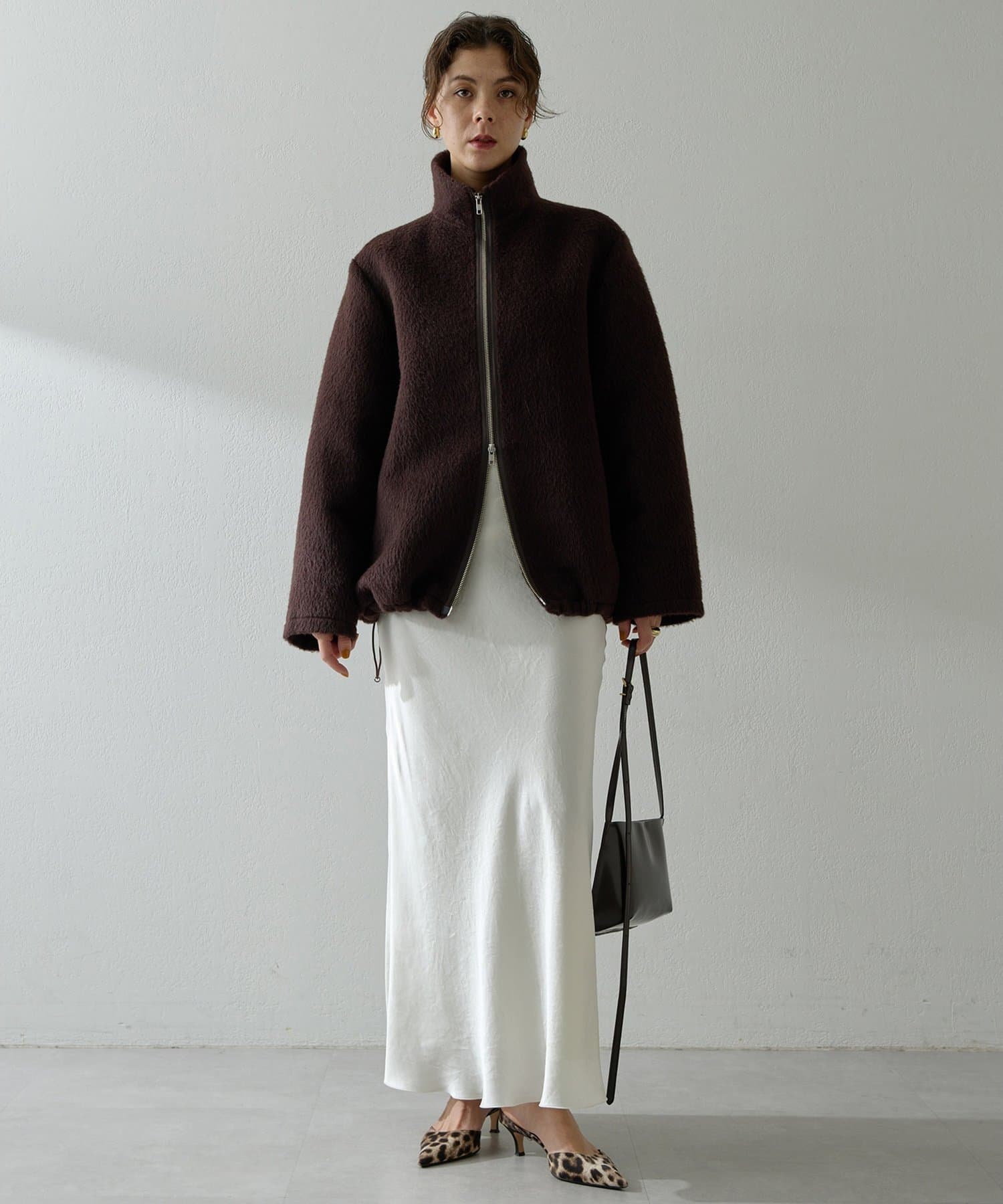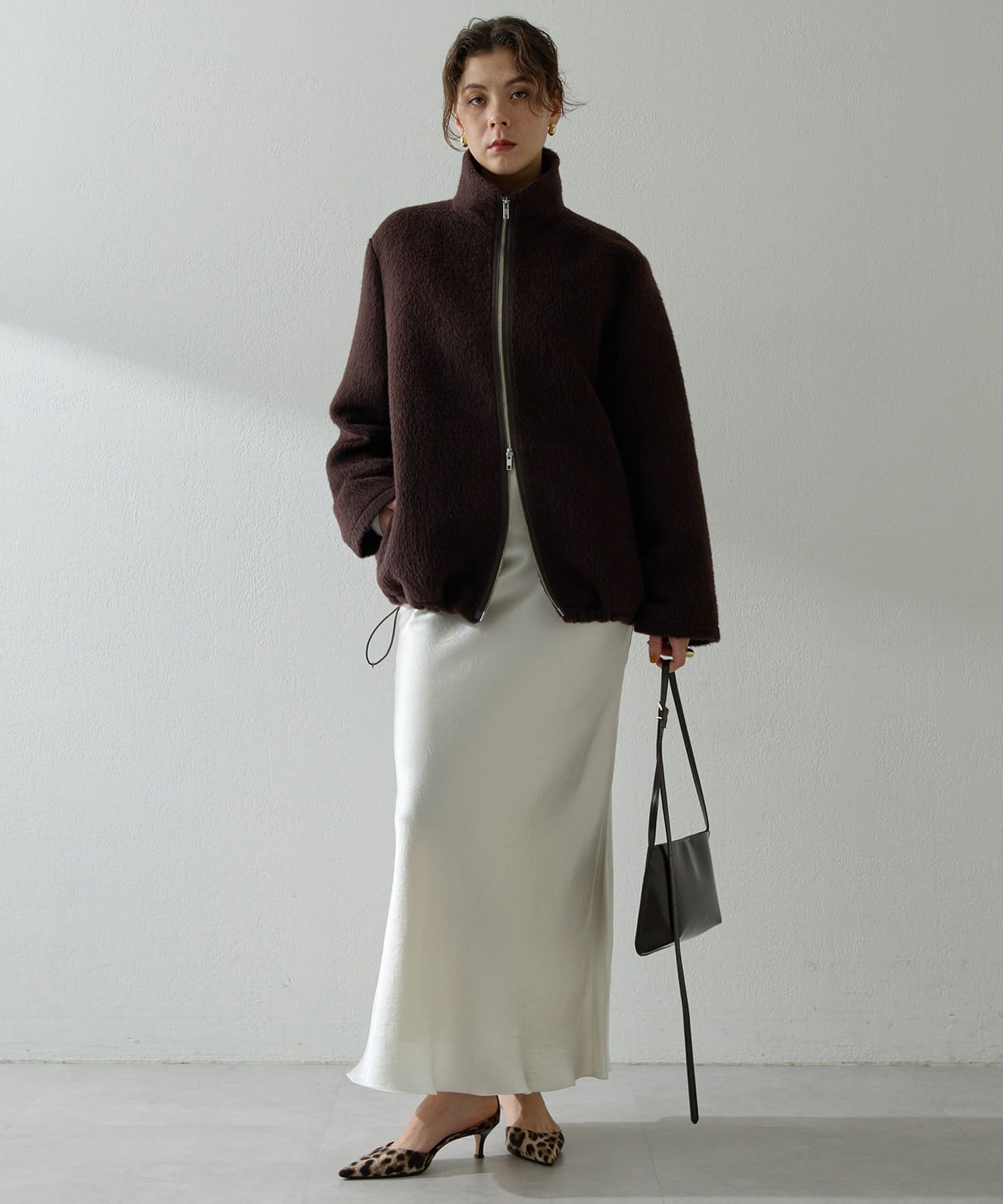 ■アルパカ高混率の素材を贅沢に使用したジップアップブルゾン。