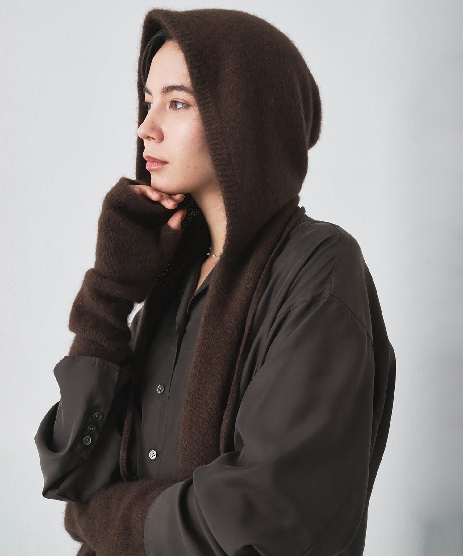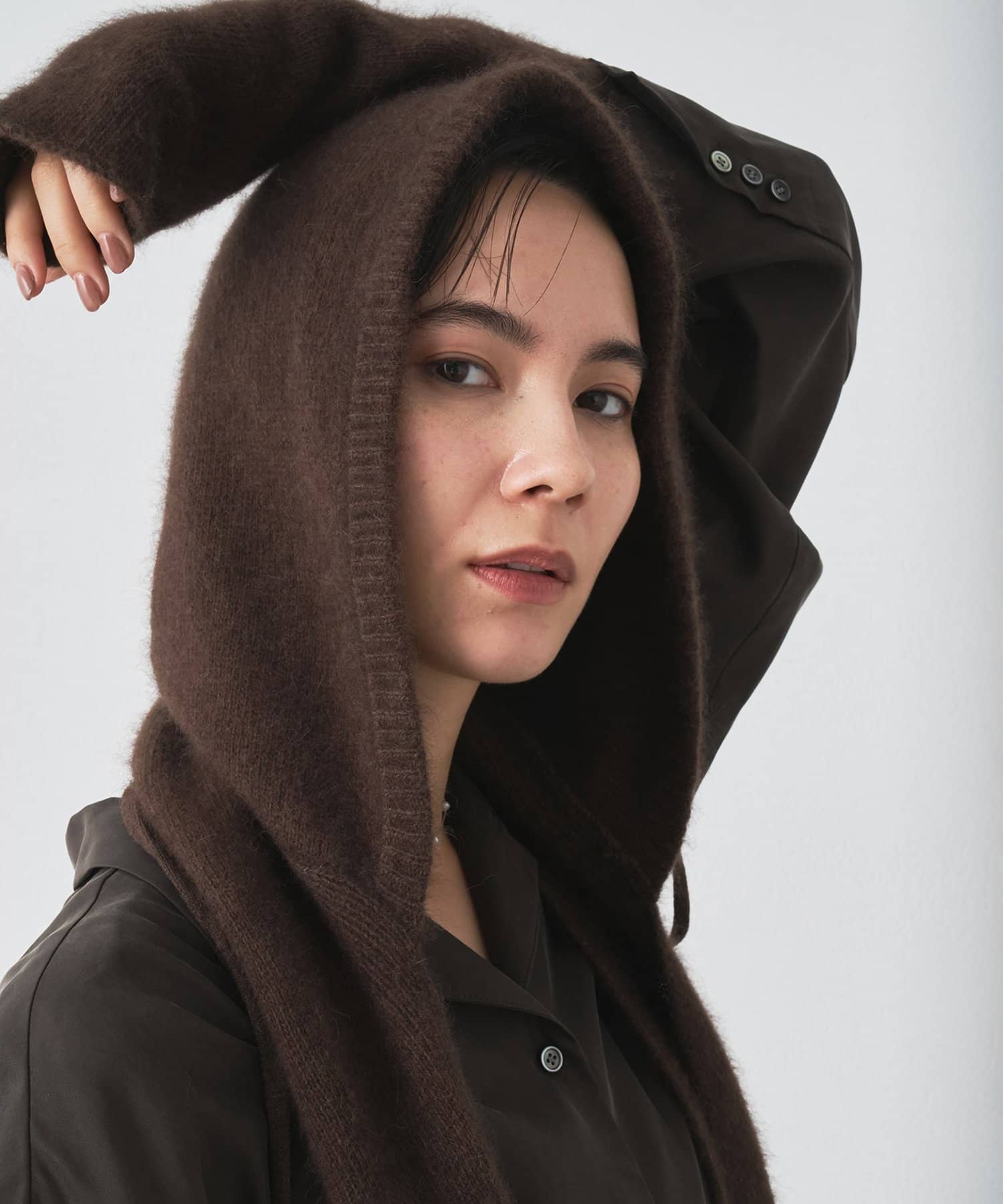 ミニマルでモダンなストールブランド、THROWのフーディースカーフ