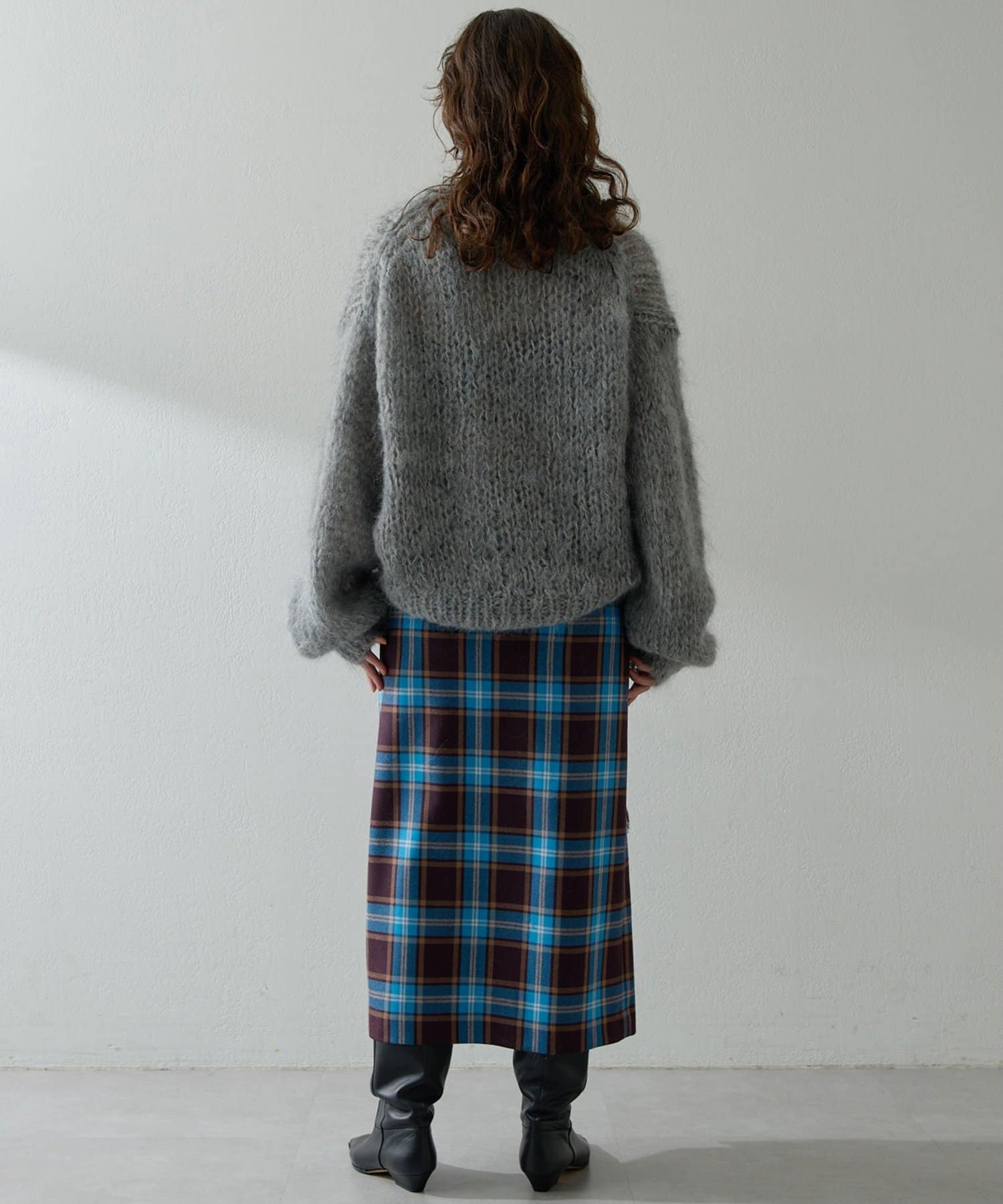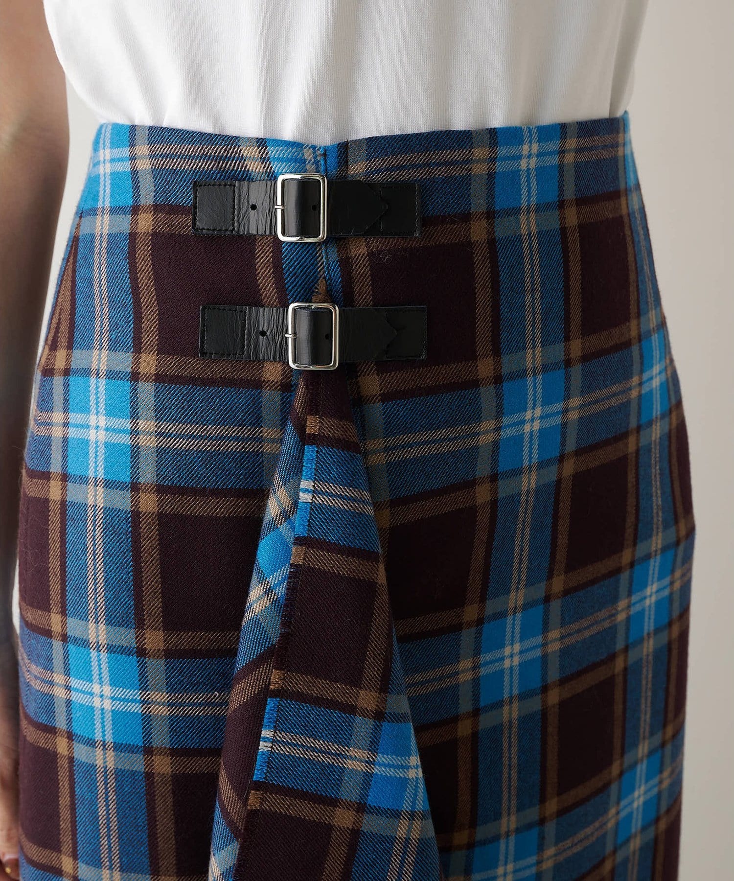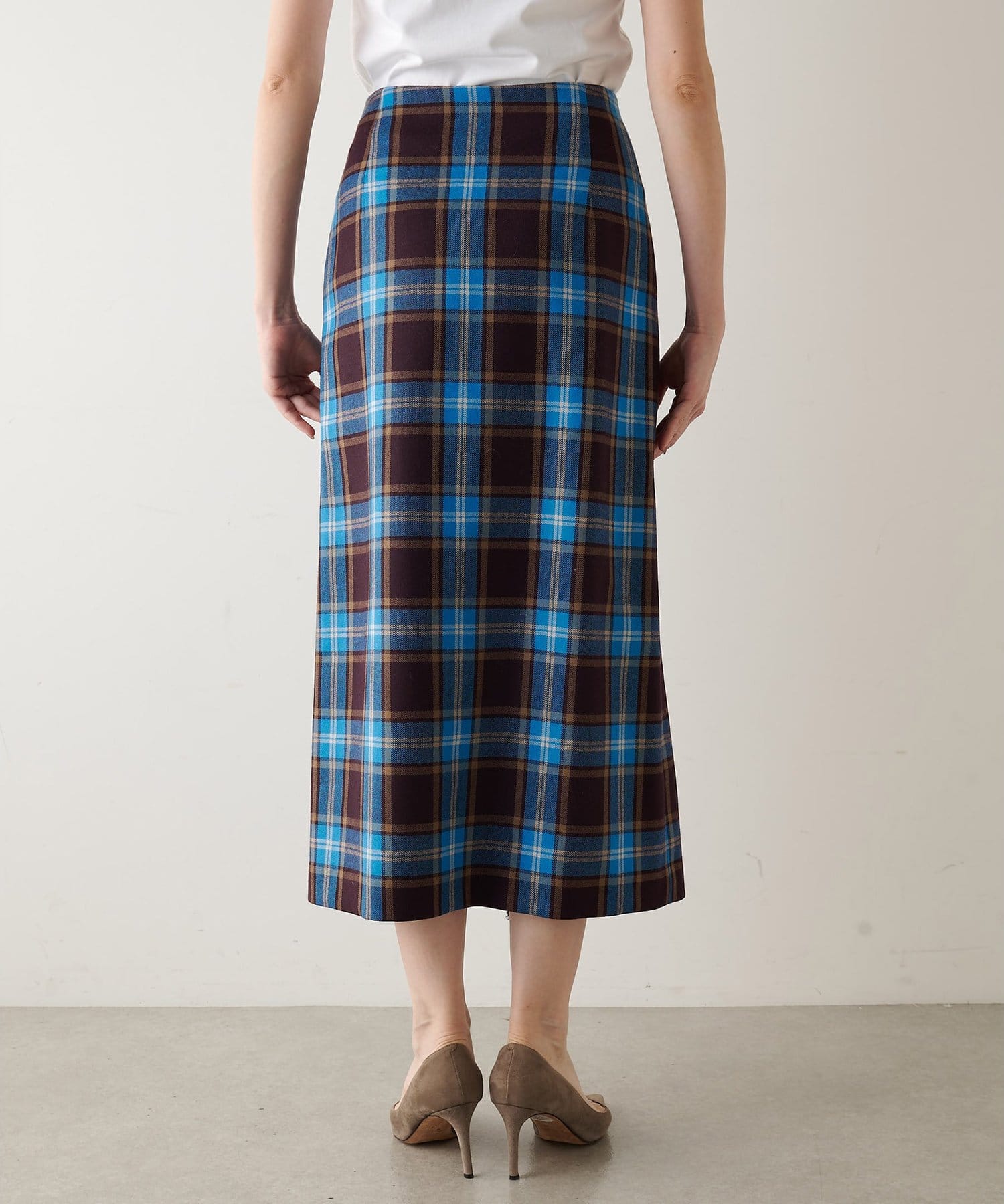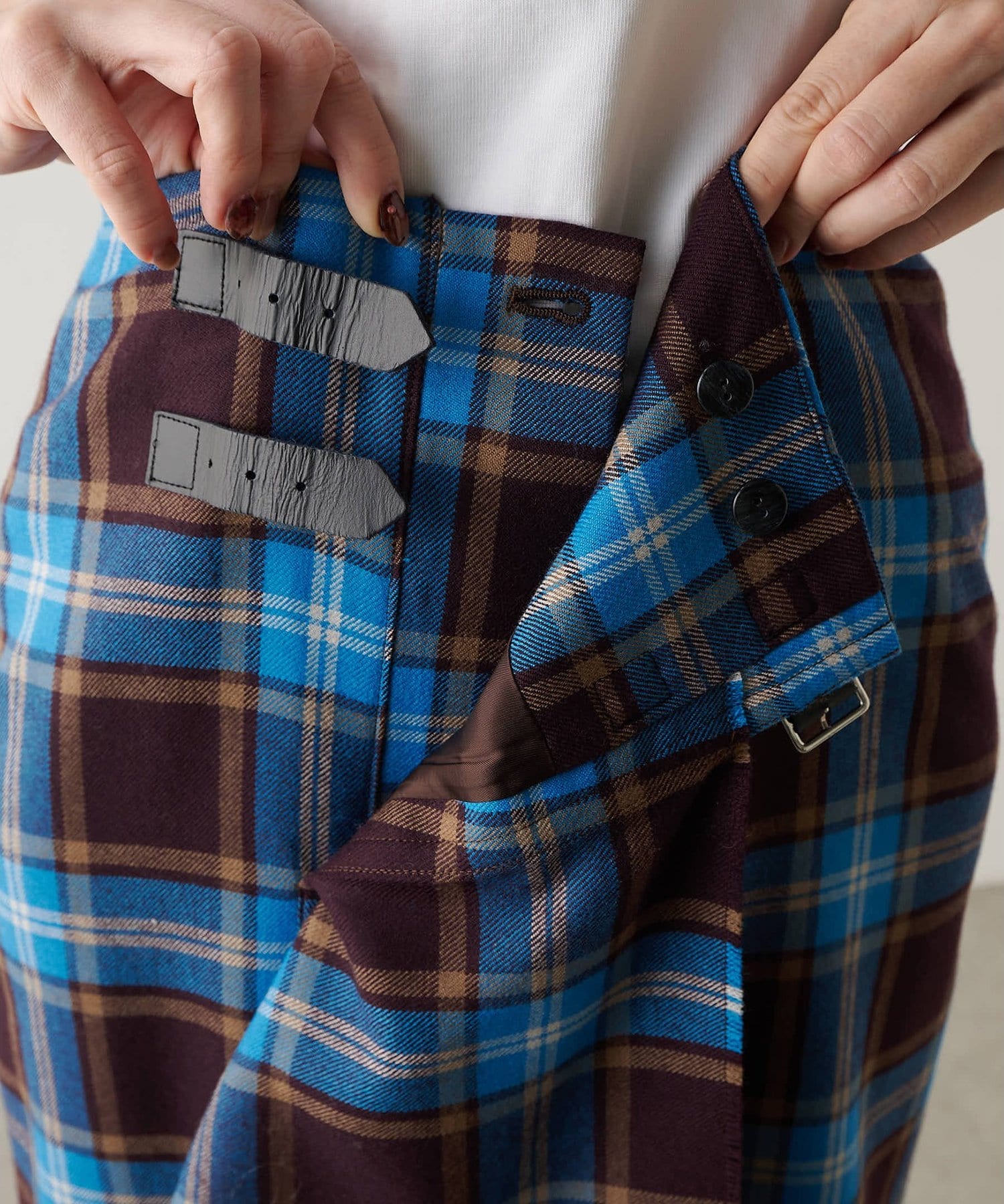 ■オリジナルチェック柄のウール生地を使用したタイトスカート。
