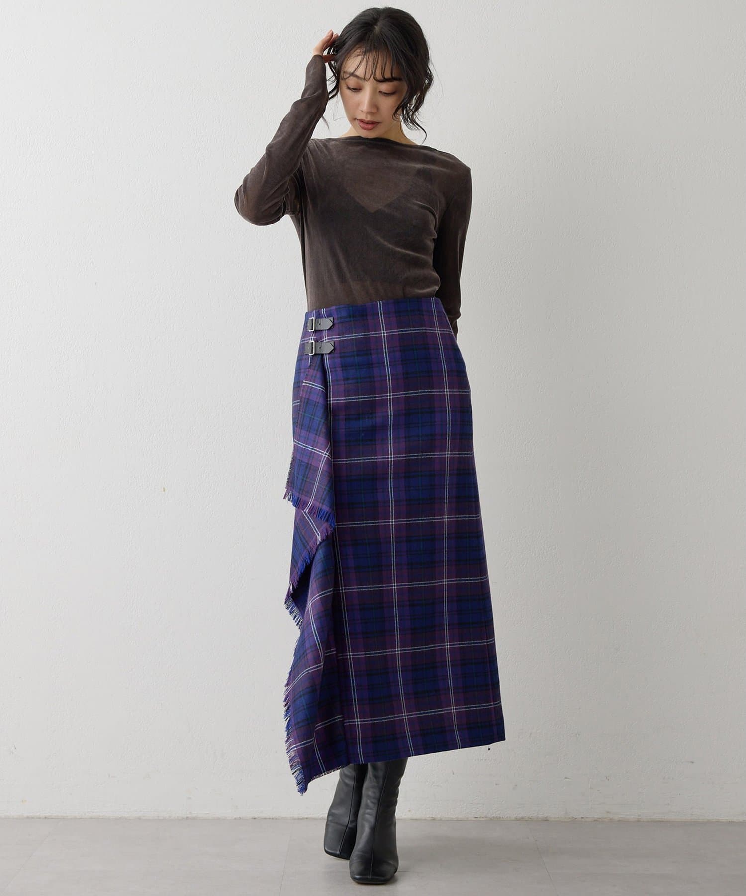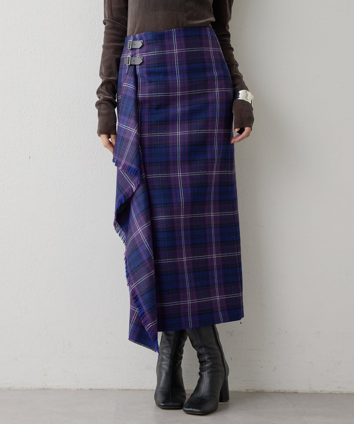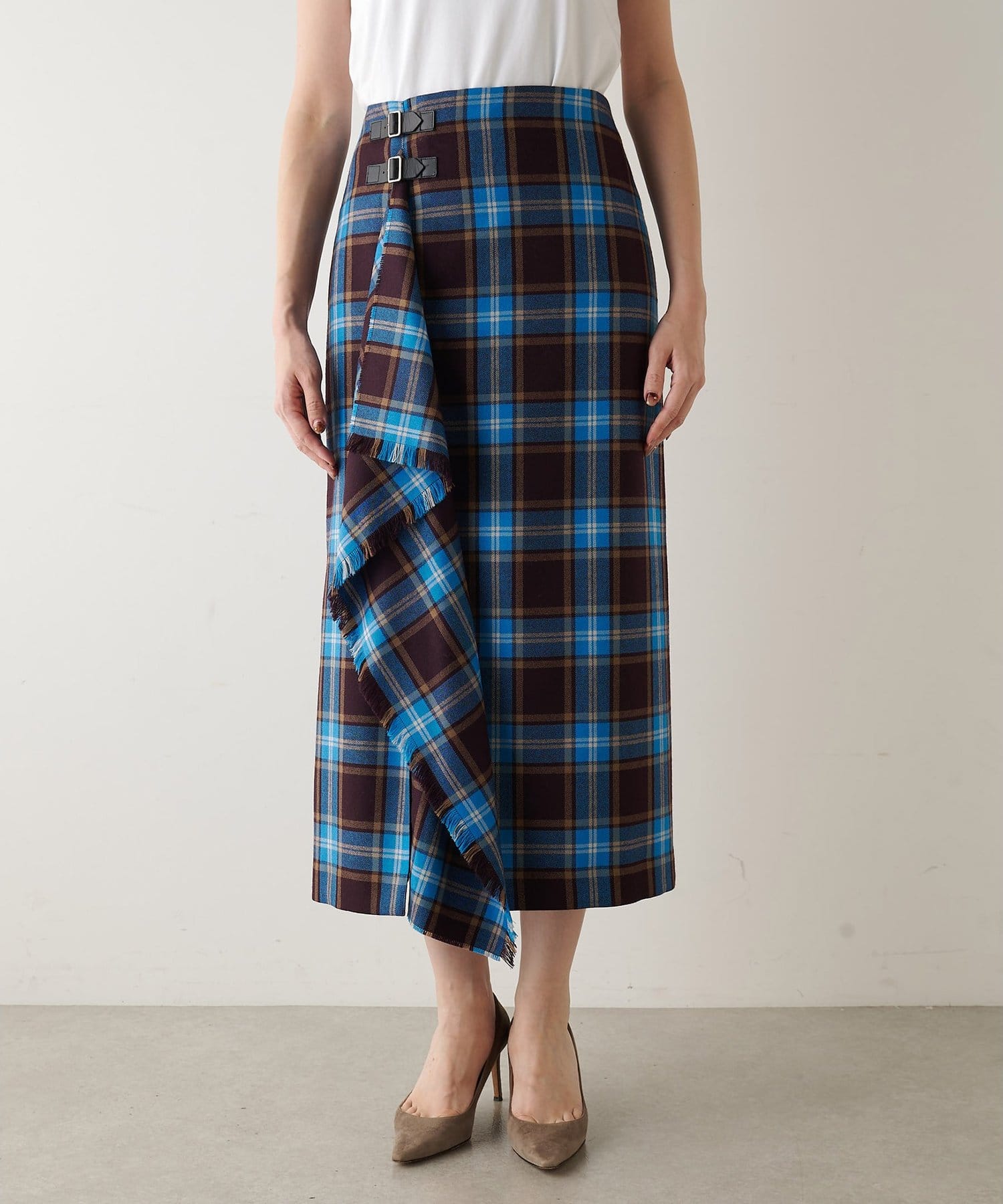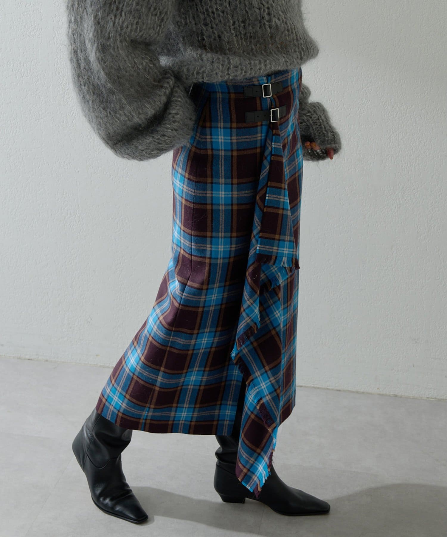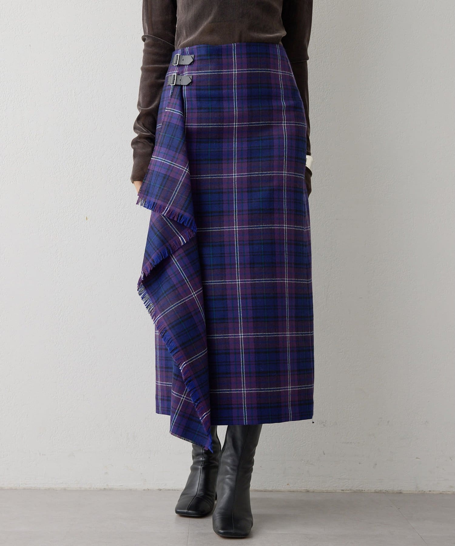 Whim Gazette(ウィム ガゼット) チェックフリンジスカート