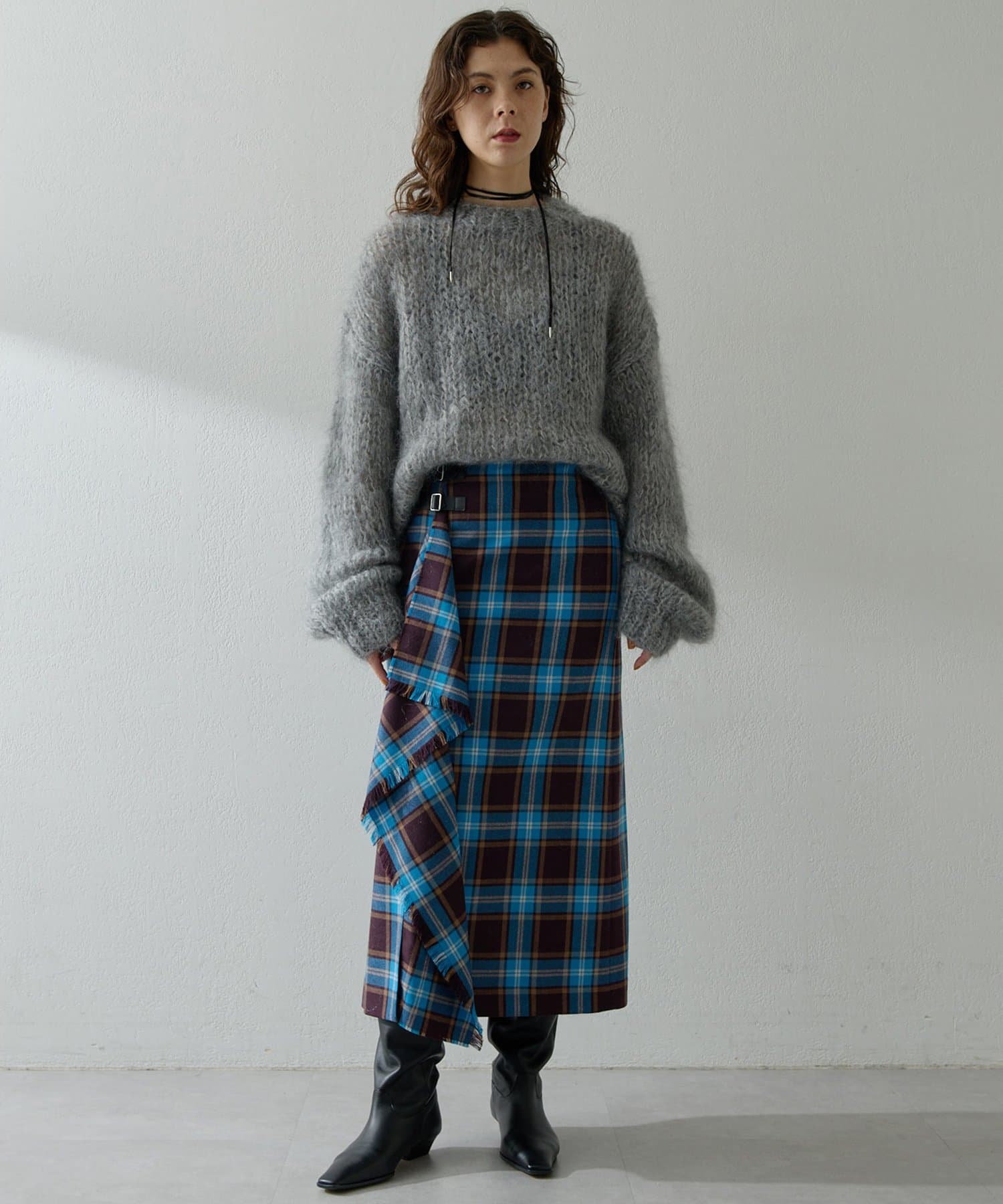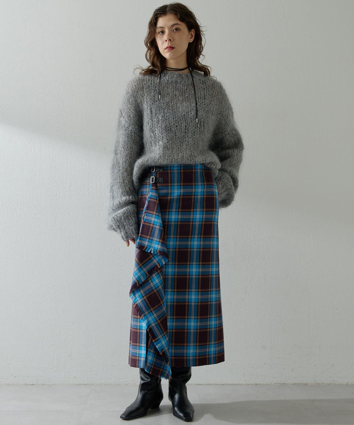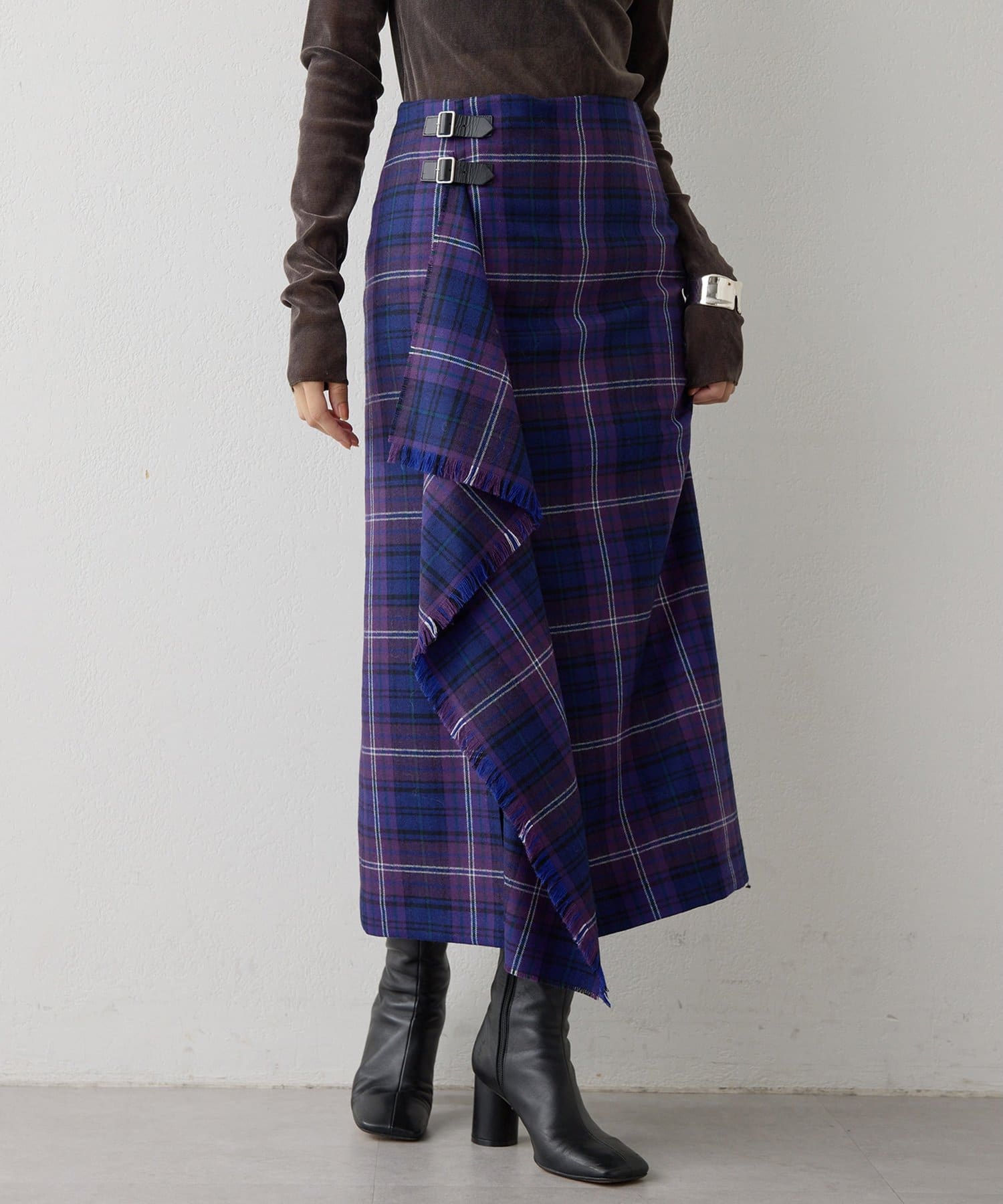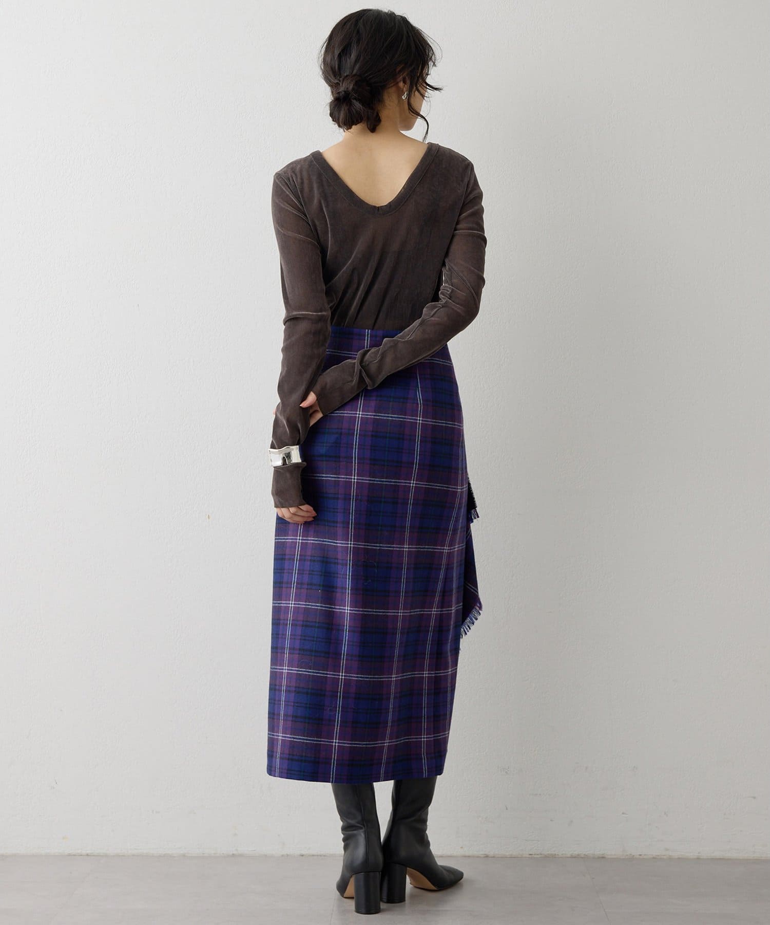 Whim Gazette(ウィム ガゼット) チェックフリンジスカート