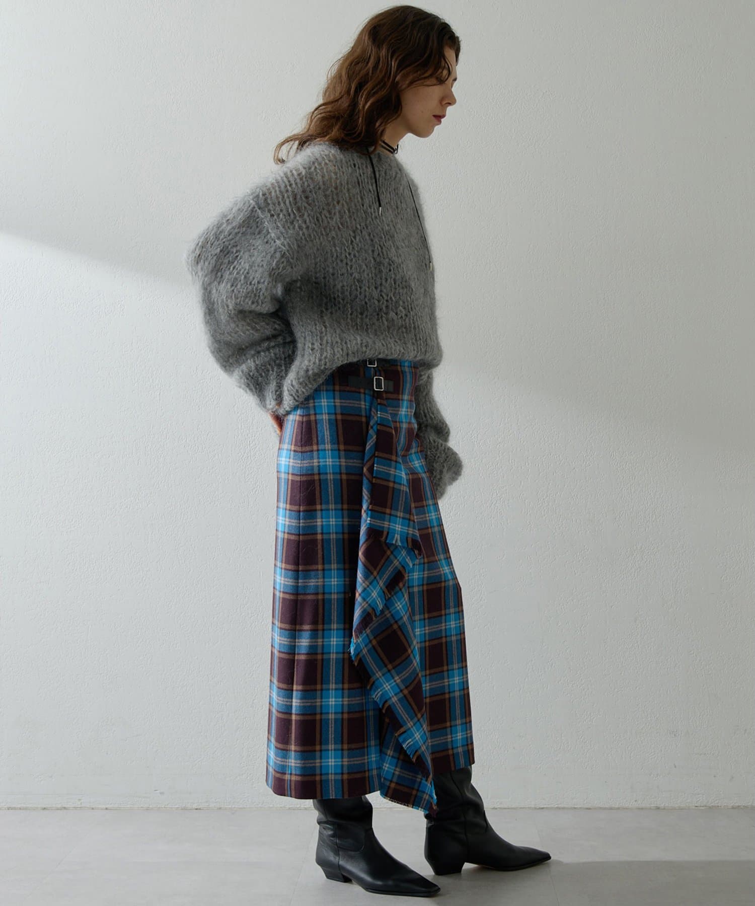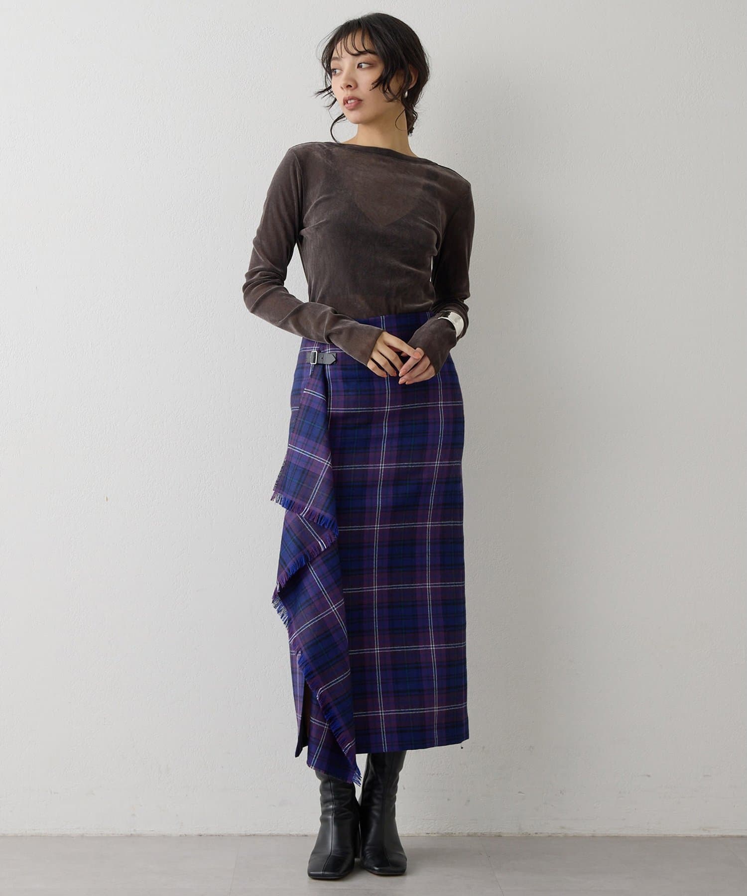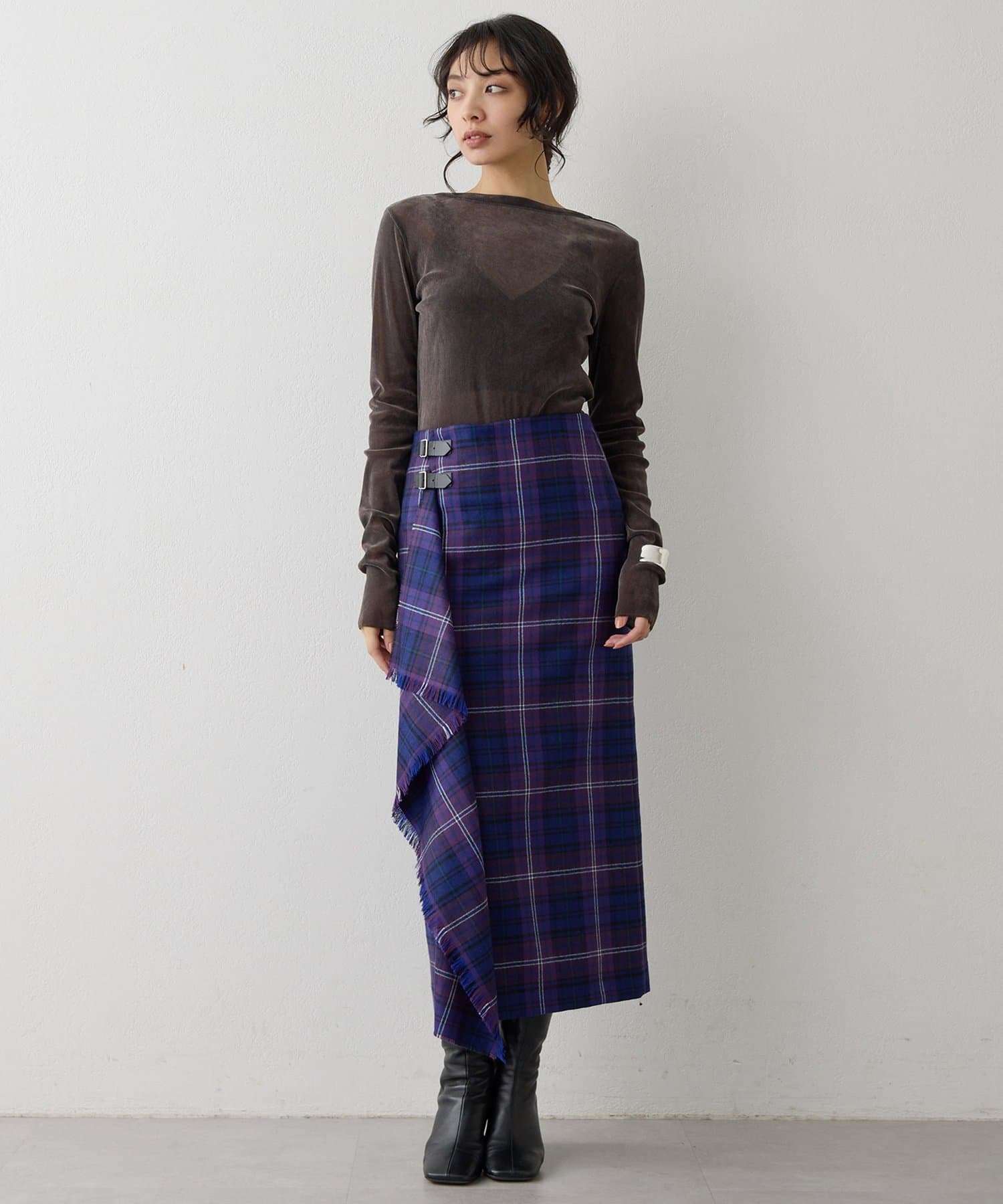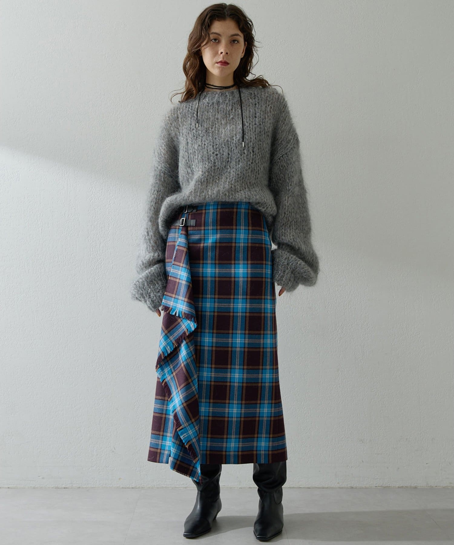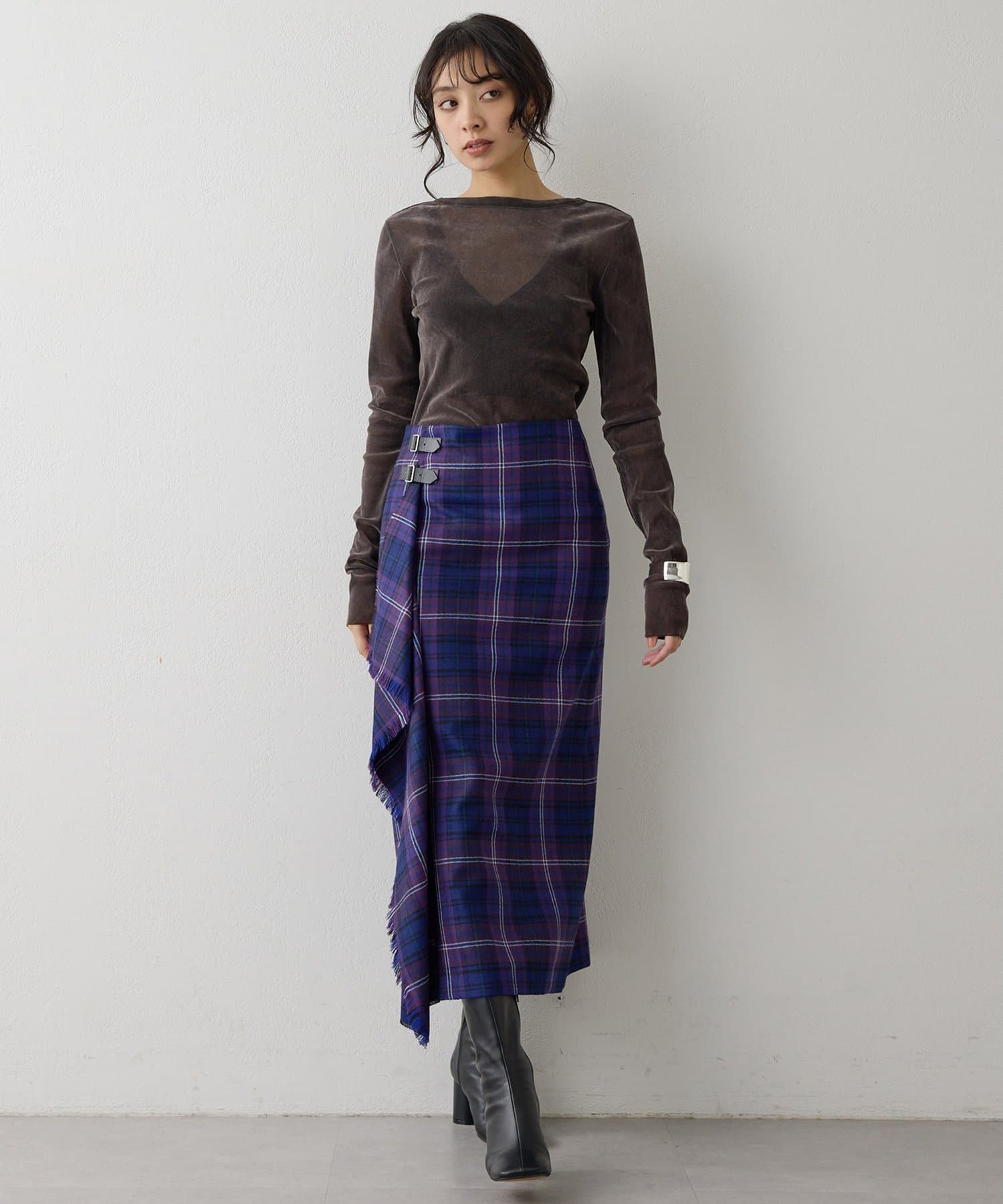 Whim Gazette(ウィム ガゼット) チェックフリンジスカート
