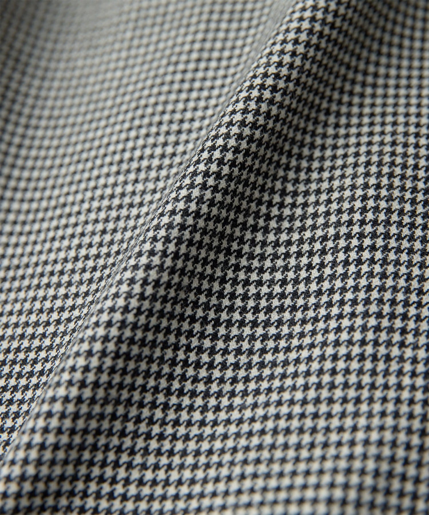 ミルド仕上げにより、ウール特有の柔らかく暖かみのある質感を引き立てたチェック柄素材。