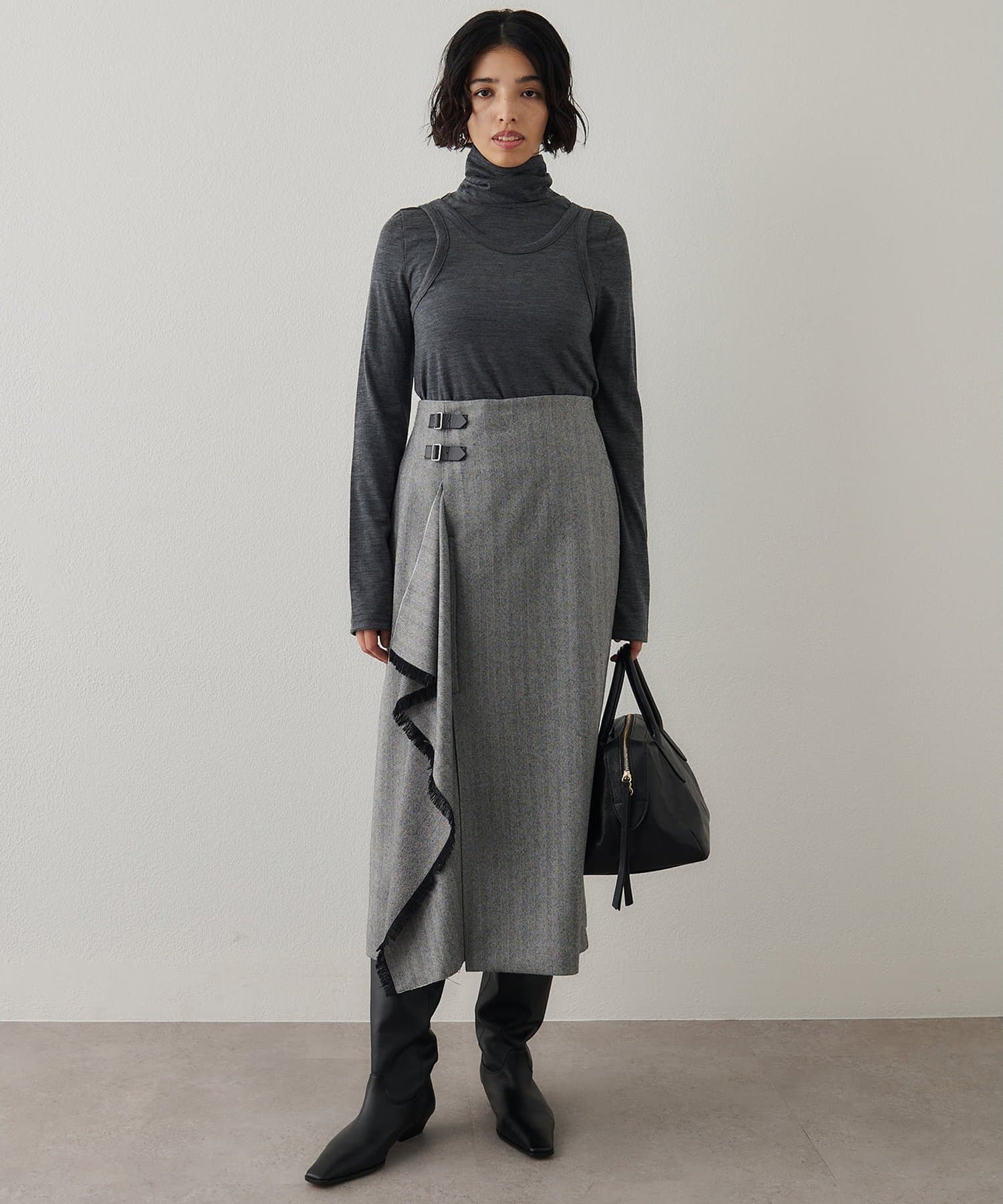 • Whim Gazette(ウィム ガゼット) チェックフリンジスカート