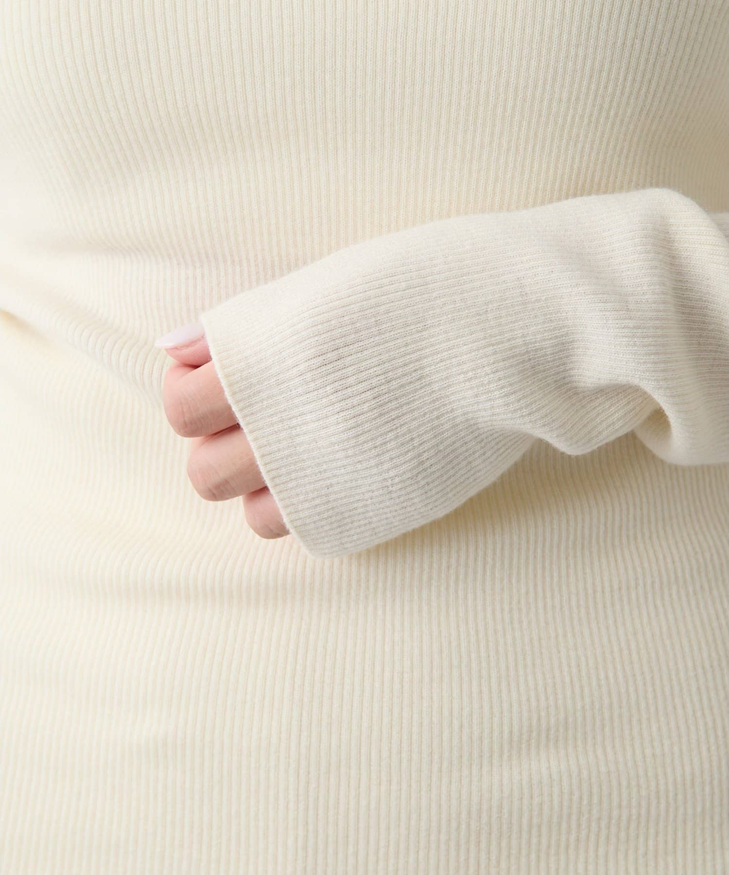 ■体に優しくフィットするリブ編みが美しいシルエットを作りだす一枚。