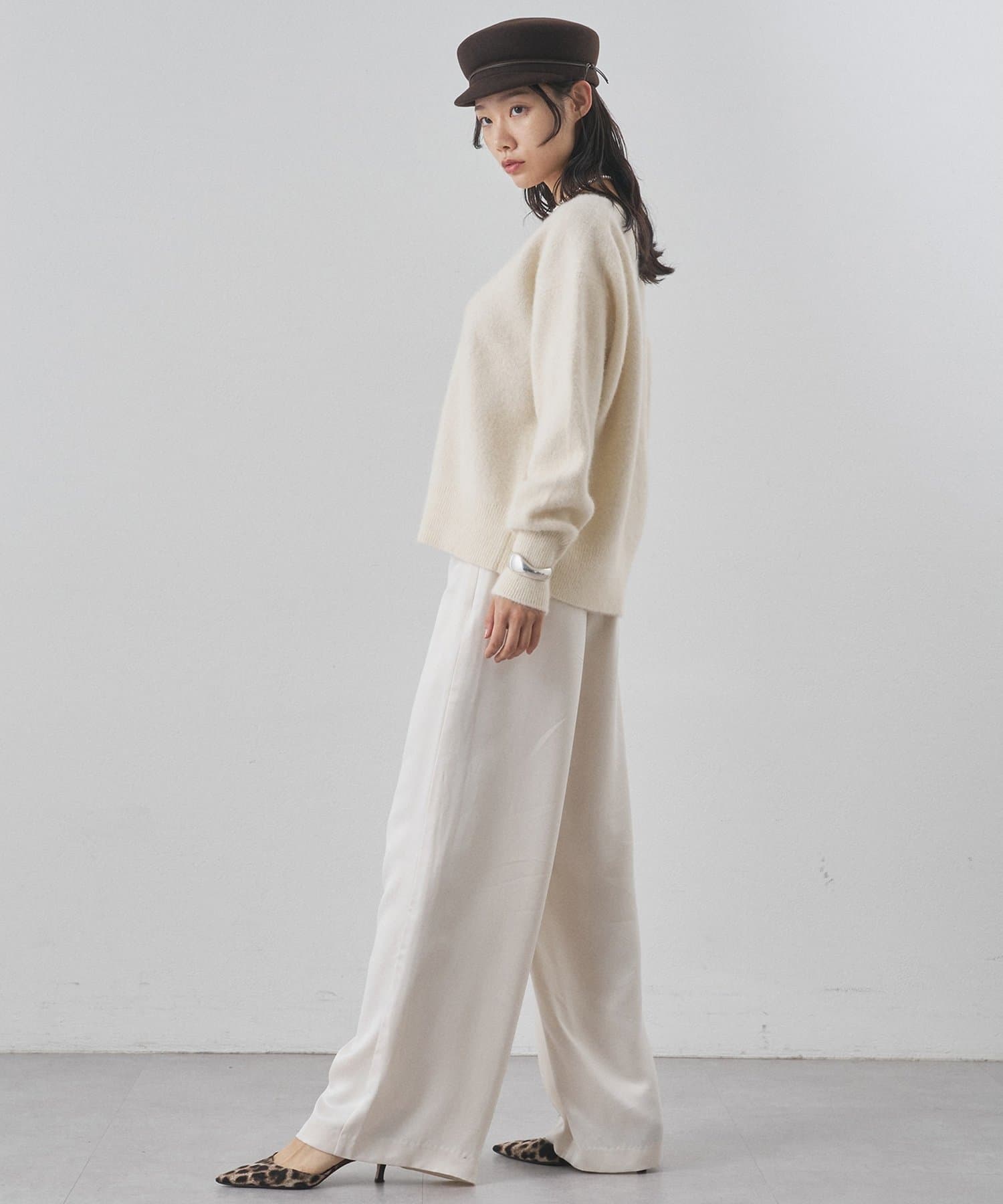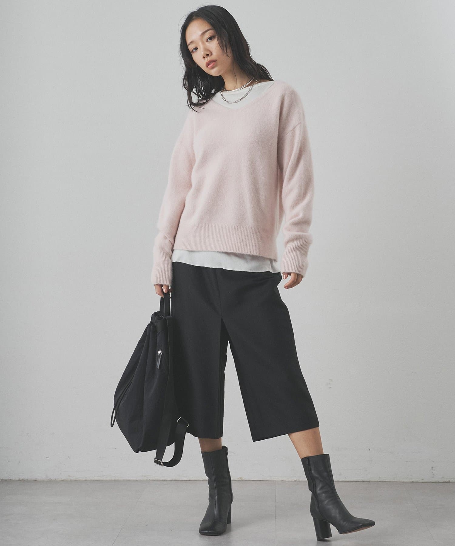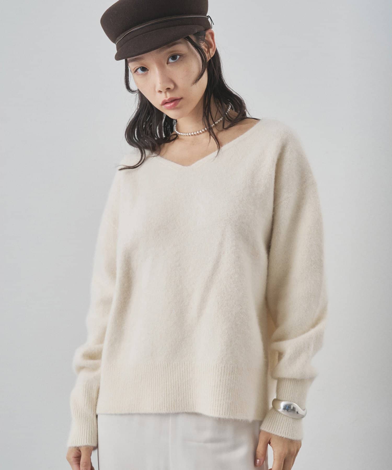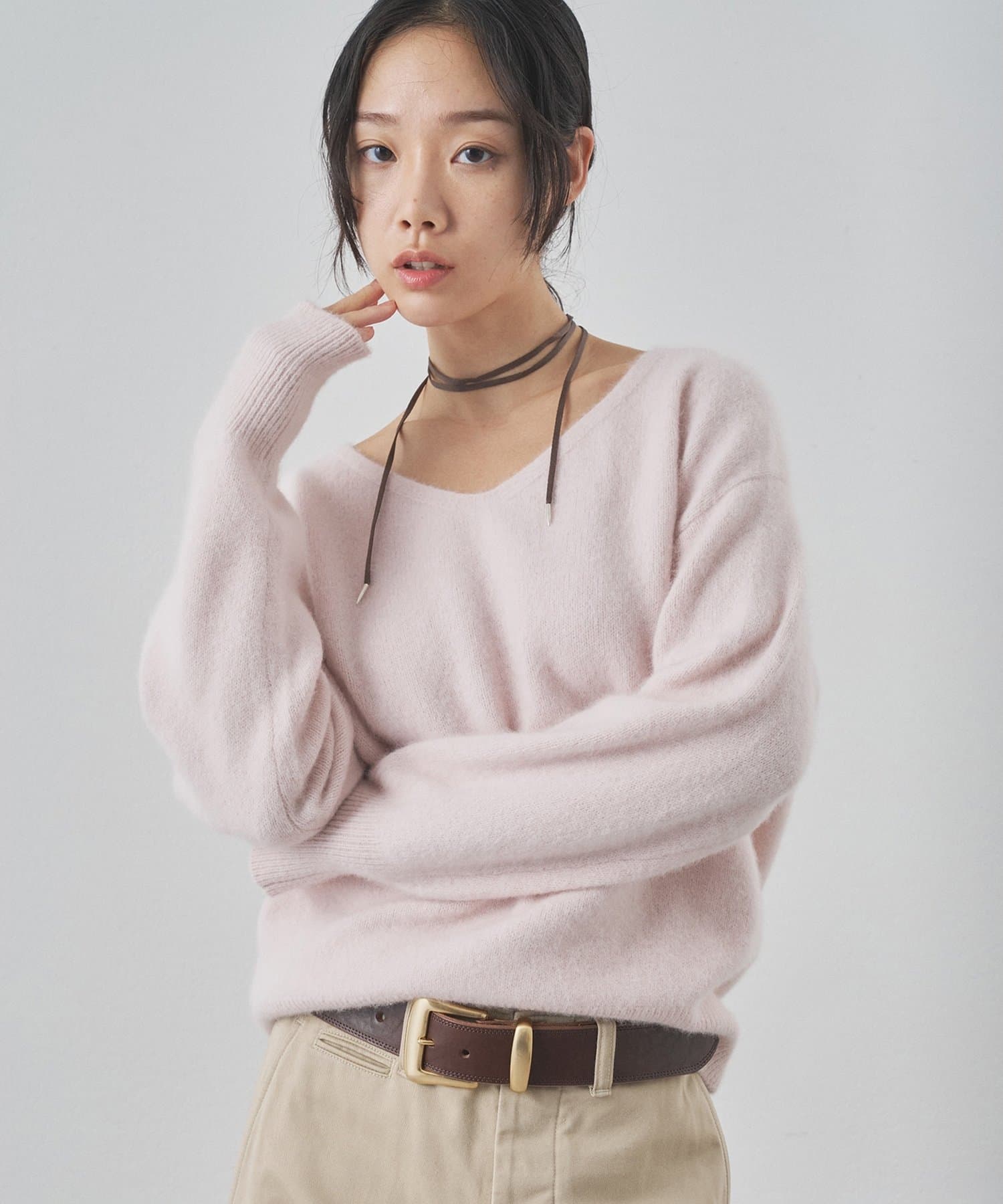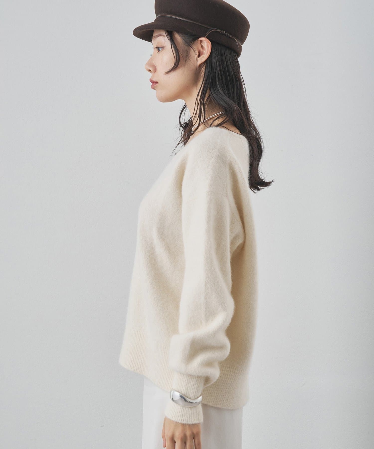女性らしいニュアンス漂う、ふんわりニットプルオーバー