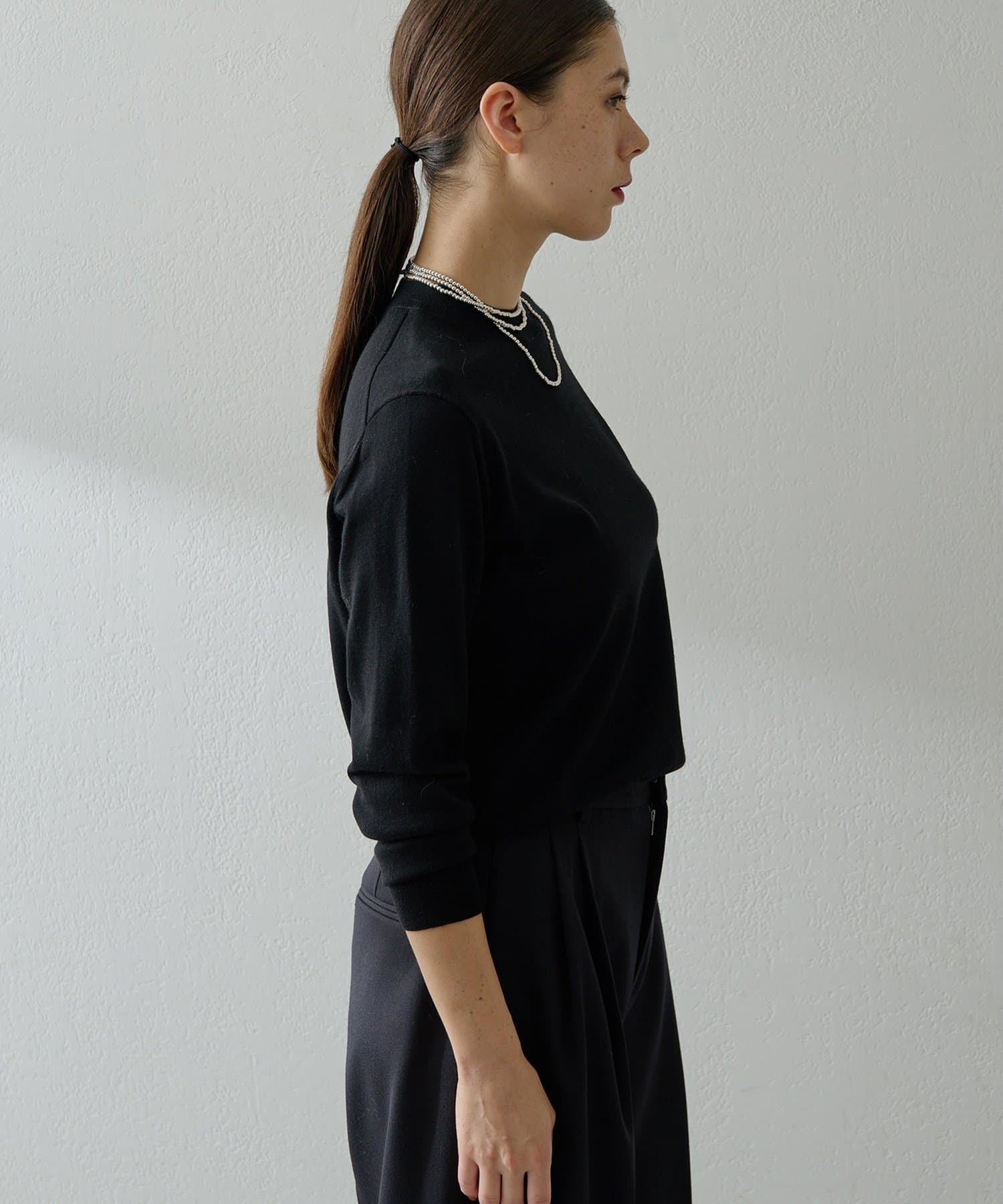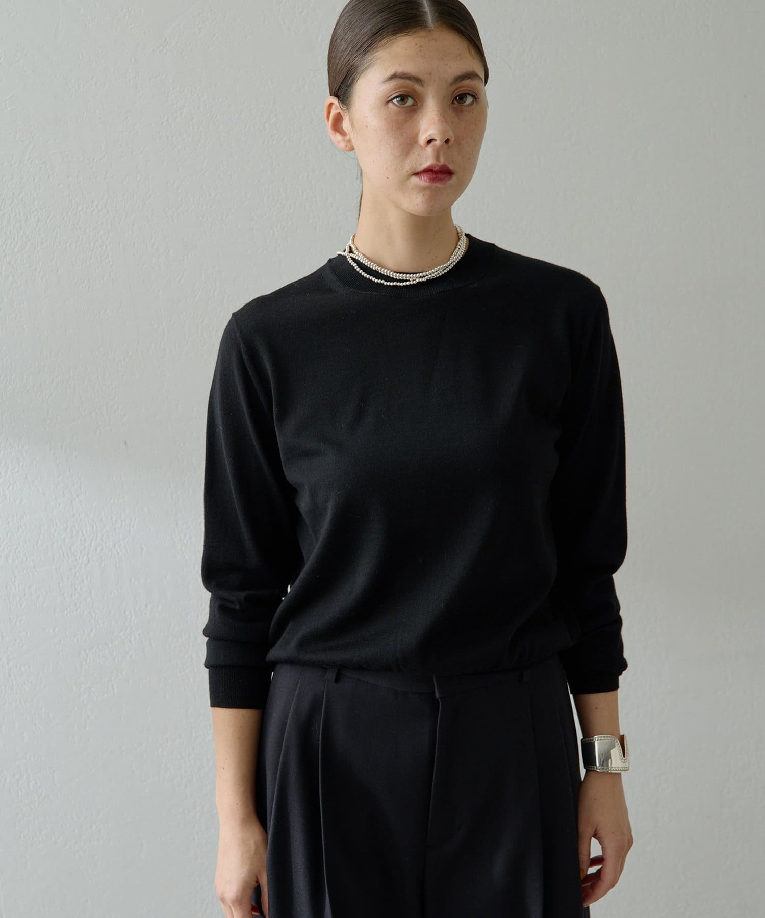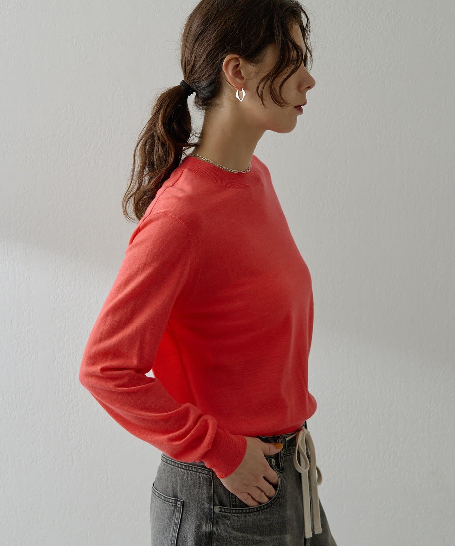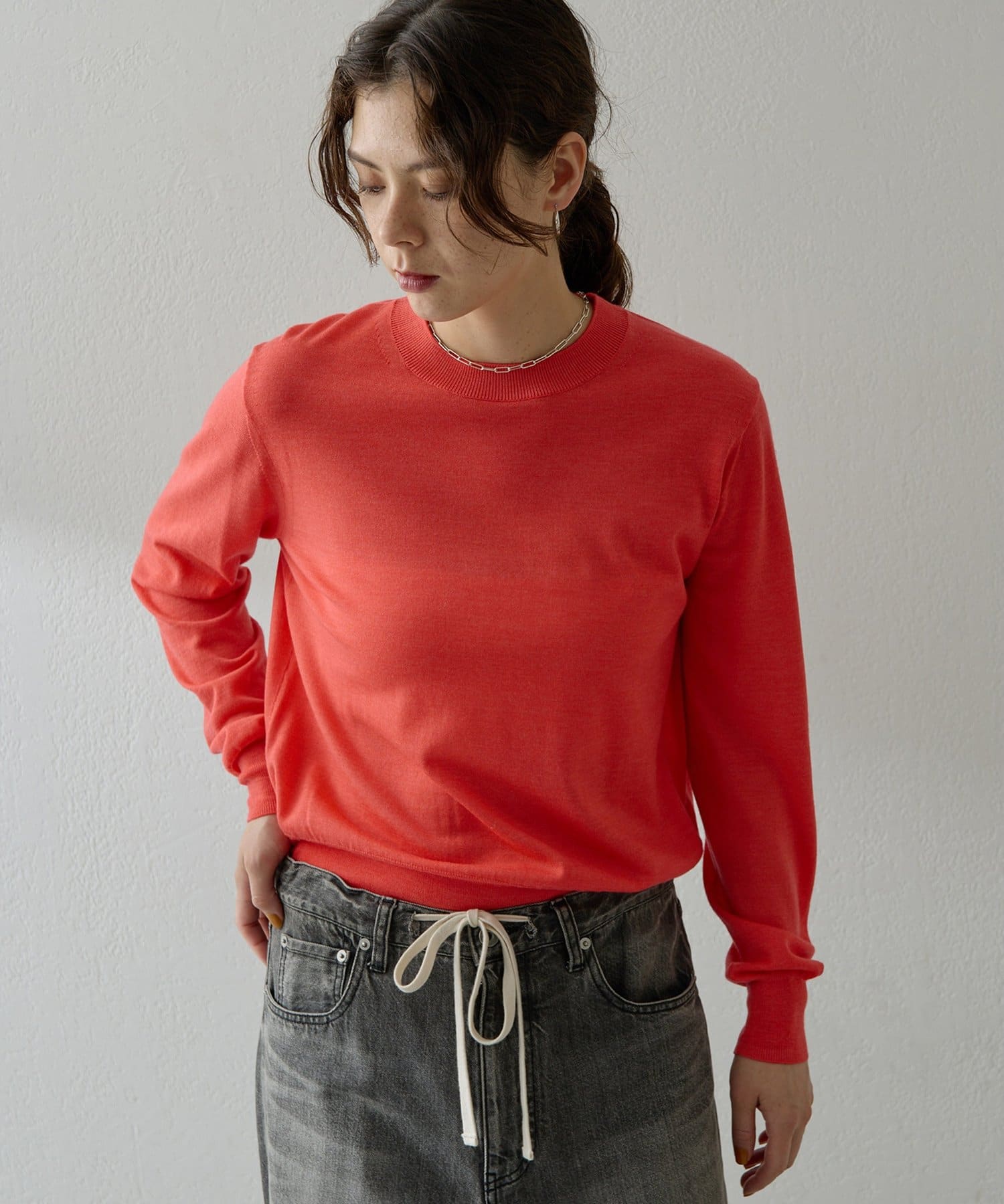 ■メリノウールの上質な光沢と発色が美しいクルーネックニットプルオーバー。
