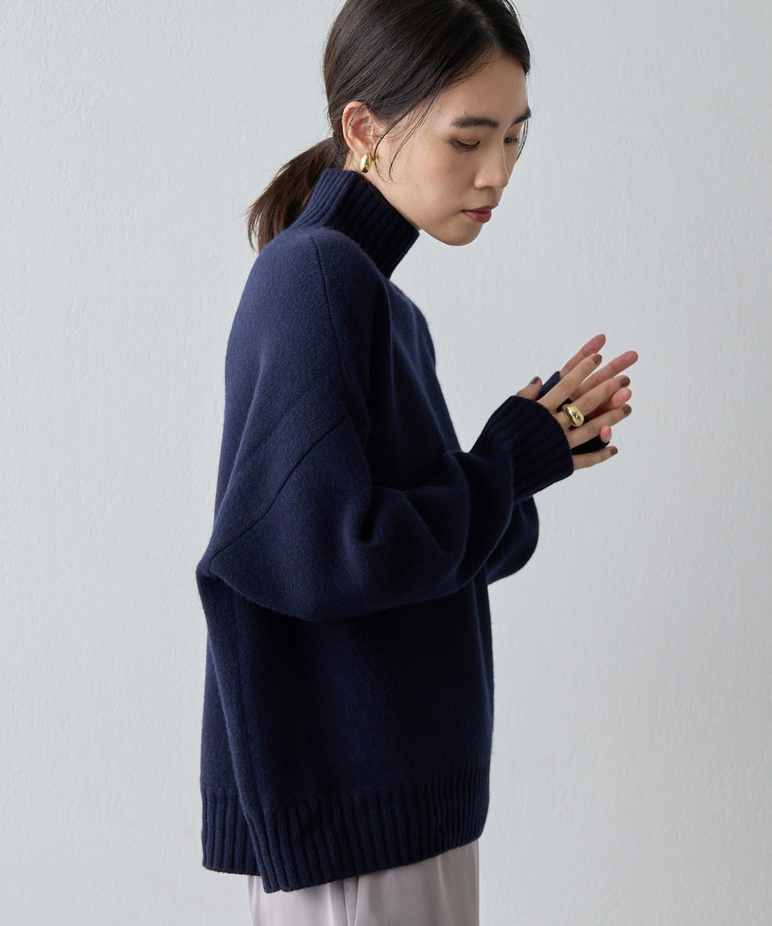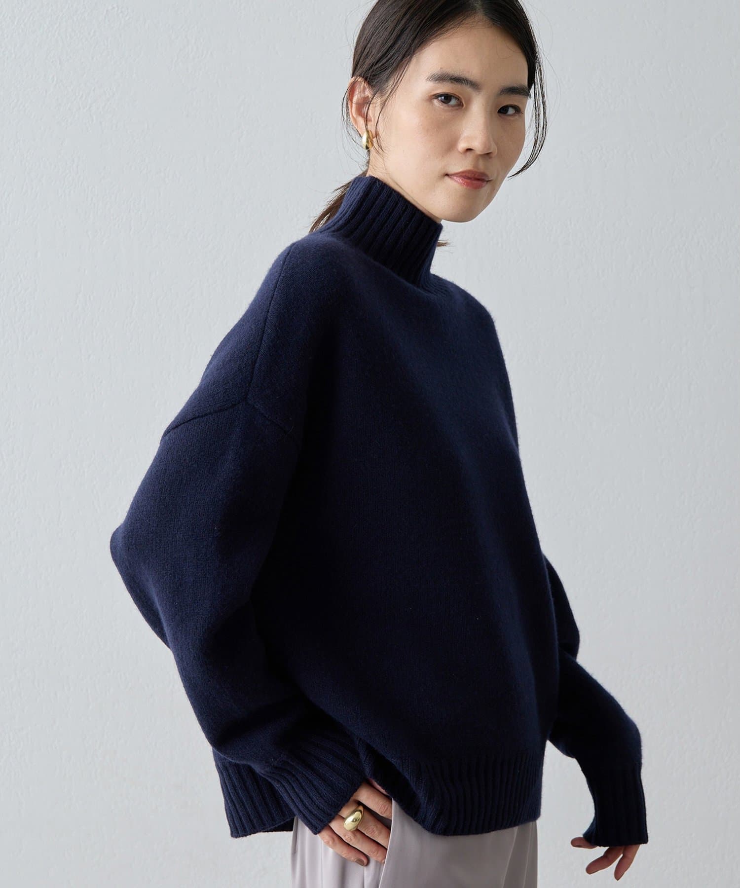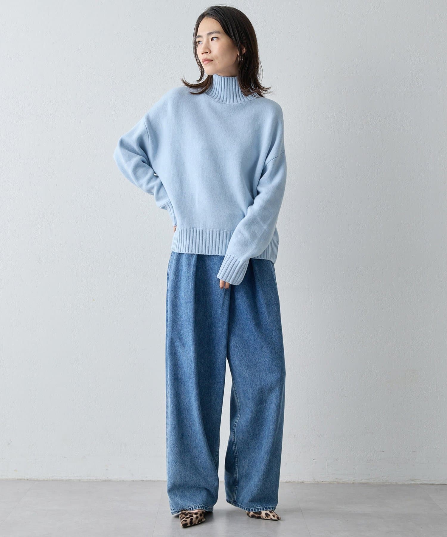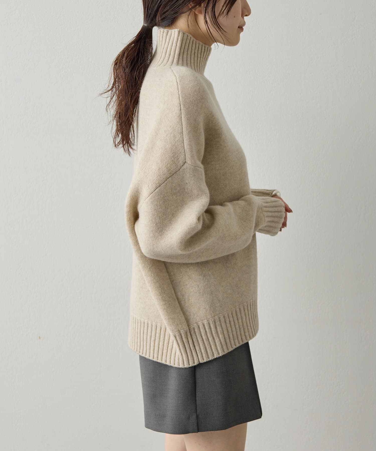■程よいワイドシルエット+自然なタートルネックは一枚でもサマになり、シャツやカットソーをレイヤードしても◎