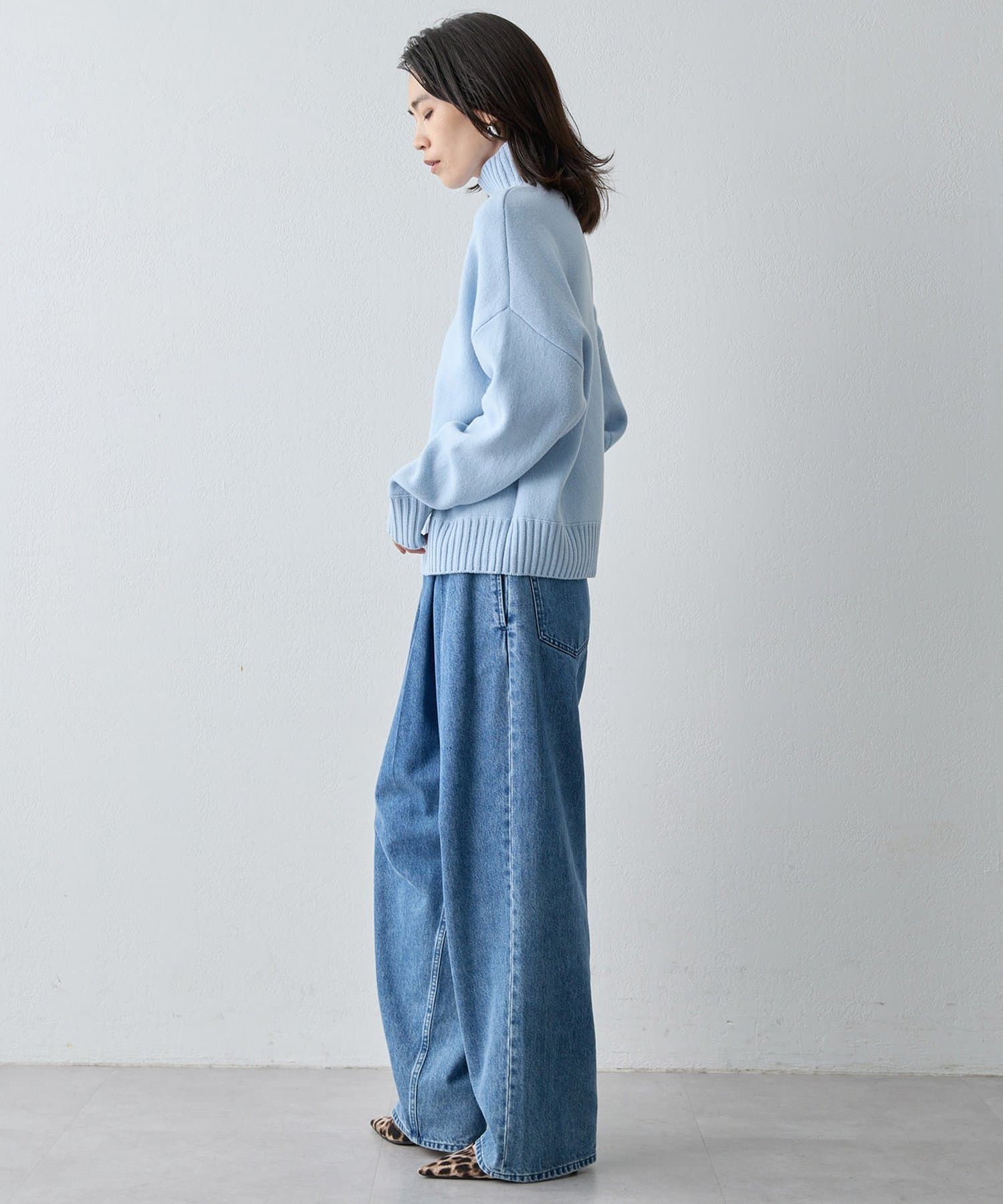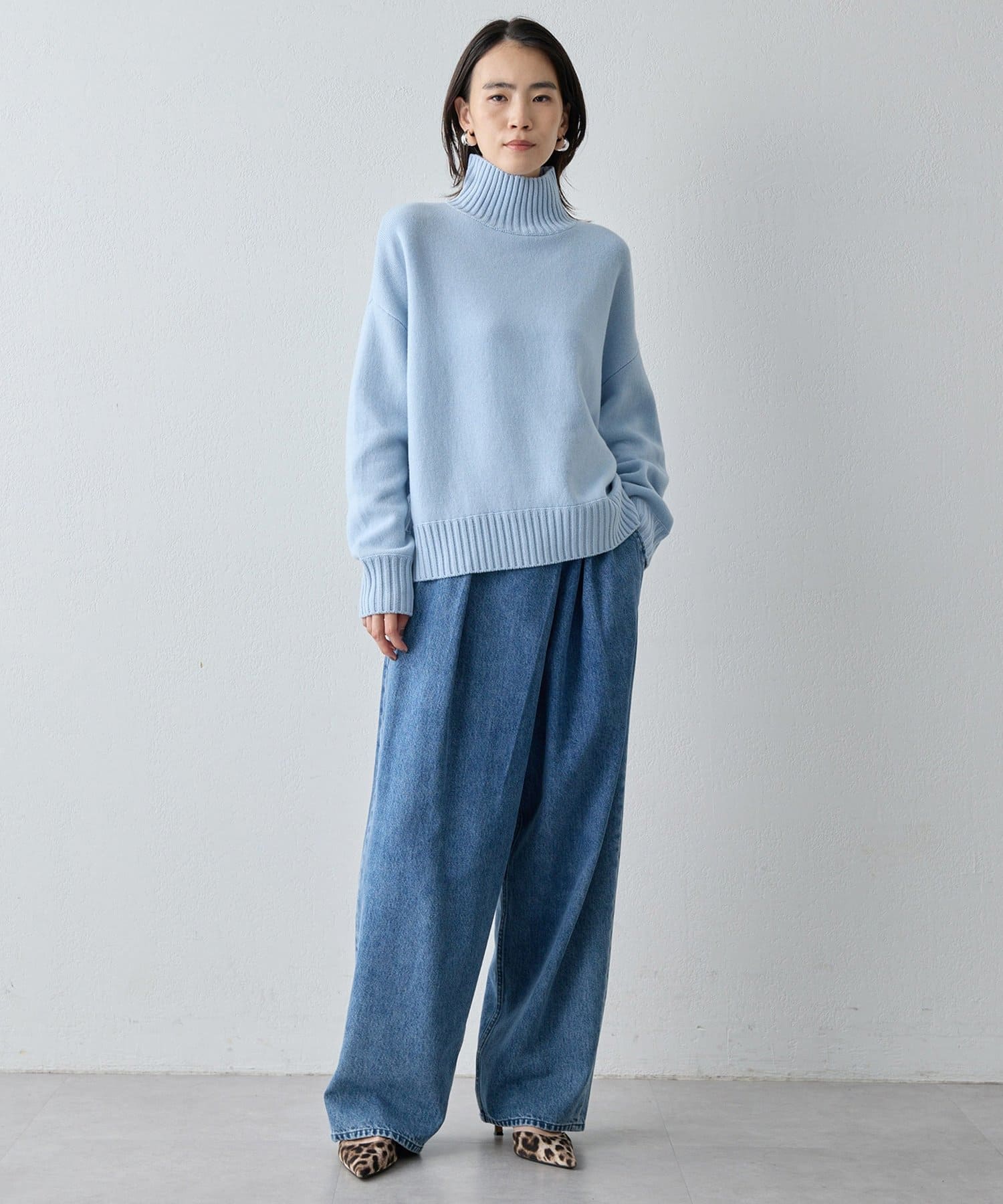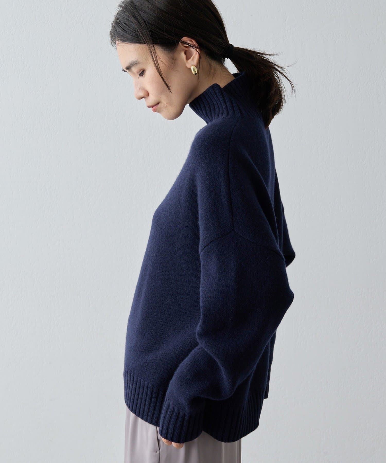 ■程よいワイドシルエット+自然なタートルネックは一枚でもサマになり、シャツやカットソーをレイヤードしても◎