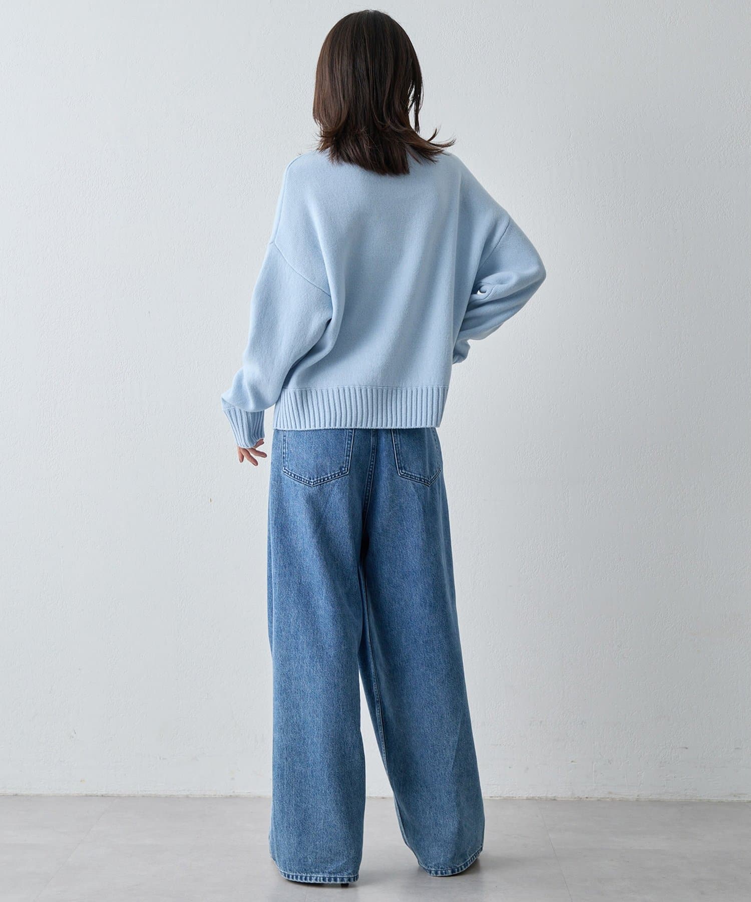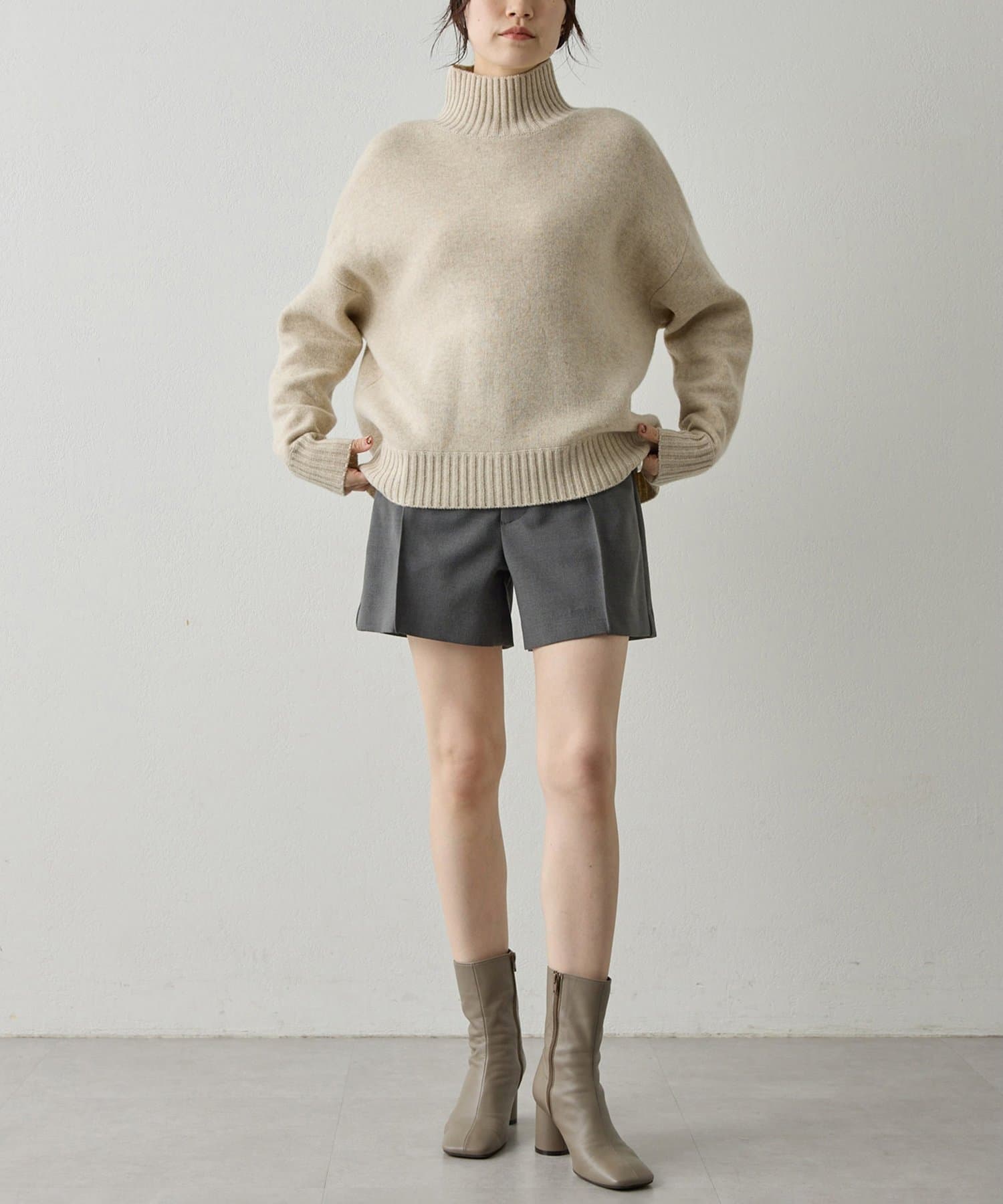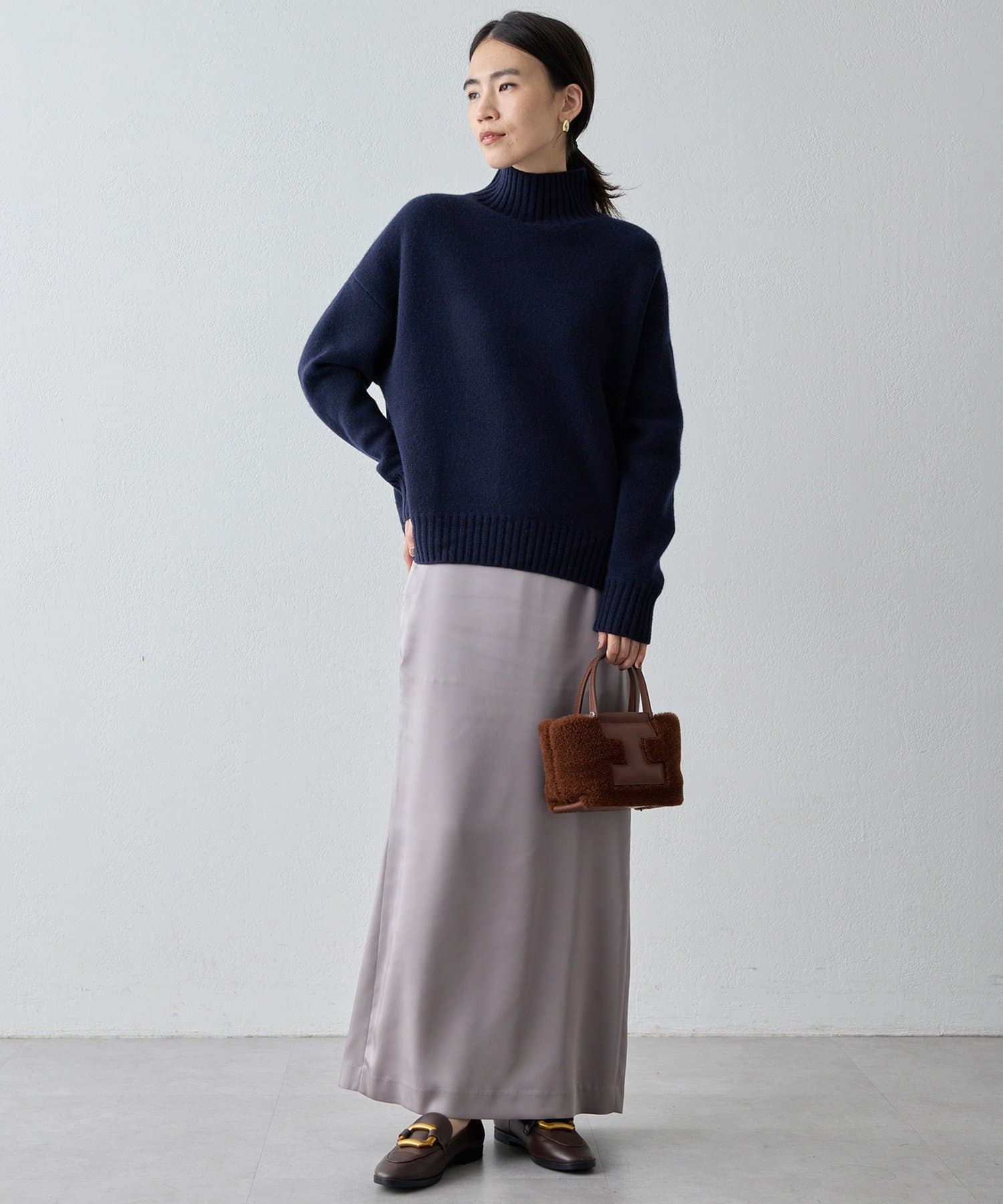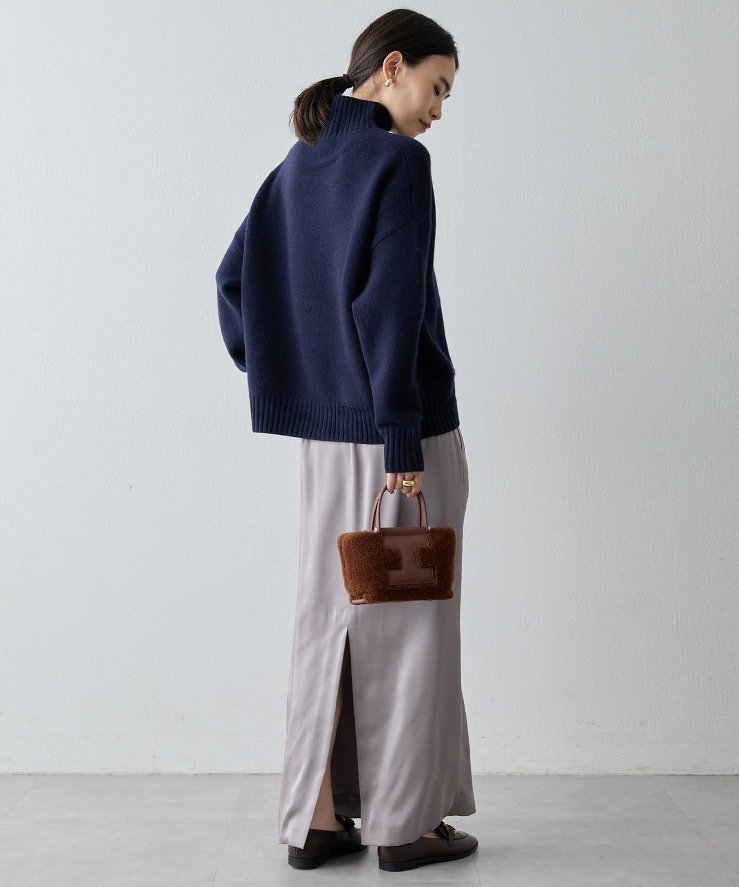 ■程よいワイドシルエット+自然なタートルネックは一枚でもサマになり、シャツやカットソーをレイヤードしても◎