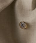 ハリ感がありつつ、風合いはソフトな仕上げの生地にボンディング加工を施し、フォルムが出る構築的な生地に仕上げた、横ストレッチのサキソニー素材。