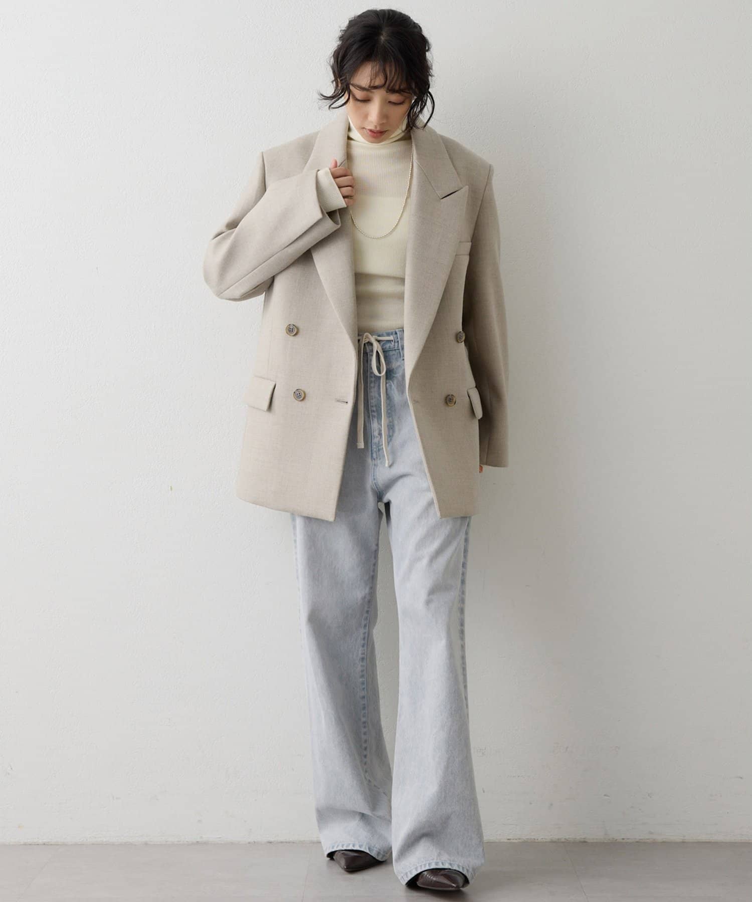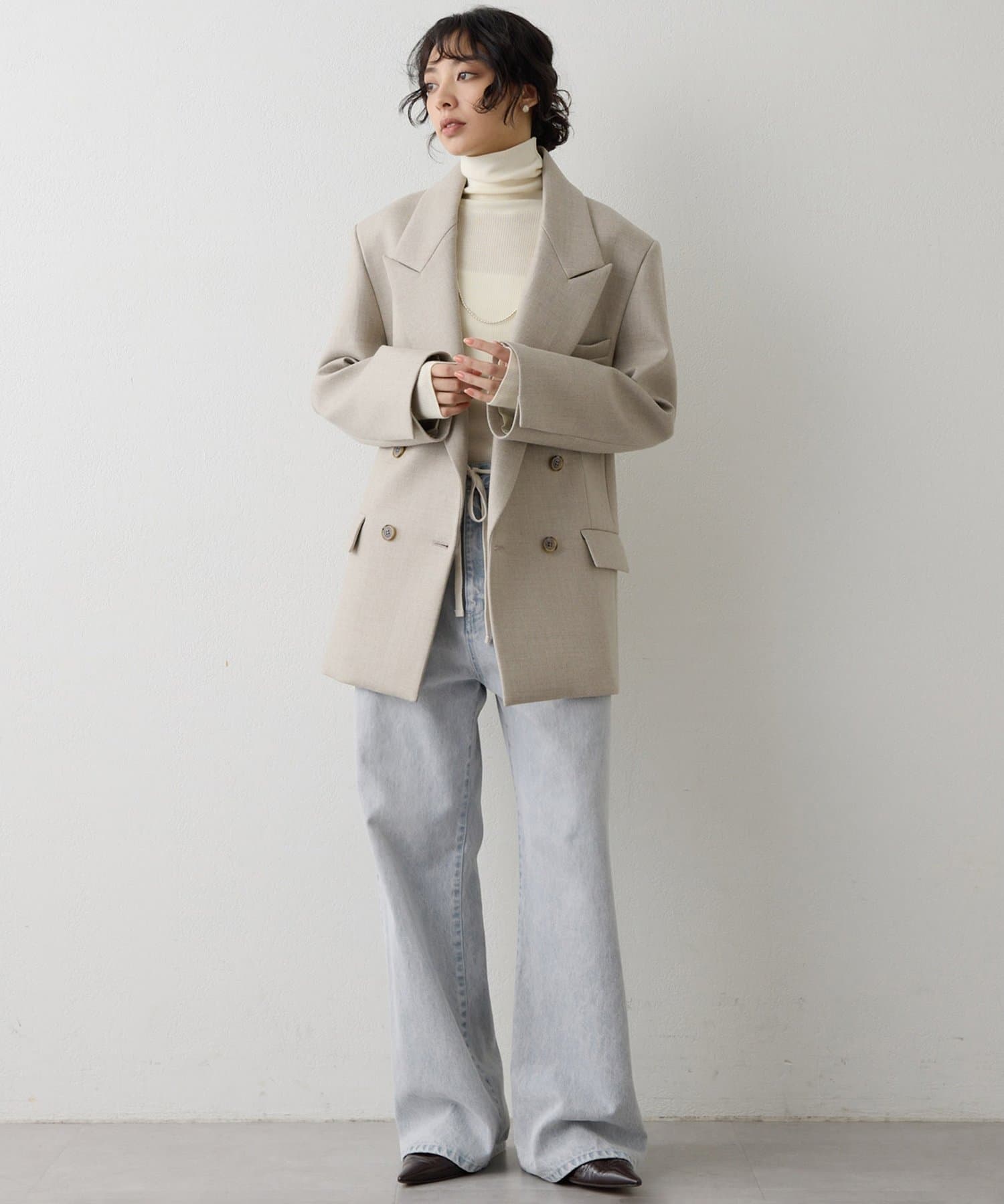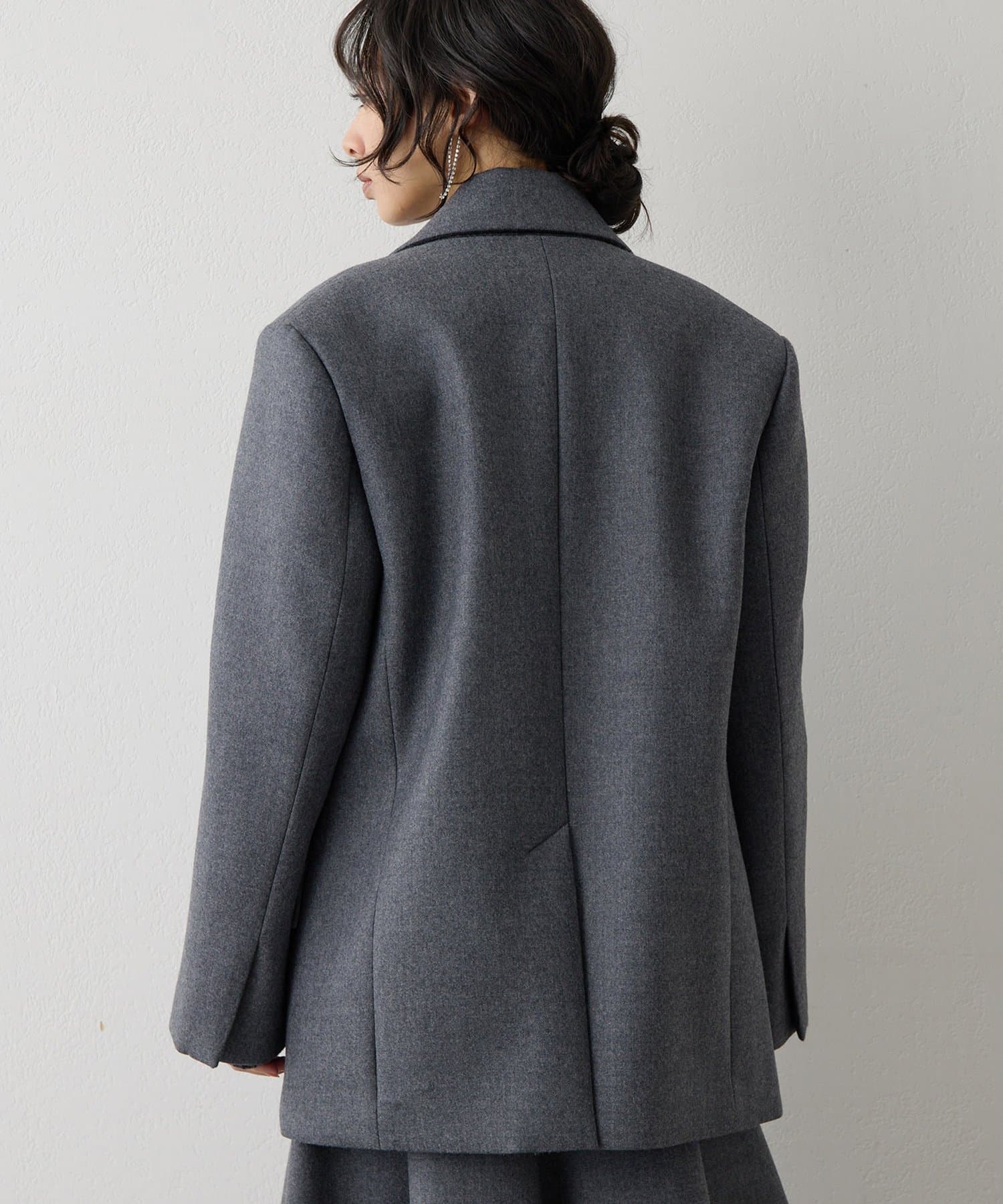 ■着るだけでスタイルが良く見える、構築的なフォルムが印象的な一着。