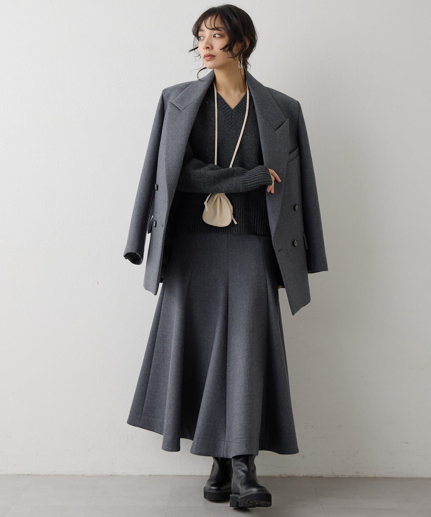 ■同素材のボンディングウールスカート(ブランド品番:WGZ1052401A0002)とのセットアップもおすすめ。