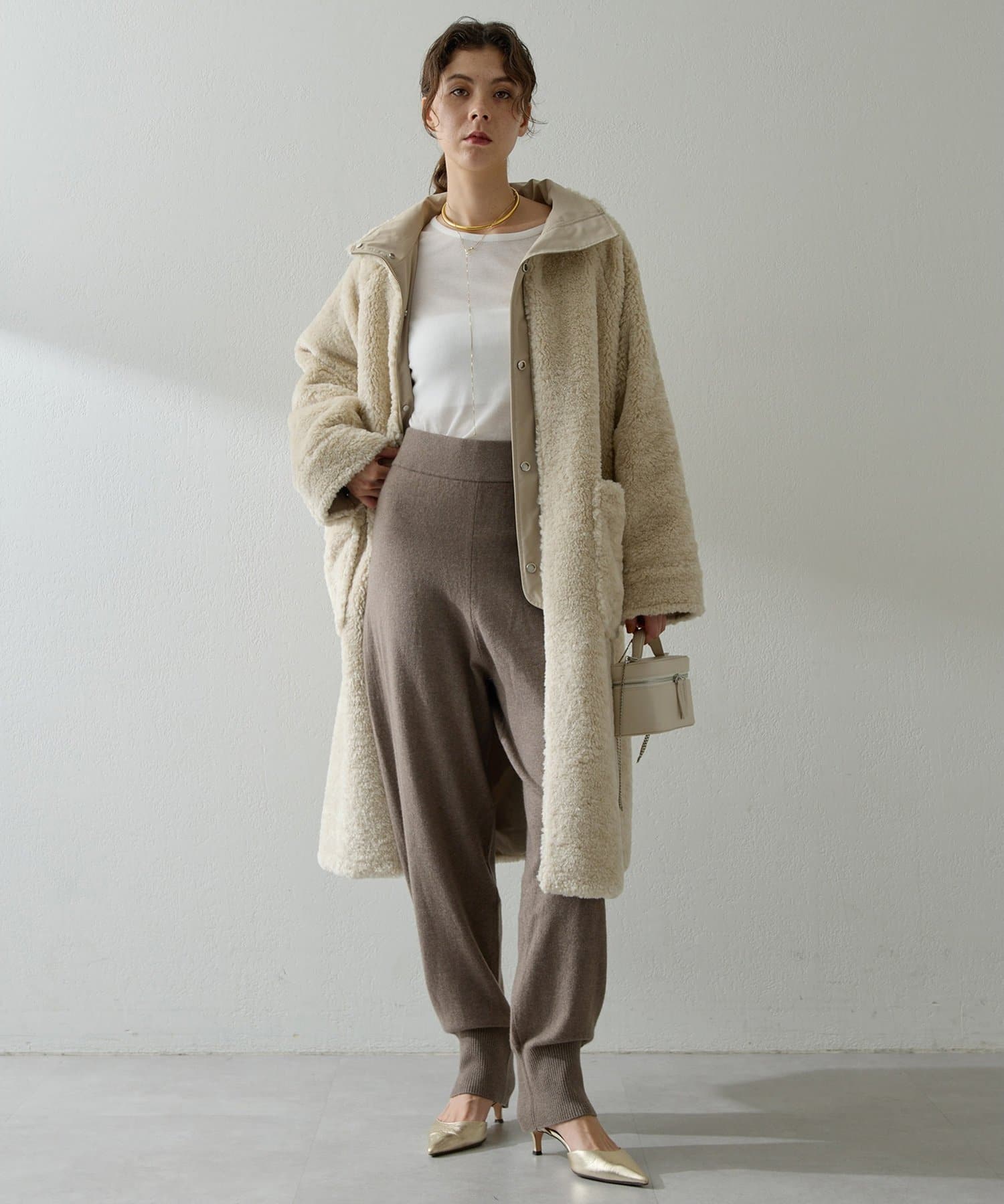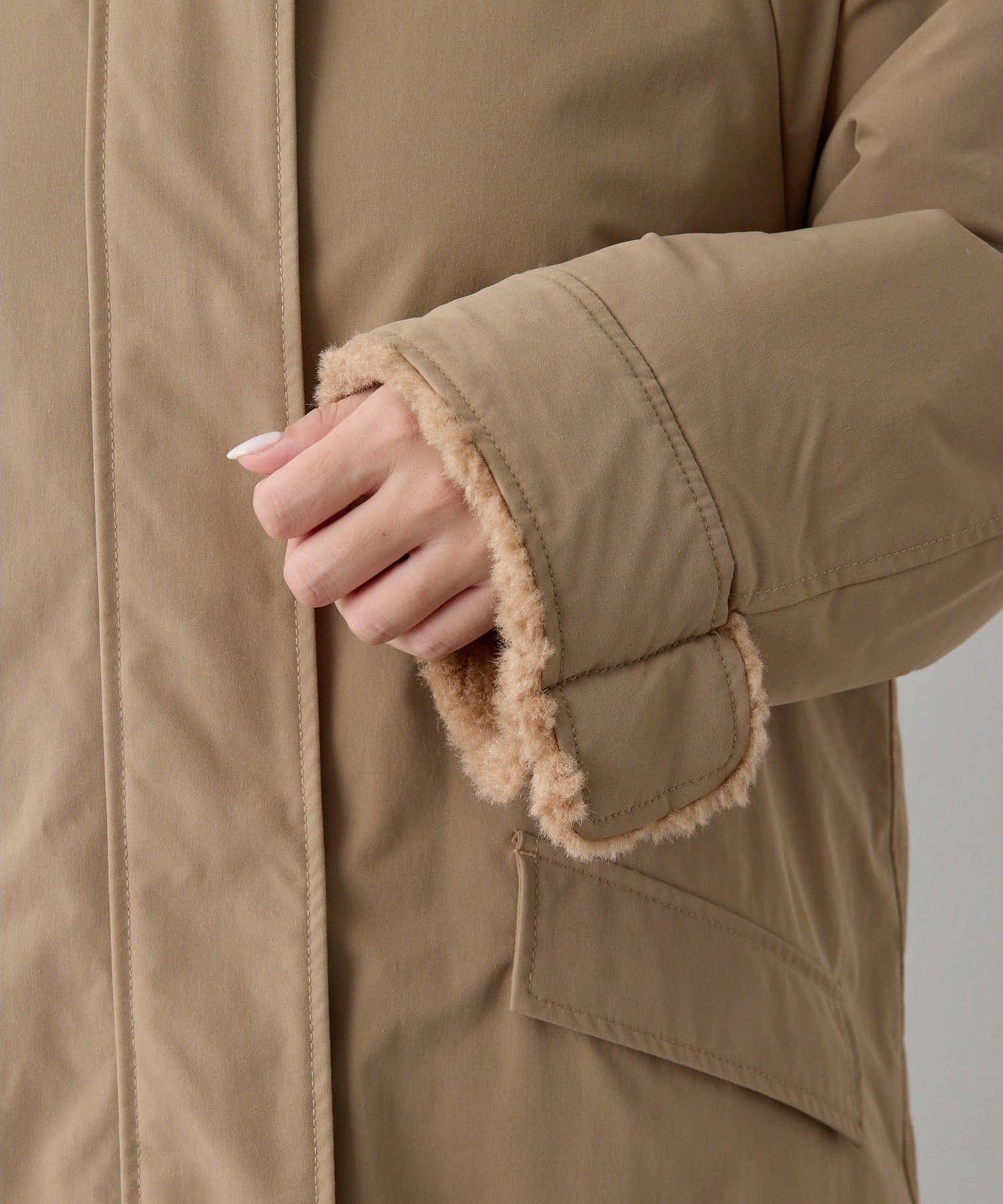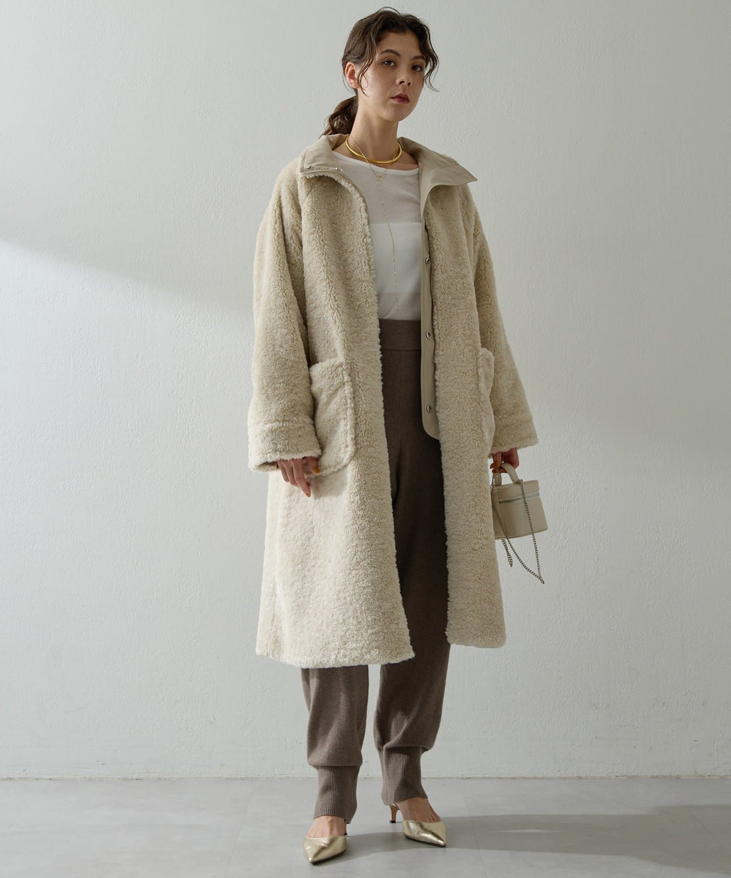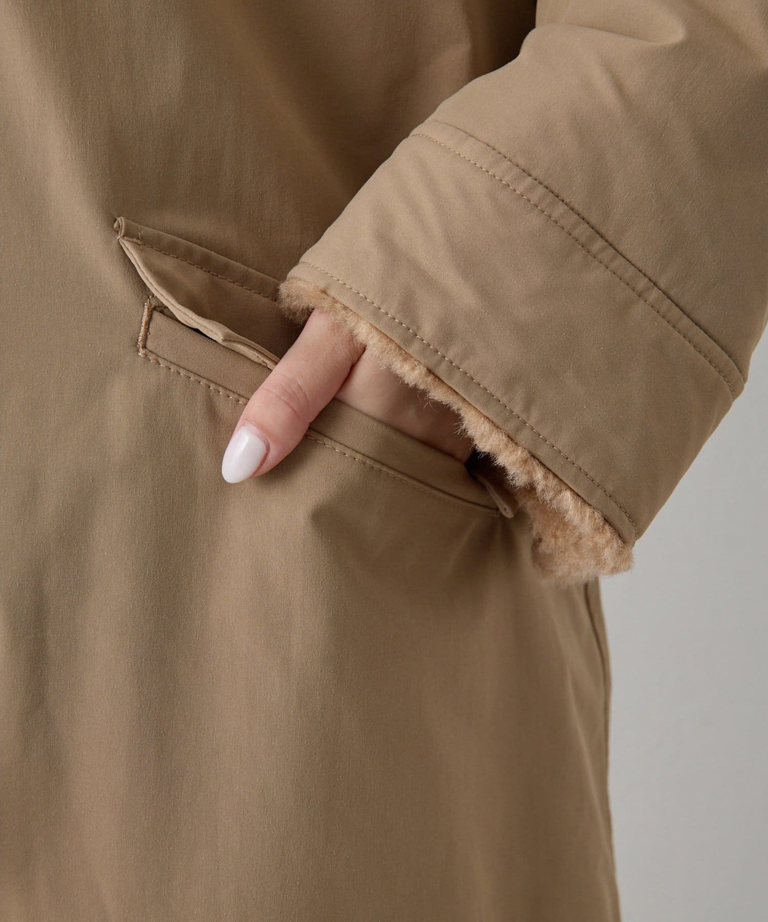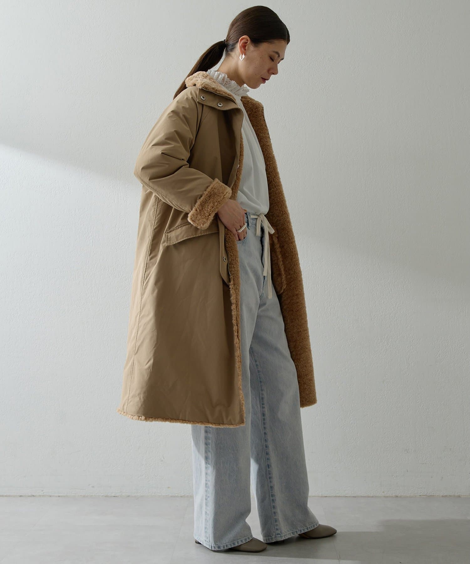 ■表側はワークテイストのスタイルでカジュアルに、ボア側を表にすれば華やかさのある印象に。